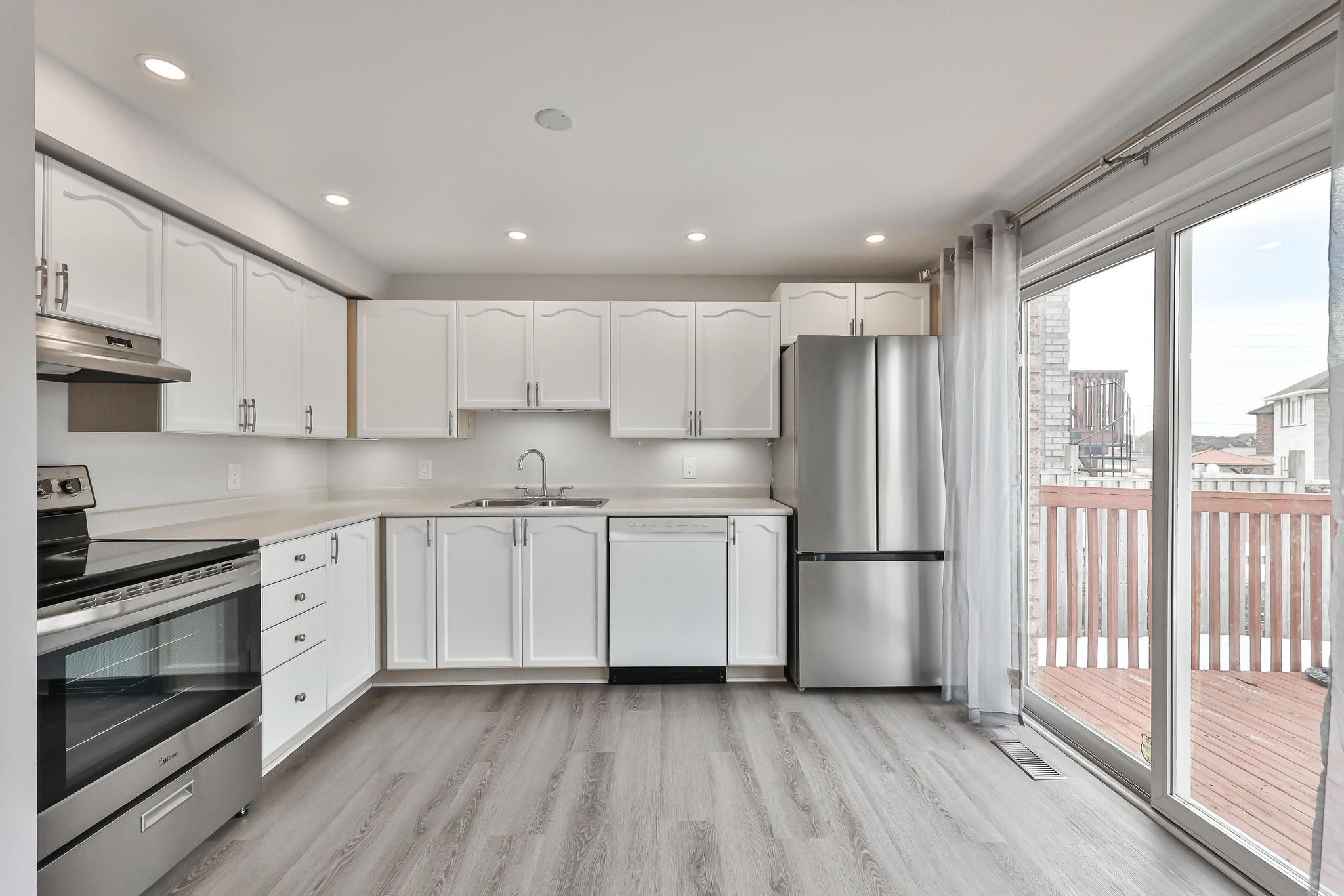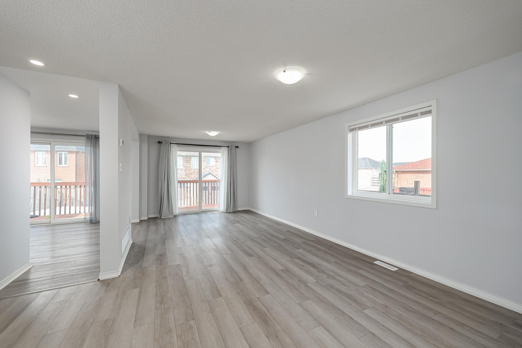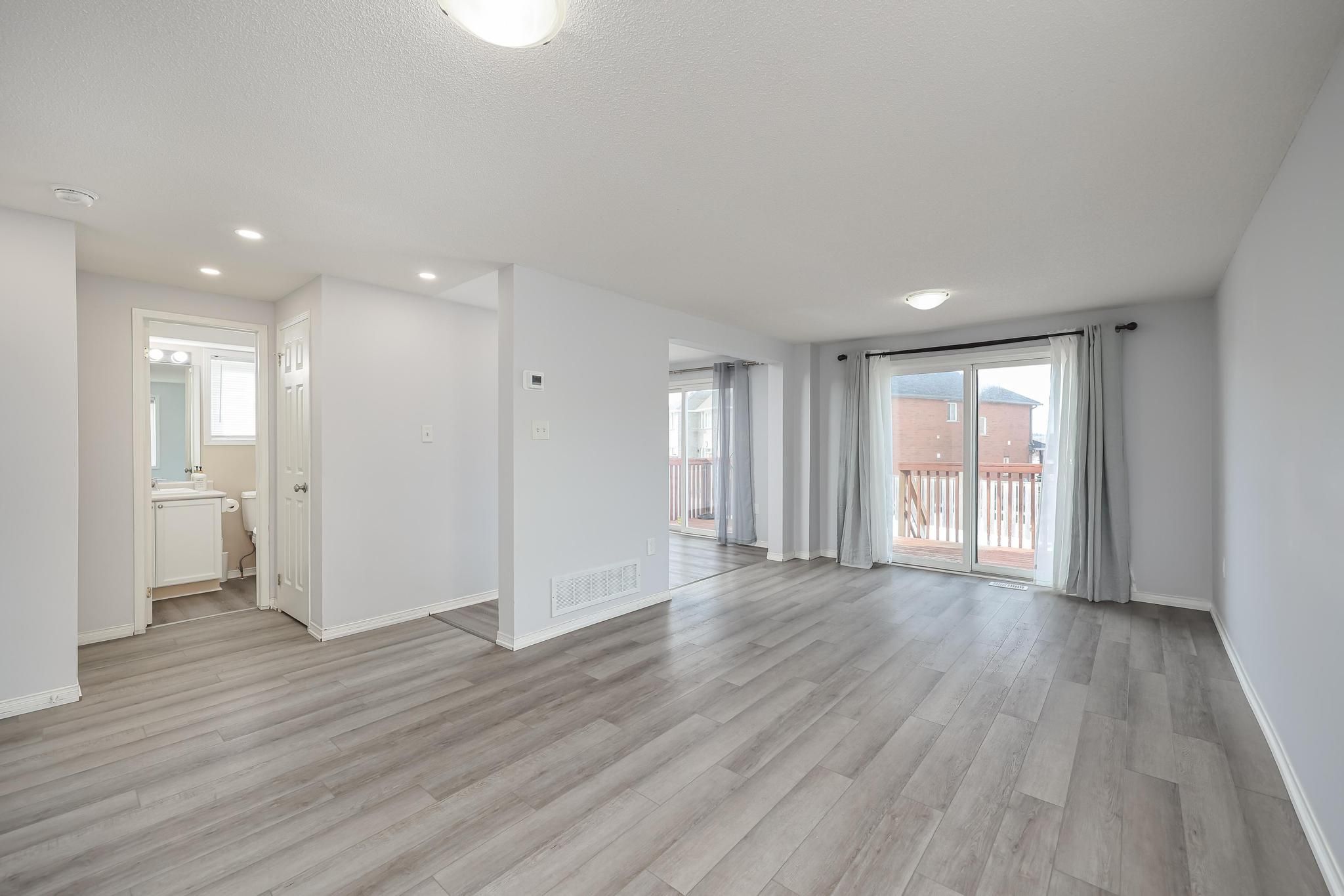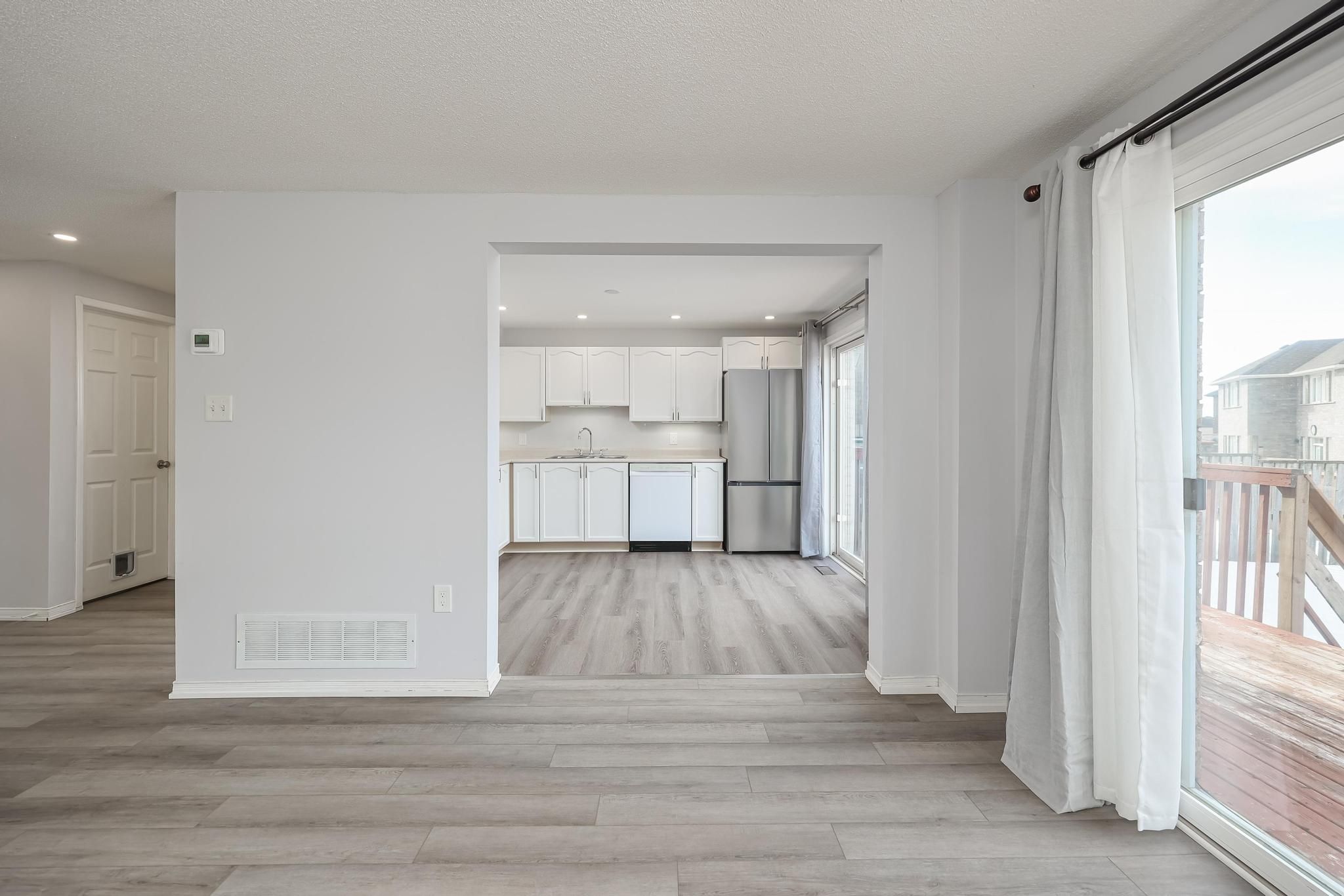 Welcome to this bright and sun-filled home, originally designed by the builder as a four-bedroom layout. The home features three spacious bedrooms plus an open-concept loft that caneasily be converted into a fourth bedroom. The large primary bedroom includes a private 4-piece ensuite. The open-concept main floor offers a functional layout with combined living and dining areas,perfect for everyday living and entertaining. Enjoy two walkouts to a large deck from both thekitchen and living room, creating seamless indoor-outdoor living. Modern grey vinyl flooring runs throughout the main and second floors. The bright basementwith pot lights features vinyl flooring, a separate room that can be used as an additionalbedroom, and a 3-piece bathroom, providing excellent flexible space for extended family orguests. Additional features include main floor laundry, a spacious garage, and a driveway accommodating two cars. The positioning of neighbouring homes allows for a clear and open viewof the backyard. Fantastic location close to public transit, go train, schools, parks, the lake, shopping, andother everyday amenities.