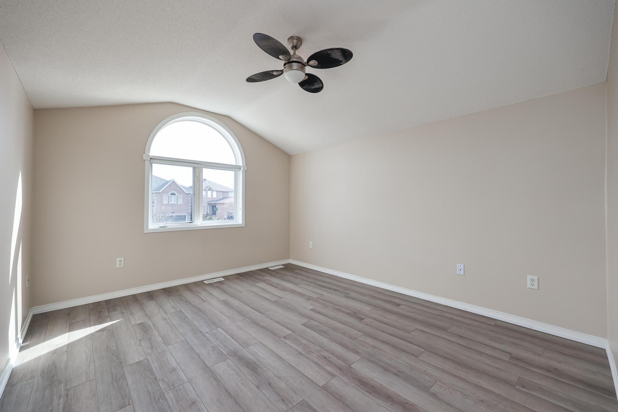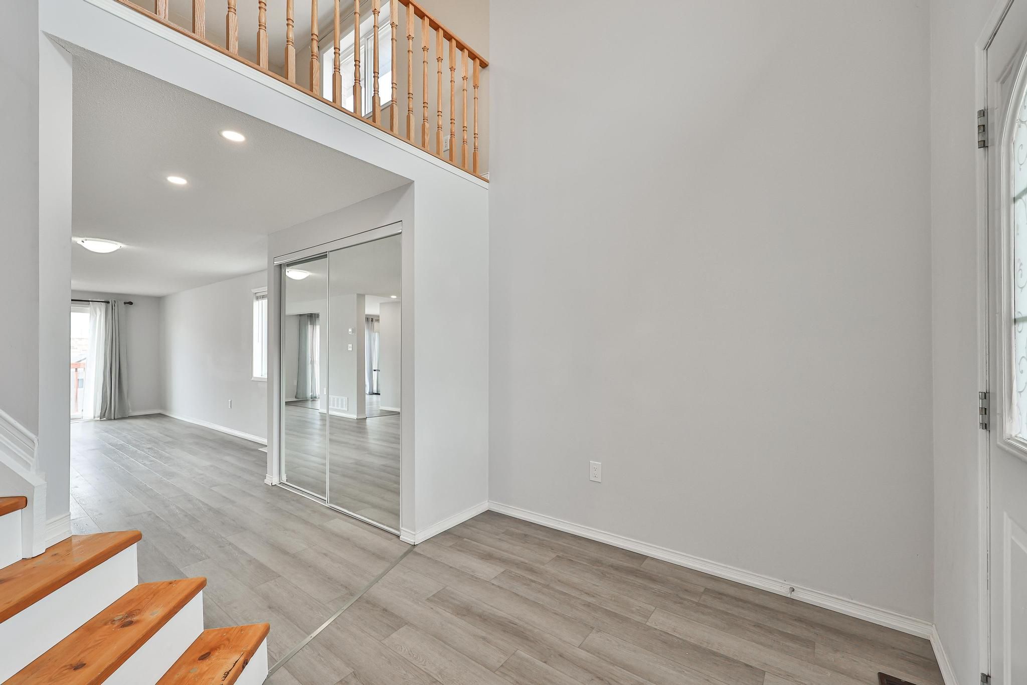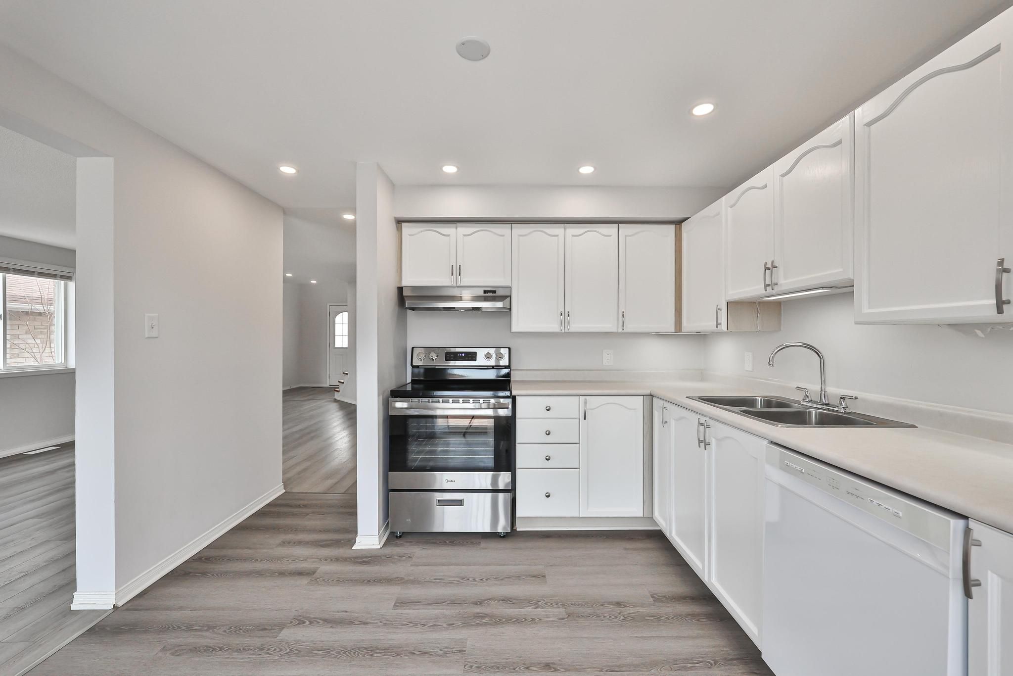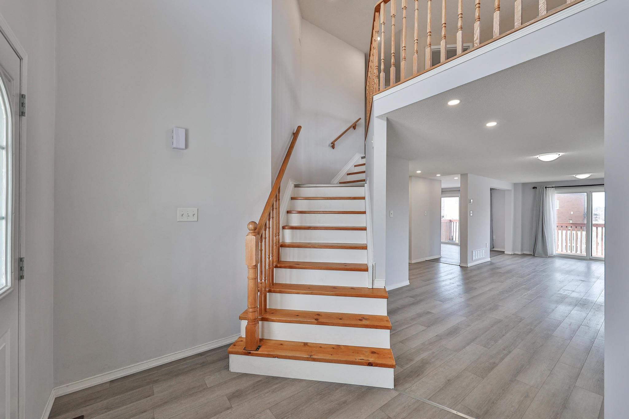 Welcome to this bright and sun-filled home, originally designed by the builder as a four-bedroom layout. The home features three spacious bedrooms plus an open-concept loft that caneasily be converted into a fourth bedroom. The large primary bedroom includes a private 4-piece ensuite. The open-concept main floor offers a functional layout with combined living and dining areas,perfect for everyday living and entertaining. Enjoy two walkouts to a large deck from both thekitchen and living room, creating seamless indoor-outdoor living. Modern grey vinyl flooring runs throughout the main and second floors. The bright basementwith pot lights features vinyl flooring, a separate room that can be used as an additionalbedroom, and a 3-piece bathroom, providing excellent flexible space for extended family orguests. Additional features include main floor laundry, a spacious garage, and a driveway accommodating two cars. The positioning of neighbouring homes allows for a clear and open viewof the backyard. Fantastic location close to public transit, go train, schools, parks, the lake, shopping, andother everyday amenities.