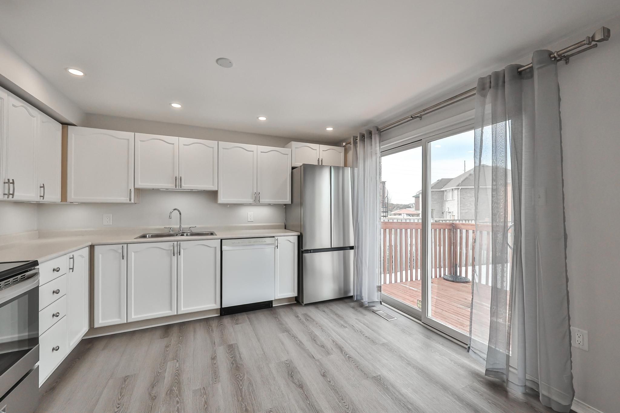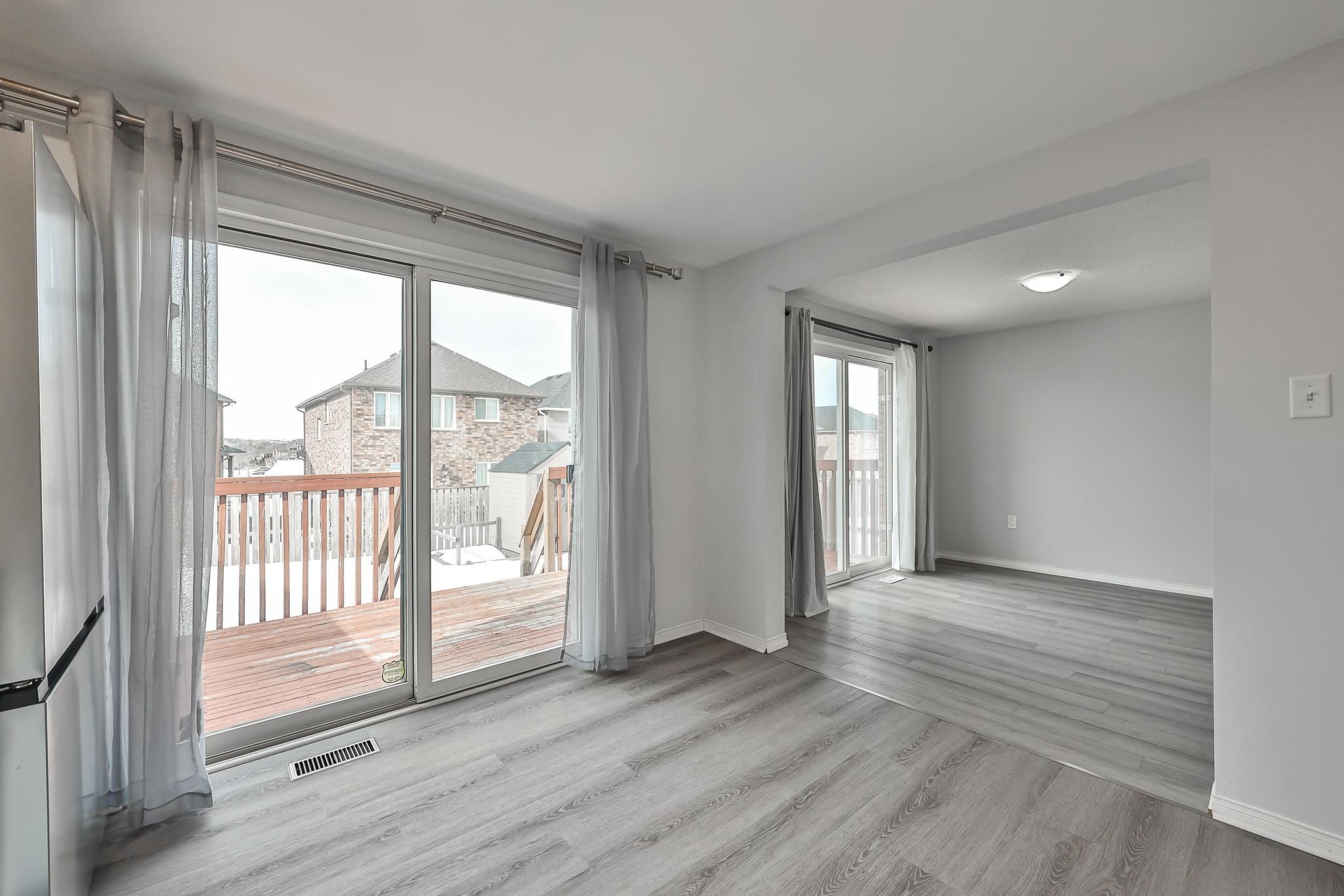 Welcome to this bright and sun-filled home, originally designed by the builder as a 4-bedroom layout. The home features three spacious bedrooms plus an open-concept loft that caneasily be converted into a fourth bedroom. The large primary bedroom includes a private 4-piece ensuite. The open-concept main floor offers a functional layout with combined living and dining areas,perfect for everyday living and entertaining. Enjoy two walkouts to a large deck from both thekitchen and living room, creating seamless indoor-outdoor living. Modern grey vinyl flooring runs throughout the house. The bright basementwith pot lights features vinyl flooring, a separate room that can be used as an additionalbedroom, and a 3-piece bathroom, providing excellent flexible space for extended family orguests. Additional features include main floor laundry, a spacious garage, and a driveway accommodating two cars. The positioning of neighbouring homes allows for a clear and open viewof the backyard. Fantastic location close to public transit, go train, schools, parks, the lake, shopping, andother everyday amenities.