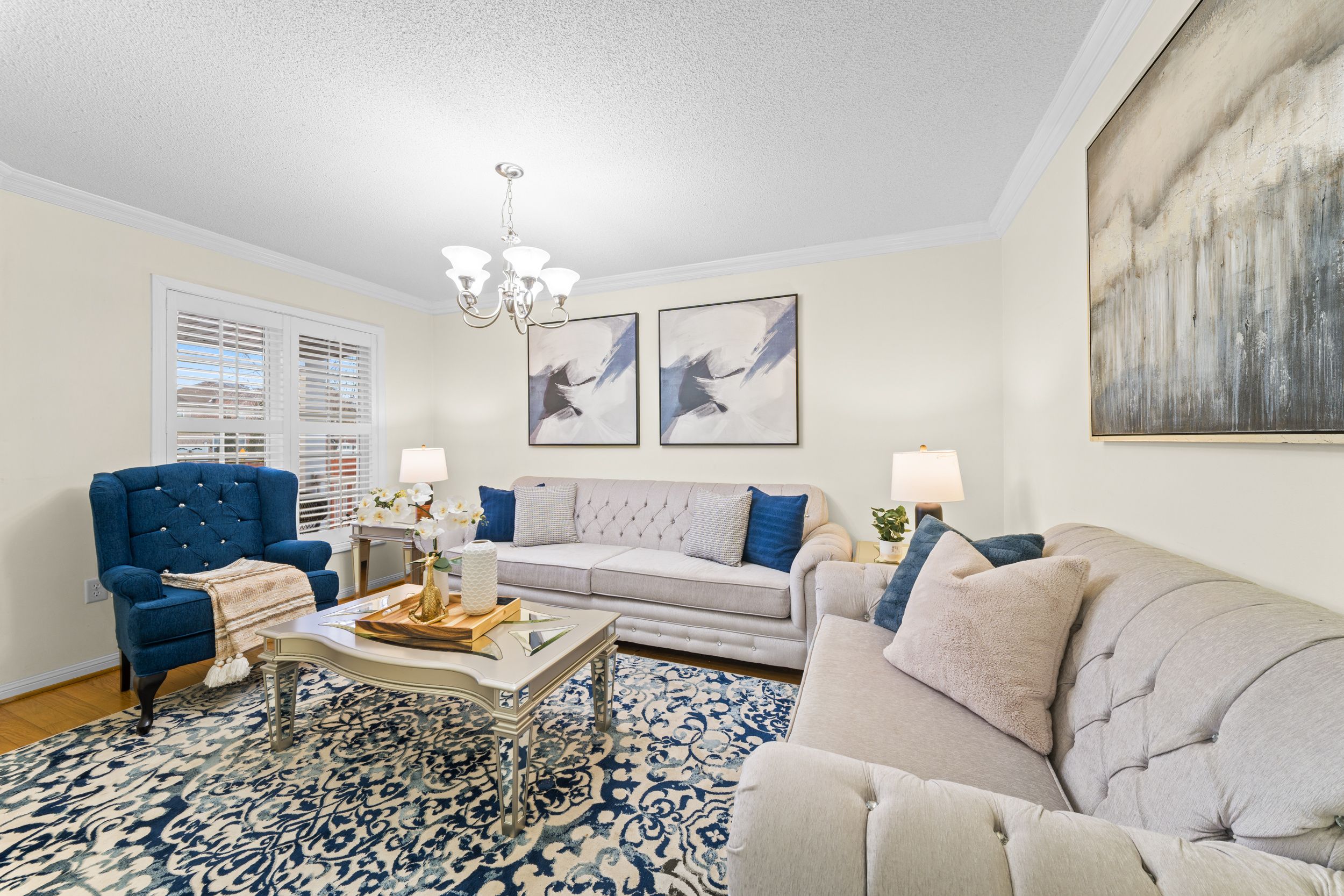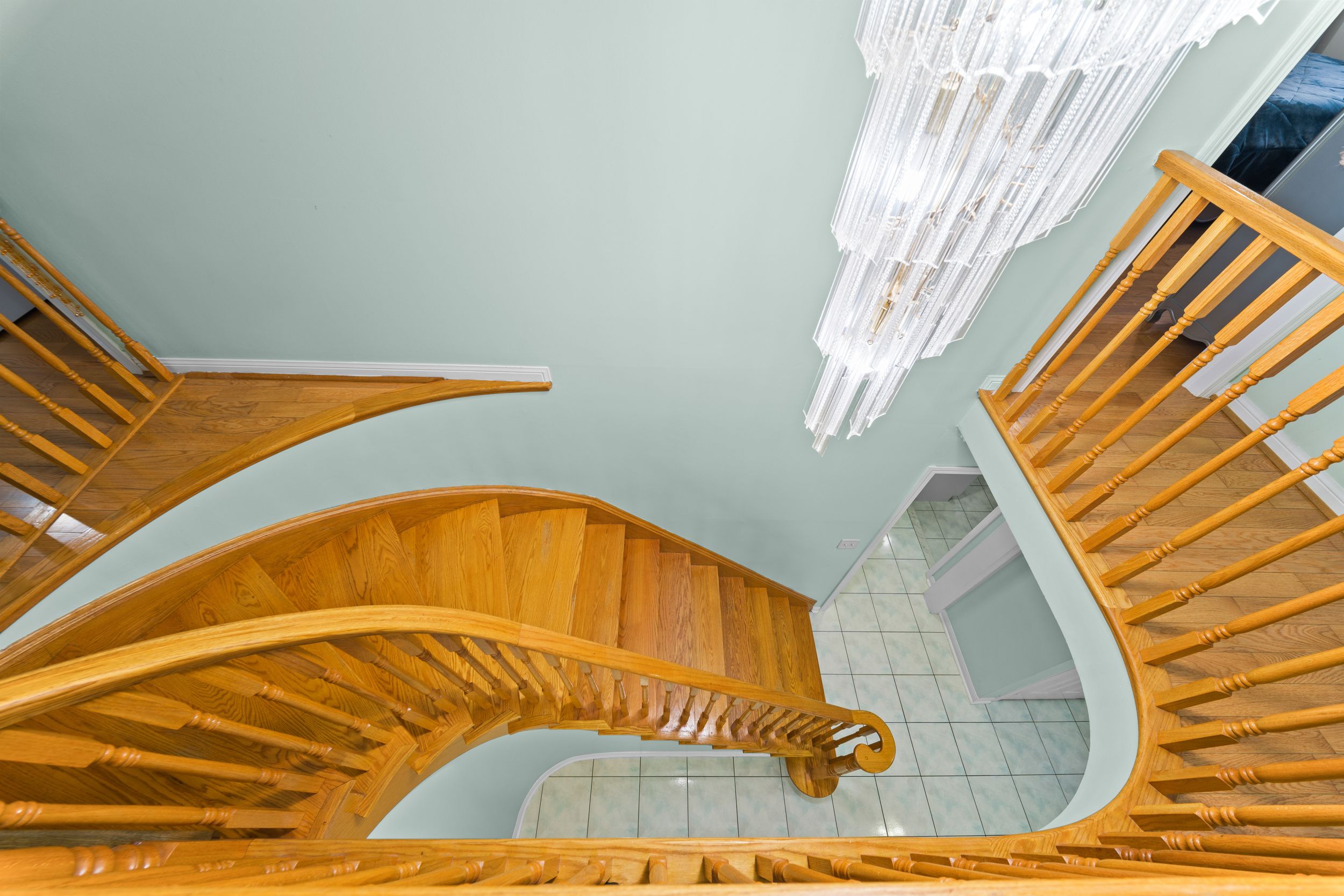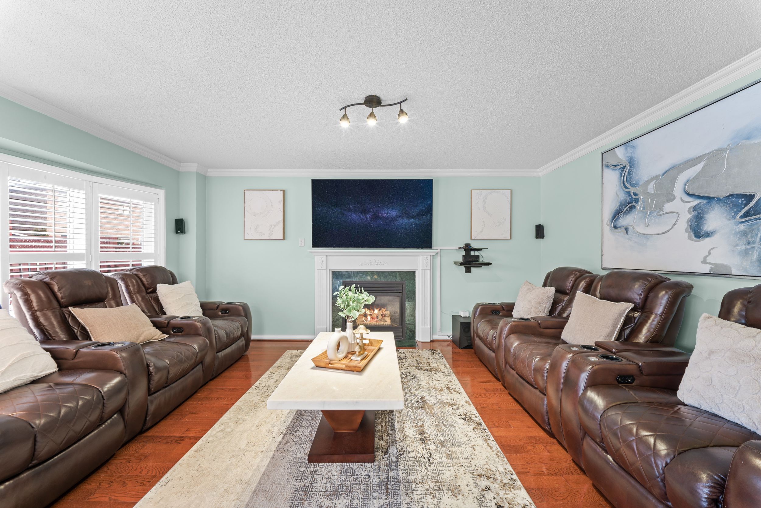 • Separate living, family, and dining rooms with hardwood floors throughout.