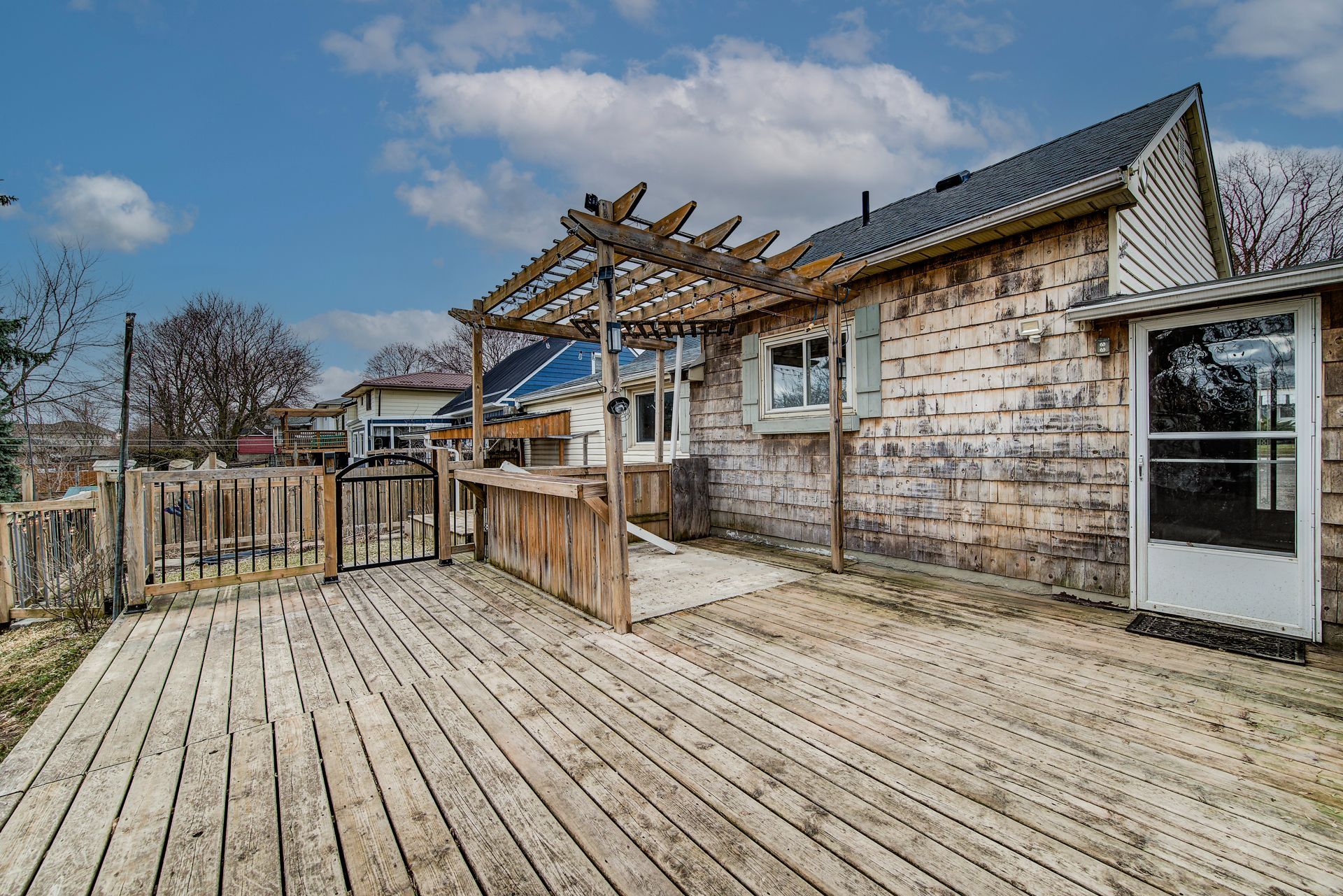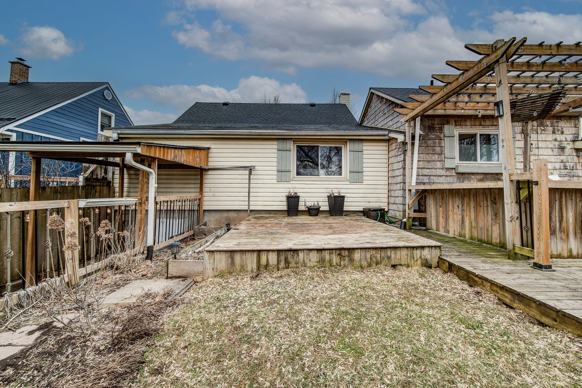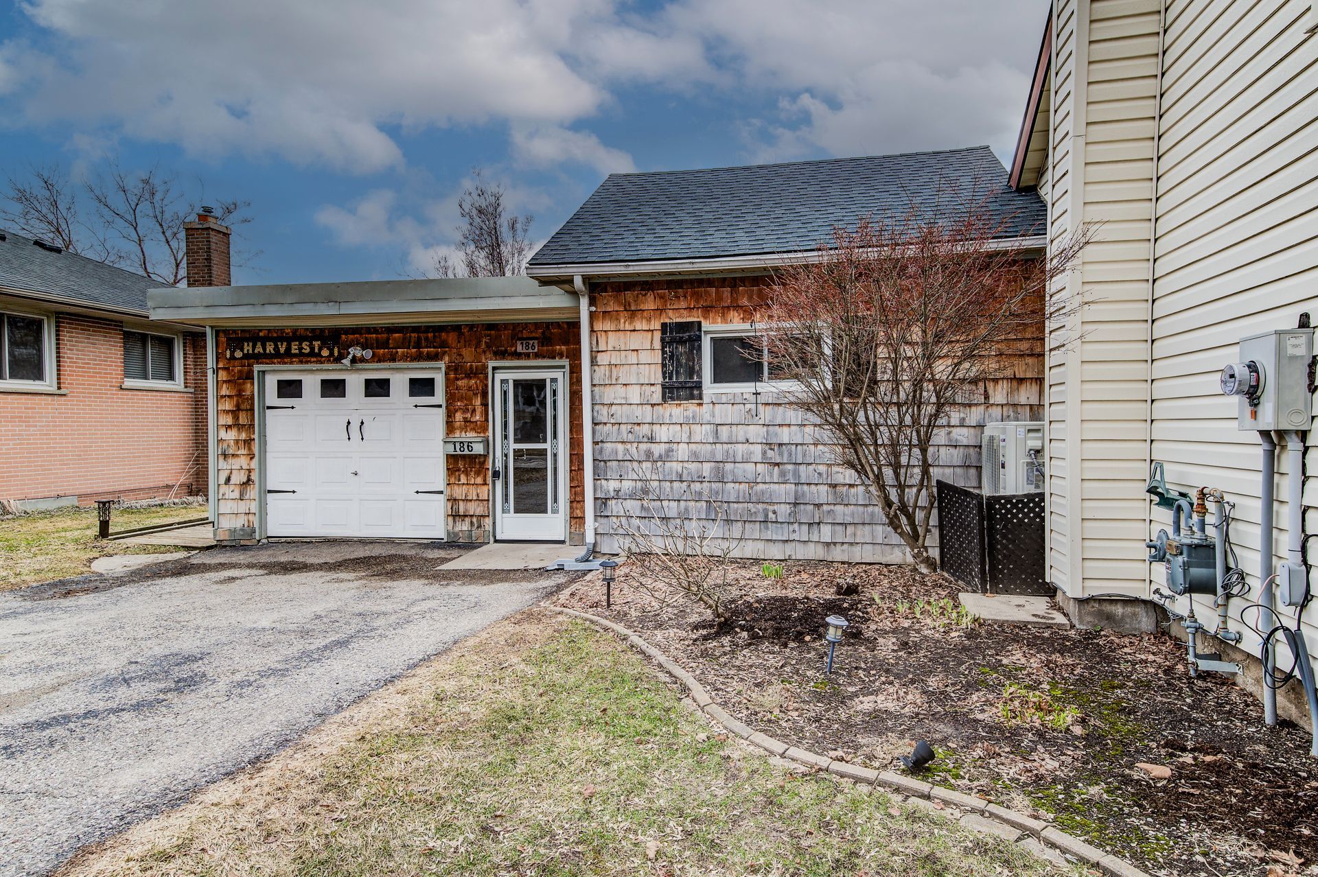 Step into the charm of yesteryear with this inviting bungalow, originally built in 1850 and thoughtfully updated over time to blend character with everyday comfort. Offering approximately 1,035 sq. Ft. (approximately), this single-family home is ideal for first-time buyers, downsizers, or those seeking a manageable property in a convenient commuter-friendly location. The home features 3 bedrooms, including a spacious primary, with two additional bedrooms in the original portion-perfect for kids, guests, or even the option to combine into one larger space. The bright living room offers a cozy atmosphere with high ceilings while the adjoining dinette provides a charming spot for meals with views to the outdoors. The updated 3-piece bathroom (renovated in 2019) showcases a modern walk-in shower and was fully redone. The kitchen is tucked just off the enclosed breezeway/mudroom that connects the home to the oversized single detached garage-an ideal setup for everyday convenience. Enjoy outdoor living with expansive multi-level decking, complete with a pergola, perfect for entertaining or relaxing. A 10x12 elevated shed provides additional storage for tools and equipment, while the double-wide asphalt driveway accommodates up to 4 vehicles. Key updates include a newer asphalt shingle roof (2022), mostly updated vinyl windows, and a new forced air gas furnace with efficient heat pump system (installed october 2024). The home is serviced by municipal water and sewer and features a 100 amp breaker panel (updated in 2013) with copper wiring. The basement offers additional storage, laundry space, and a walk-up to the backyard. Located in a great commuter area with easy access to major highways (401/403) and nearby amenities, this property offers a unique opportunity to own a piece of history with modern touches and plenty of potential. Don't miss your chance to make this charming home your own!
