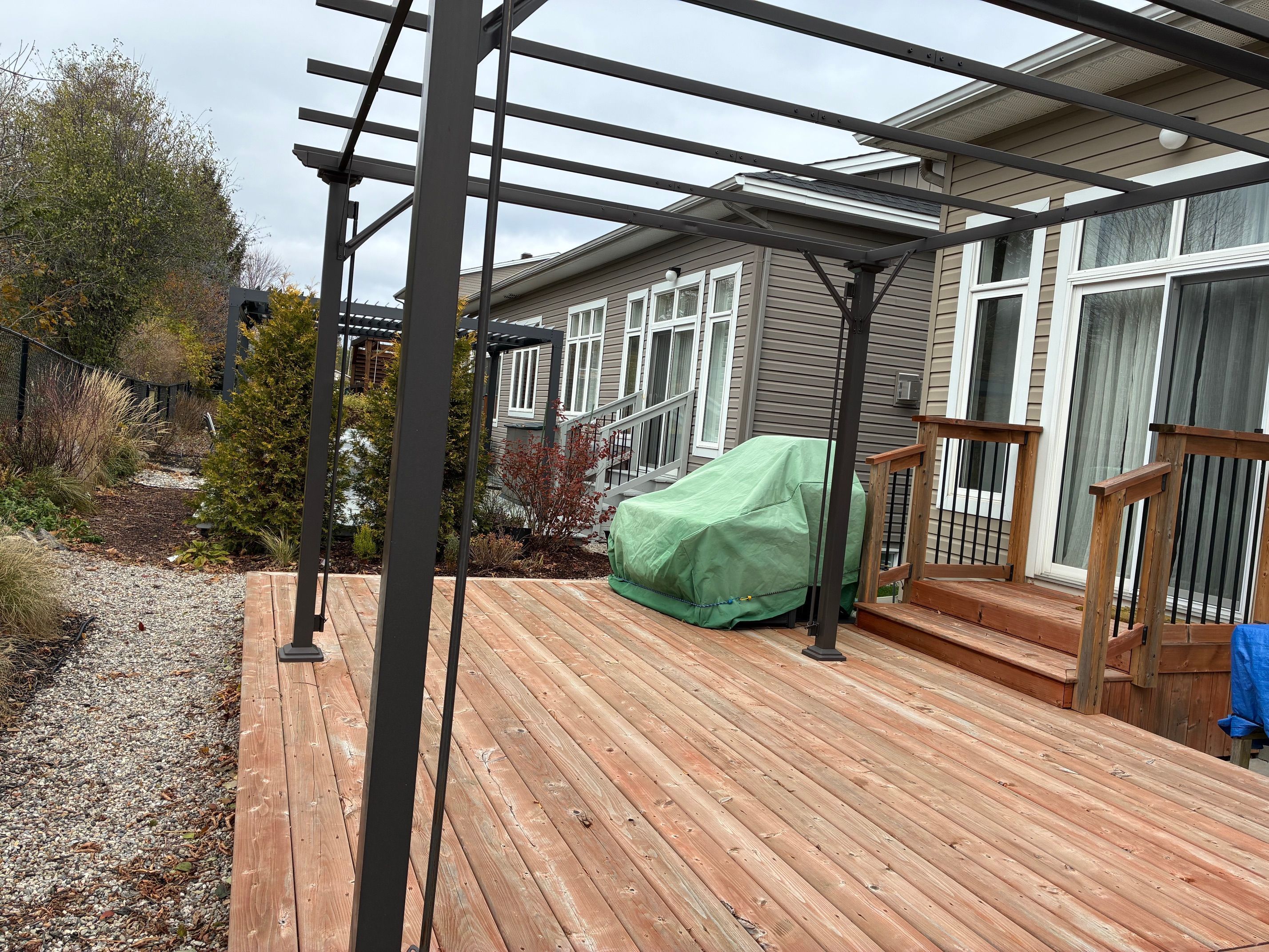 • Beautifully landscaped yard with a ground level deck and shade gazebo.