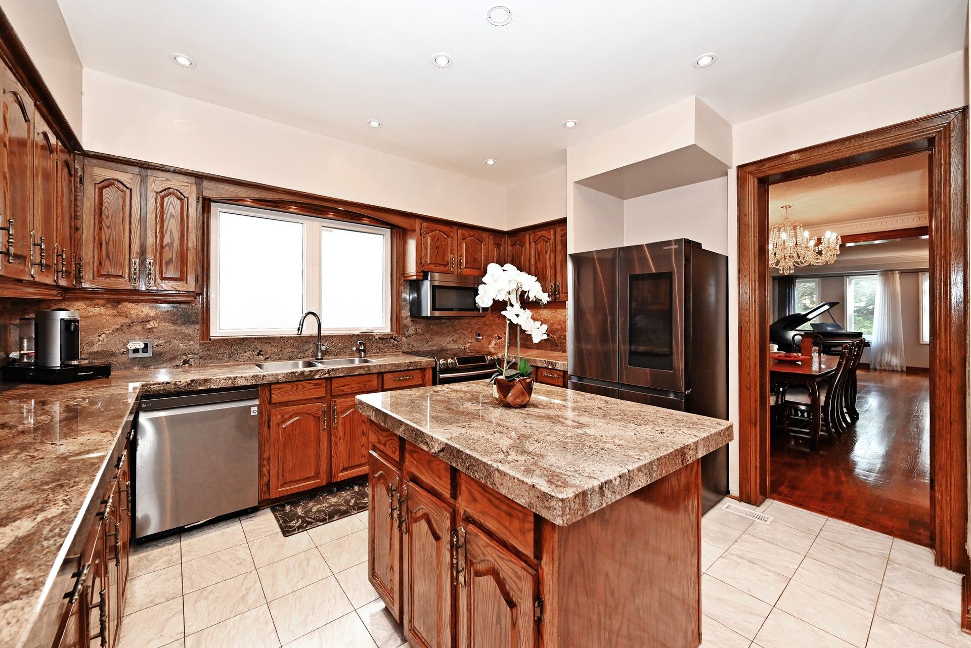 Client remarksexperience timeless elegance and modern comfort in this magnificent 5,105 sq. Ft. Residence, plus an additional 3,000 sq. Ft. Unfinished basement, ideally situated in one of richmond hill's most coveted neighborhoods - mill pond. Designed with exceptional attention to detail, this carpet-free home offers generously sized living spaces, perfect for both family living and grand entertaining. The main floor features 9-ft ceilings, custom pot lighting, and a striking scarlett o'hara oak staircase that sets the tone for sophistication throughout. A radiant-heat fireplace creates a warm and inviting ambiance, complemented by solid oak floors, oak-trimmed windows, and door frames for enduring elegance. The custom oak kitchen is both stylish and functional, featuring new smart samsung stainless steel appliances, including a fridge and stove - ideal for today's modern lifestyle. Upstairs, you'll find three master bedrooms, a spacious great room, and an impressive primary suite with a private sitting area, spa-inspired ensuite with washlet bidet, and a private balcony - a serene retreat for morning coffee or evening relaxation. All closets include built-in organizers for optimal storage. Recent upgrades ensure long-term comfort and efficiency, including: new windows (2 years), roof (9 years). 2 upgraded furnaces,2 new a/c. The fully waterproofed lower level includes a rough-in for a bar and washroom, and side entrances with direct access to both the basement and backyard. Step outside to your private backyard oasis, where over $300,000 has been invested in professional landscaping and resort-style design. Enjoy a 3-year-old saltwater, heated pool complete with a waterfall, spillover jacuzzi, and automated cover. The fully fenced backyard features a double-lock gate on the east side for added privacy and convenience. A circular interlocking driveway accommodates up to 8 vehicles, offering both functionality and elegance for family gatherings and entertaining guests.