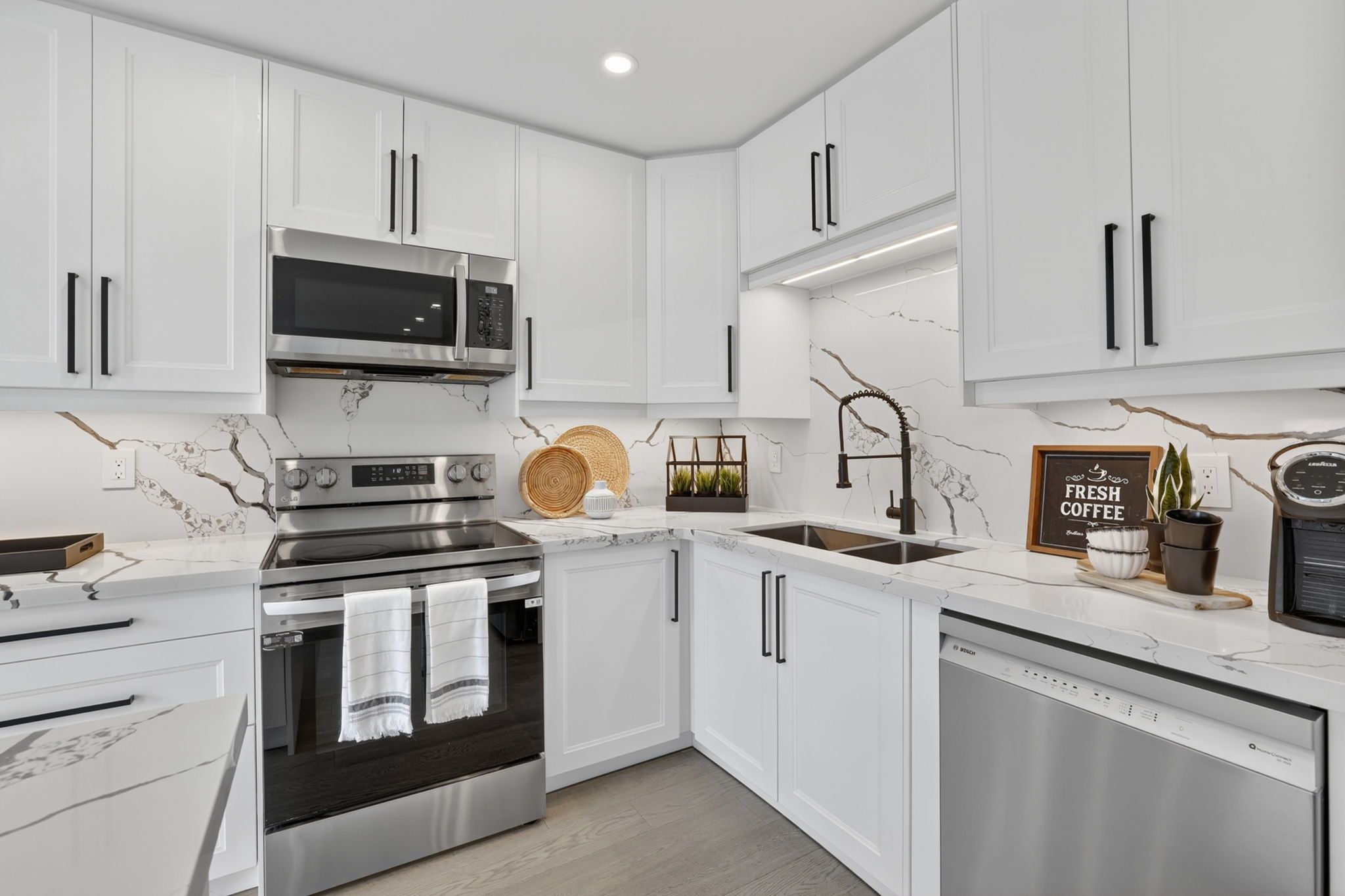 • Modern kitchen with new cabinets and countertops for easy entertaining.