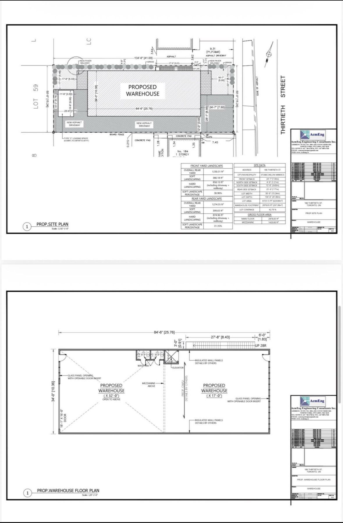 186 thirtieth st. Is a strategically located industrial property designed within a core employment area, permitting a range of employment uses including warehouse development. Planning status: the property has received final approval from the toronto local appeal body for the construction of a warehouse building. The approval confirms that the proposed development complies with applicable planning policy and represents appropriate intensification of employment use on the site. Approved development: warehouse building with mezzanine/ functional rear loading configuration/site layout optimized for the lot's dimensions. Approved variances ( summary) minor variances have been approved to facilitate efficient site design, including: reduced side yard setbacks/reduced driveway and loading access width ( designed for safe one-way operation). These variances were reviewed and accepted by both the tribunal and the city with no opposition. Key highlights for buyers and developers: fully approved development concept removes entitlement risk. Employment zoning ( e. 10)supports commercial /industrial uses. Infill development opportunity in a supply-constrained employment area. Efficient building footprint maximizes usable space on the lot and city- supported planning outcome. Next steps and conditions: standard conditions remain, including landscape approval, tree permits and financial securities- typical for developments of this nature. Supporting materials available: tlab decision & order ( march 19 2026) , approved site plan, floor plans and elevations as well as planning and technical reports!
