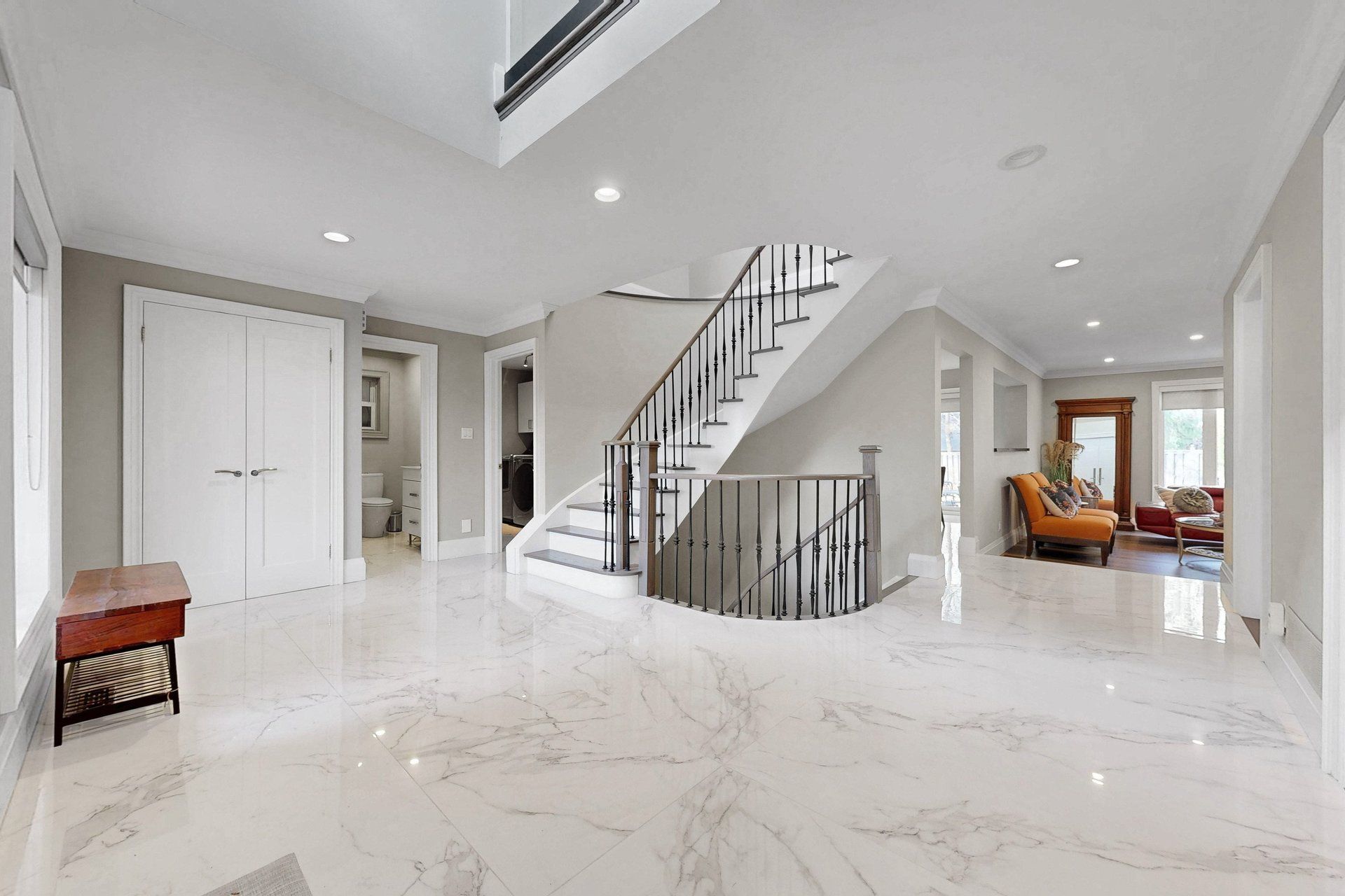 Welcome to an exclusive east woodbridge enclave, where privacy, elegance, and prestige define everyday living. Surrounded by distinguished estate homes, this coveted turnkey property offers a rare balance of tranquil seclusion and convenient access to vaughan's top amenities. Set on a premium lot, this custom-crafted residence showcases a refined exterior with mature trees creating a serene and secluded outdoor retreat. Inside, fully updated finishes, a grand foyer with italian porcelain floors and a striking circular oak staircase with wrought iron detailing sets an impressive tone. The chef-inspired kitchen features granite countertops, a matching backsplash, and a functional island, seamlessly flowing into the family room with a cozy gas fireplace and views of the private backyard. A bright solarium extends the living space, offering a versatile sun filled retreat with direct access to both the garage and backyard-ideal for year-round enjoyment. Upstairs, the sun-filled layout leads to a luxurious primary suite with custom built-ins and a spa-like ensuite with heated floors. Three additional bedrooms share a beautifully designed, hotel-inspired bathroom. The finished basement offers added functional living space with a fireplace and 3-piece bath. Thoughtfully upgraded throughout, this exceptional fully updated property offers refined living in one of vaughan's most desirable neighbourhoods.
