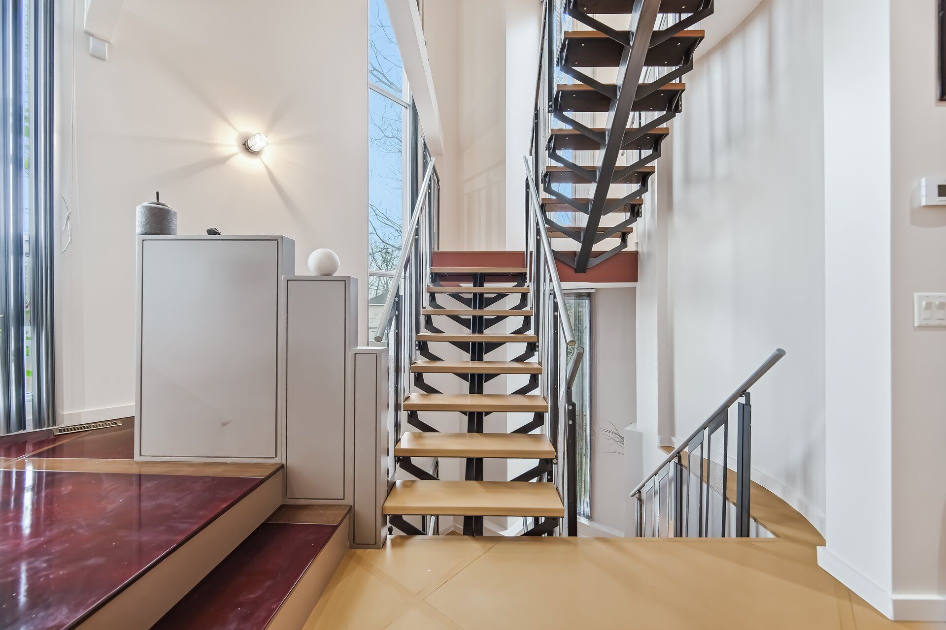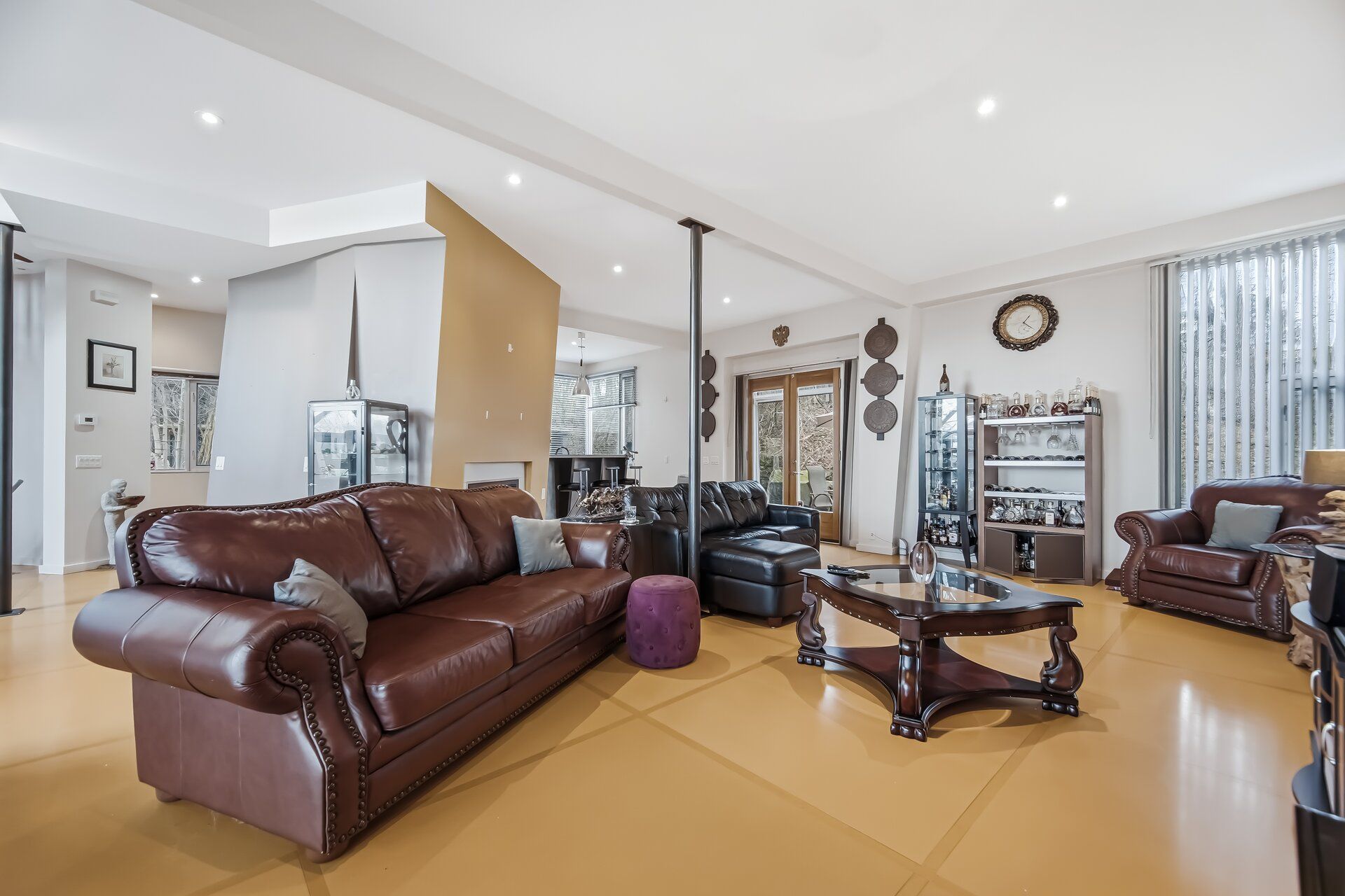 • Architecturally unique home set on a spacious 100 ft x 144 ft lot.