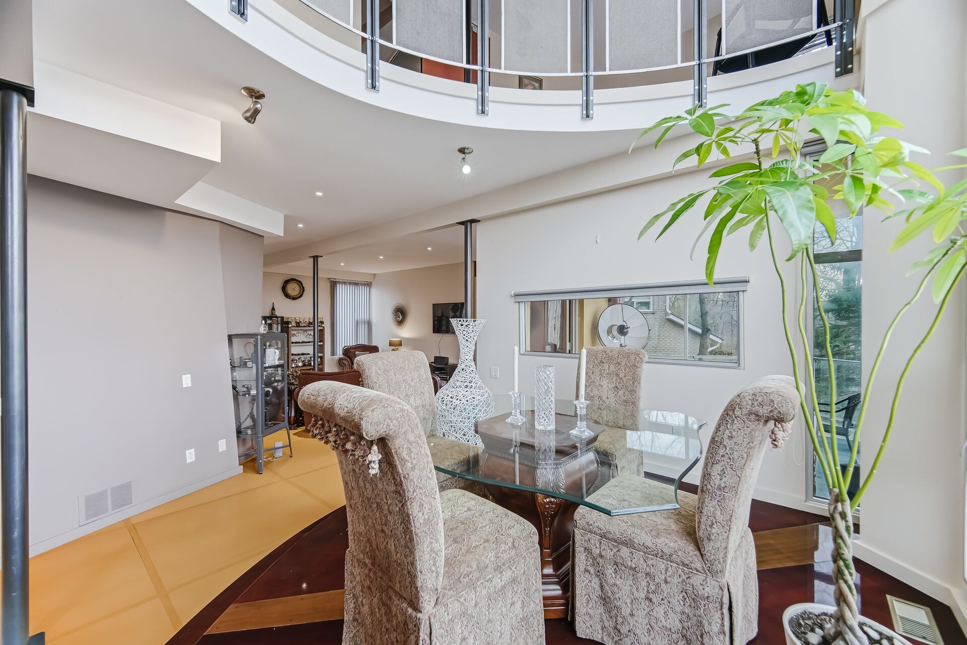 Contemporary living in the heart of streetsville with future potential! Tucked away on a quiet cul-de-sac just steps to the credit river, this architecturally distinct home blends style, space & functionality in a truly unique layout. Set on an exceptional **100 ft x 144 ft lot**, this property offers a dynamic opportunity for end users, investors or builders. With the potential to sever (buyer to verify). Preliminary discussions have already taken place with the city, creating a rare chance to enjoy the existing home now while exploring future development options. Inside, you'll find a spacious kitchen with granite counters & breakfast bar overlooking a large living room with gas fireplace perfect for everyday living & entertaining. The raised, elegant dining area surrounded by expansive windows floods the space with natural light. Relax in the enclosed solarium with stunning views of the credit river & ravine, offering a peaceful, year-round escape. The huge primary bedroom features a spacious ensuite, providing comfort & privacy. Soaring ceilings, a custom staircase & sun-filled interiors complete this striking home. Step outside to fantastic outdoor space ideal for entertaining, backing onto nature for ultimate tranquility. Unbeatable location just steps to credit valley trails, go transit, restaurants & shops-a rare blend of lifestyle & long-term opportunity.