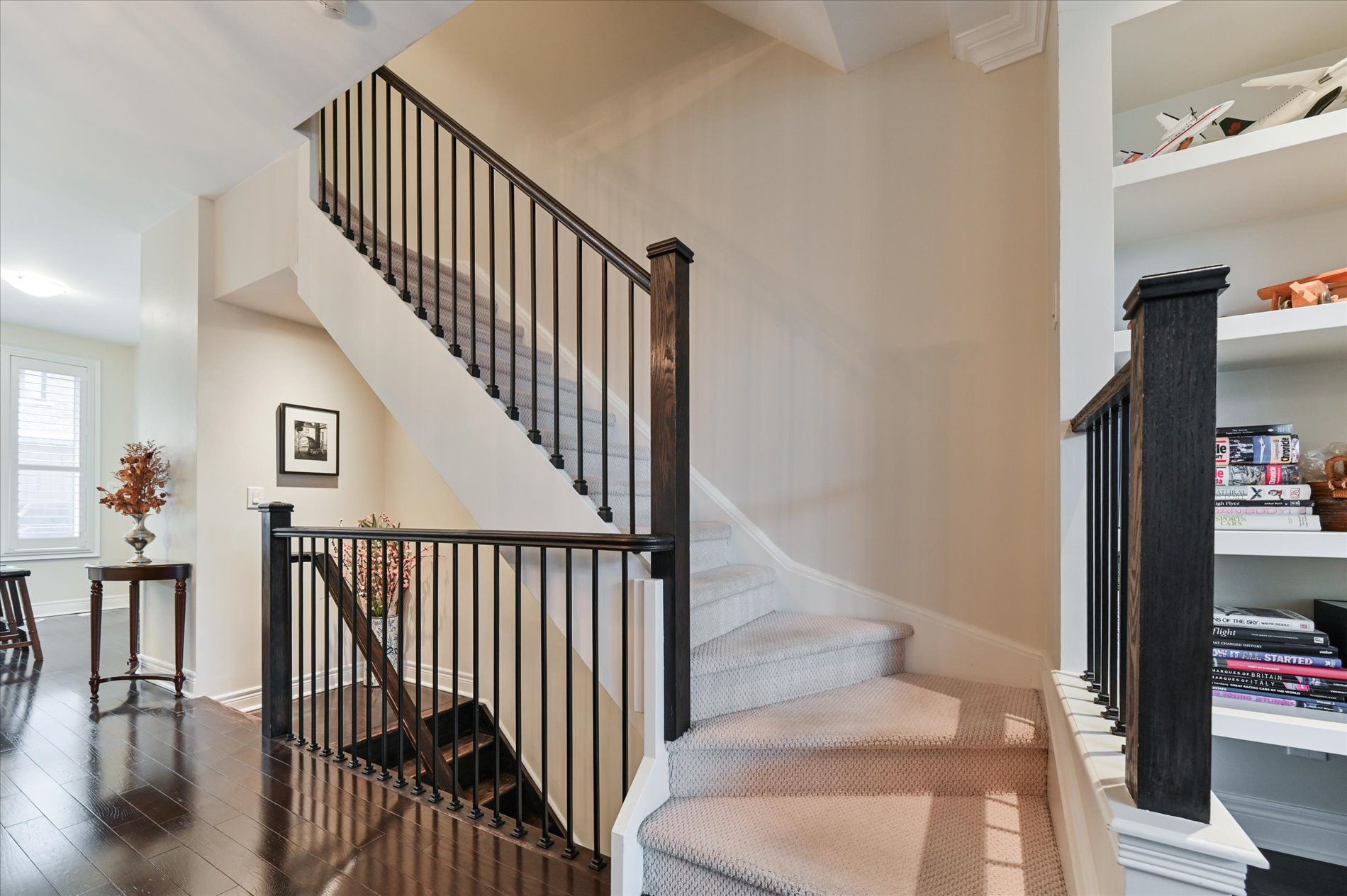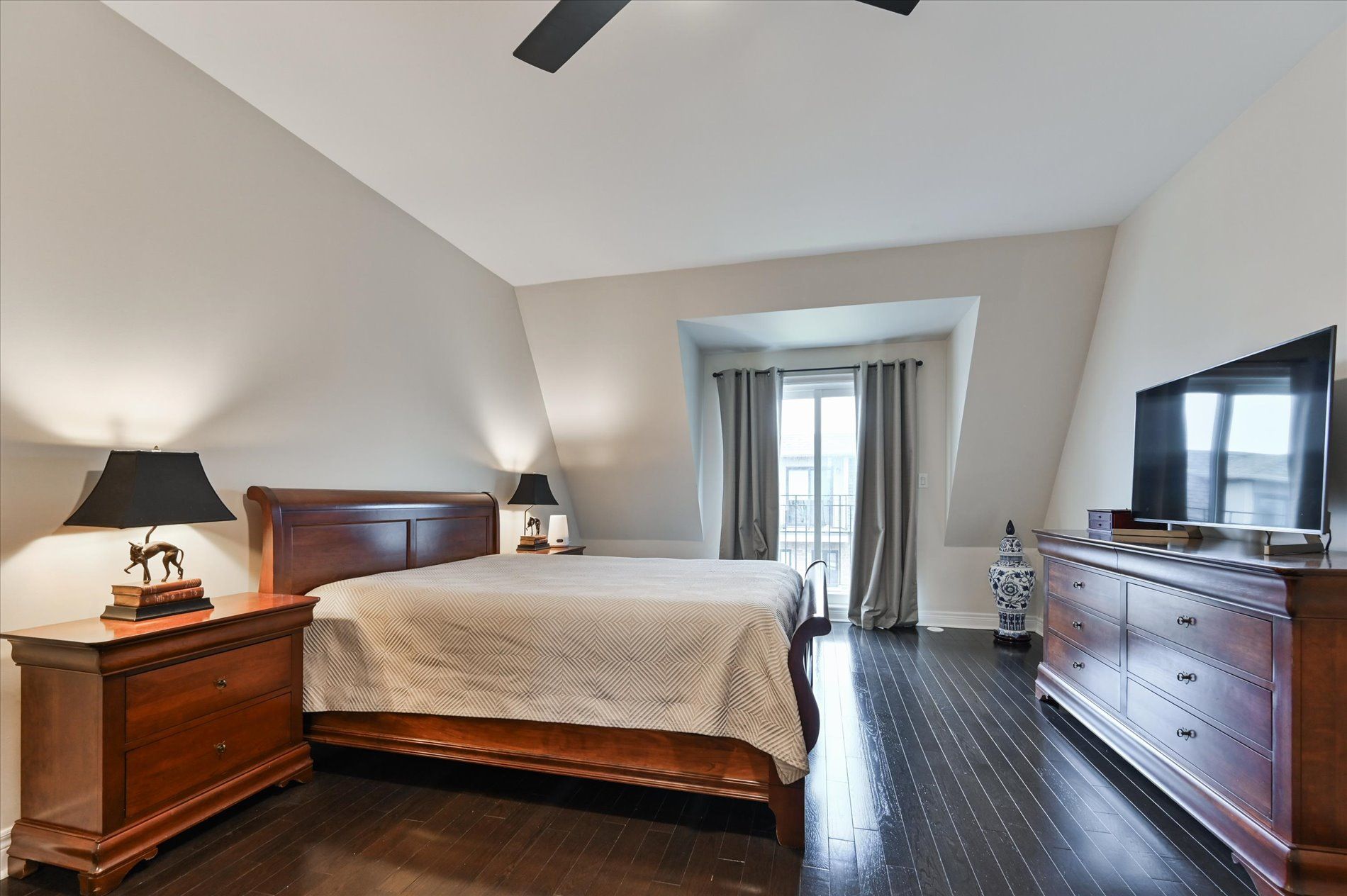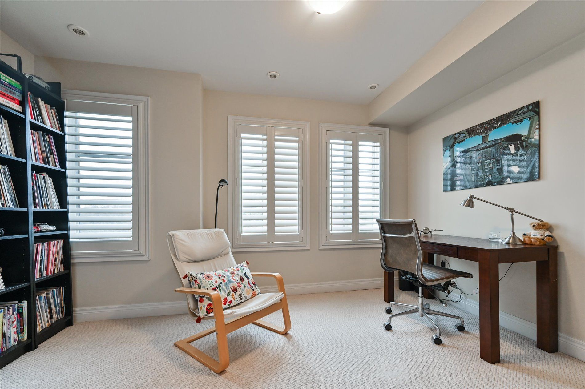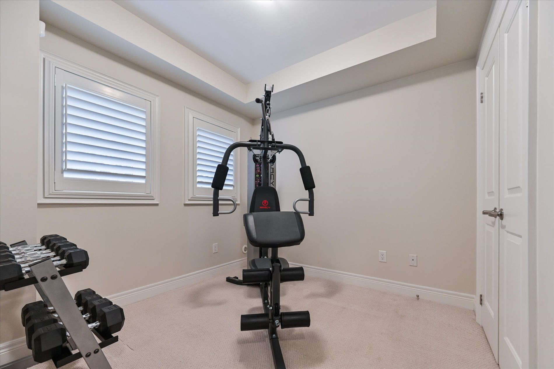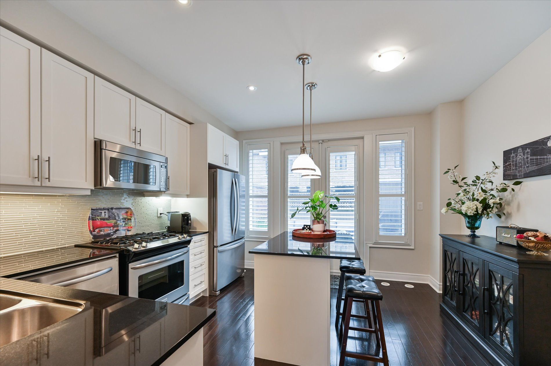 Executive 3-storey freehold townhome in east mississauga this beautifully upgraded executive townhome offers a perfect blend of style and functionality. Featuring a versatile den (could be an extra br) on lower level and a 3-piece bathroom with shower, it's ideal for a home office or guest space/ bedroom. Enjoy premium finishes throughout, including espresso hardwood flooring and stairs. California shutters, 9-ft ceilings on main and 3rd floor with elegant crown moldings. The gourmet kitchen boasts stainless steel appliances, a gas stove, stone countertops, and a custom backsplash. Step out onto the private walkout terrace (14ft x11. 5ft), complete with a retractable awning and natural gas bbq hookup, perfect for entertaining. The spacious living area features a cozy fireplace with a stone mantle and built-in shelving. Upstairs, retreat to a luxurious primary suite, with a walk-in closet and spa-inspired ensuite, including double sinks, marble counters, a jacuzzi tub, and a glass shower. Additional highlights include convenient upper-level laundry (2nd floor) with front-load washer and dryer, built-in shelves in living room, two car garage (30. 10ft long)(tandem) via rear driveway (freshly painted) -monthly fee of $157. 59 covers snow removal, landscaping and private garbage removal.