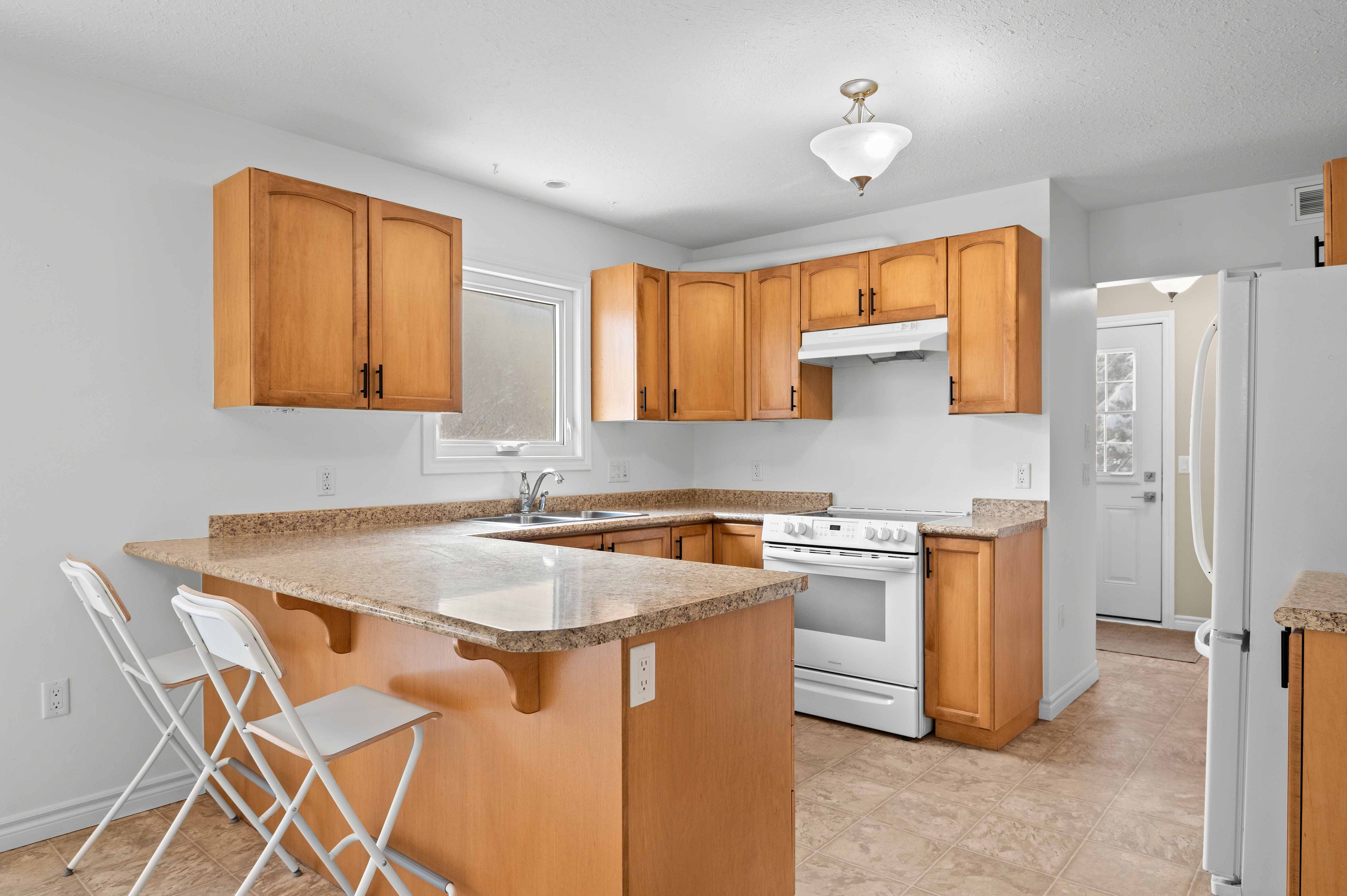 • Functional eat-in kitchen with modern features and breakfast bar.