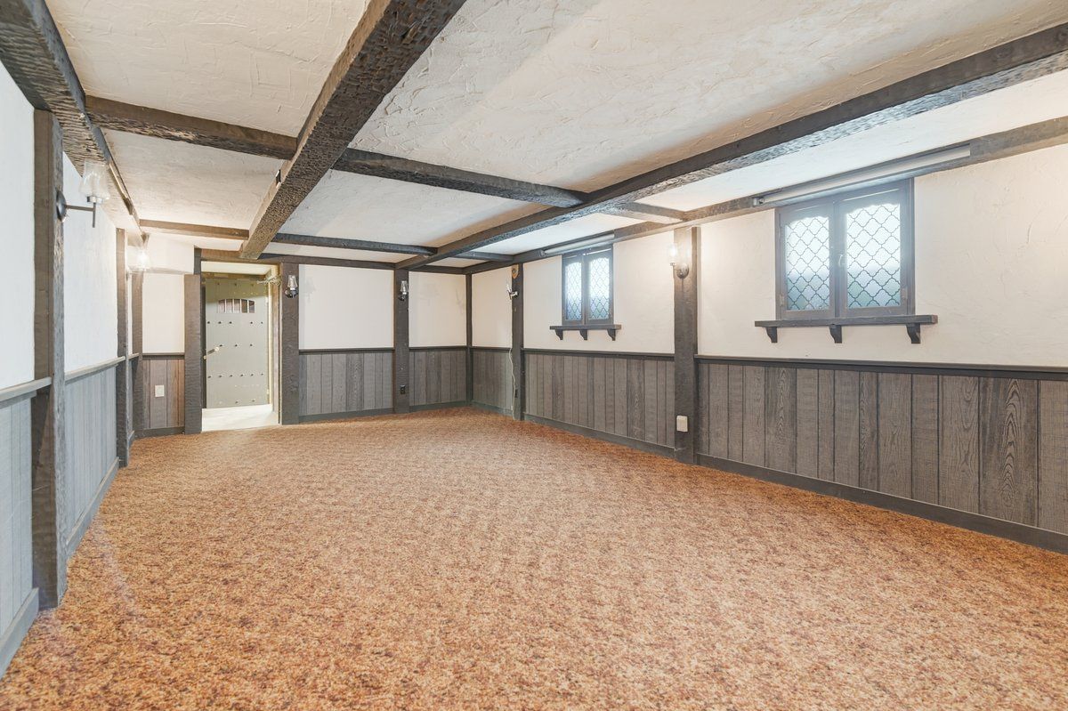 • Lower level features recreation room with fireplace and workshop area.
