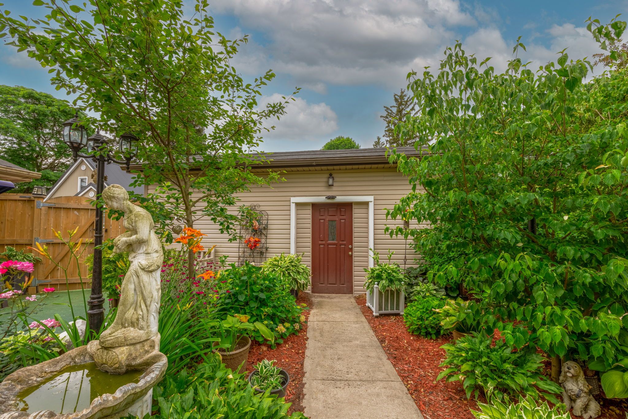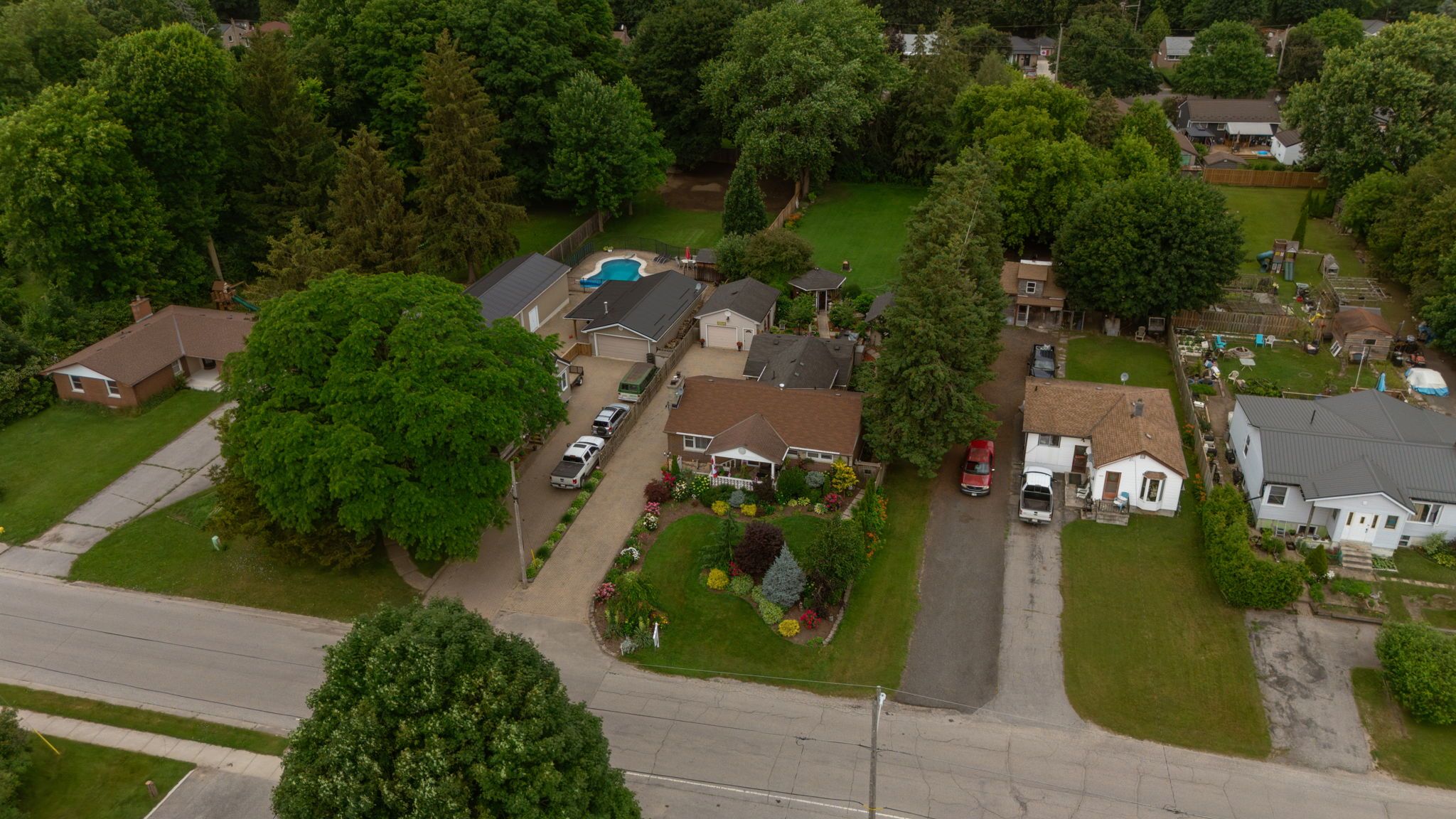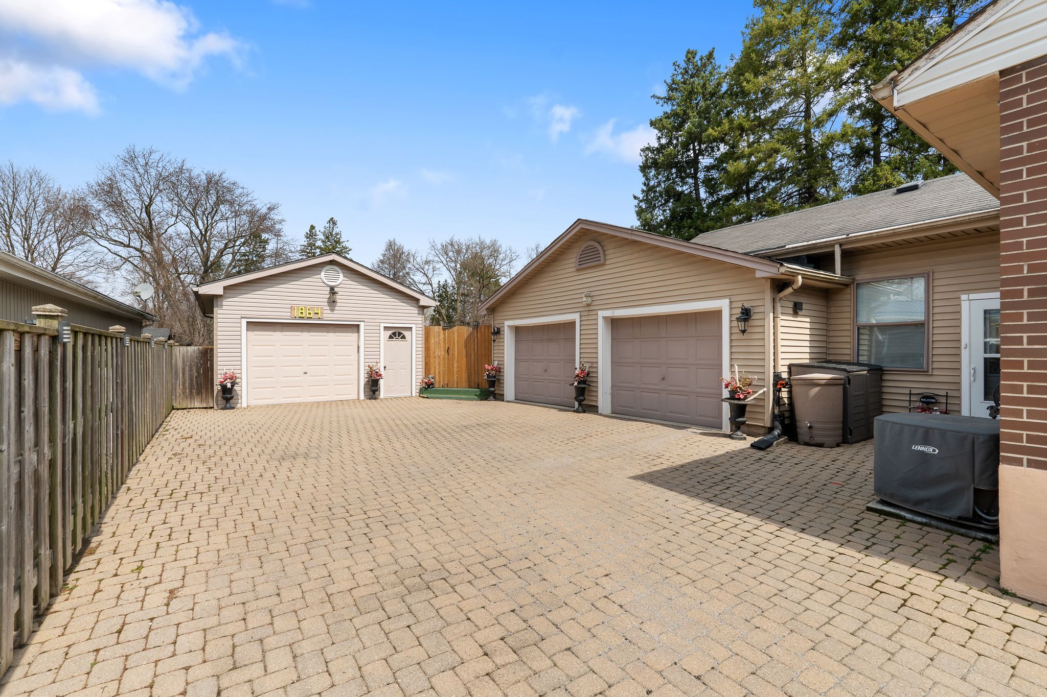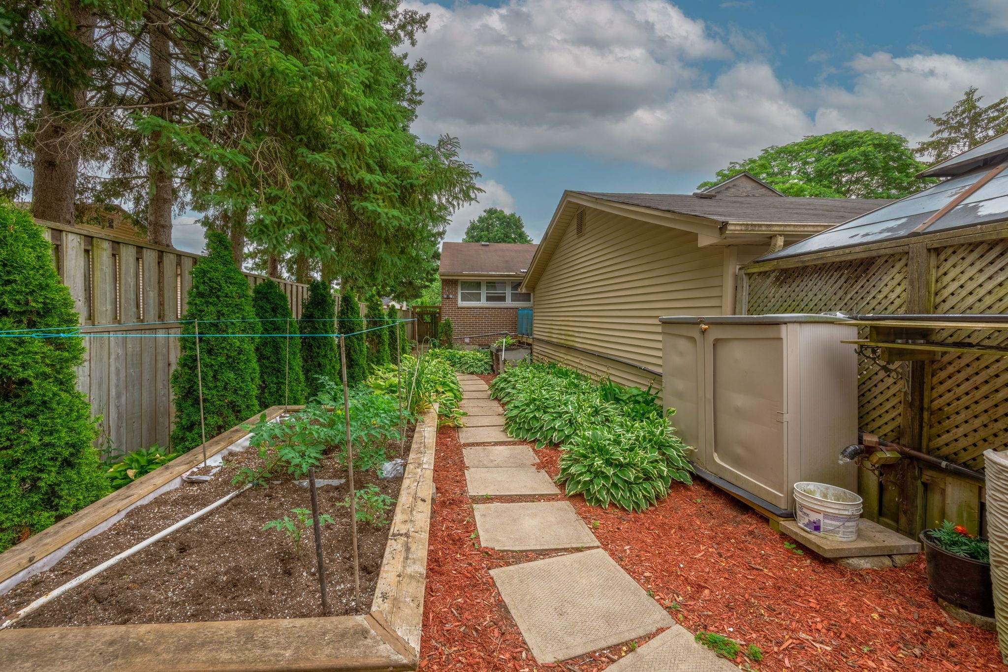 Pride of ownership shines in this beautiful bungalow. Tucked away on a quiet street, this versatile home features 3+2 bedrooms, 2 full bathrooms, and two separate kitchen areas - ideal for extended family or multi-generational living. The main level offers a bright welcoming living room complete with a natural gas fireplace. The kitchen is tastefully updated with granite countertops and matching backsplash. Downstairs, the finished lower level includes a private entrance to a self-contained 2-bedroom suite with its own kitchen, 4-piece bath, and laundry area. The property is equipped with 240-amp electrical service and an owned hot water heater. Outside, enjoy a stunning landscaped space featuring a large covered front porch, gazebo, two storage sheds, and a partially fenced 302-foot deep yard offering plenty of room to relax or entertain. The paved stone driveway fits up to six vehicles and is complemented by an attached double garage plus a detached single garage - perfect for extra storage, hobbies, or parking. Close to schools, parks, shopping, and everyday amenities, this well-maintained home offers space, flexibility, and long-term value in a peaceful setting.