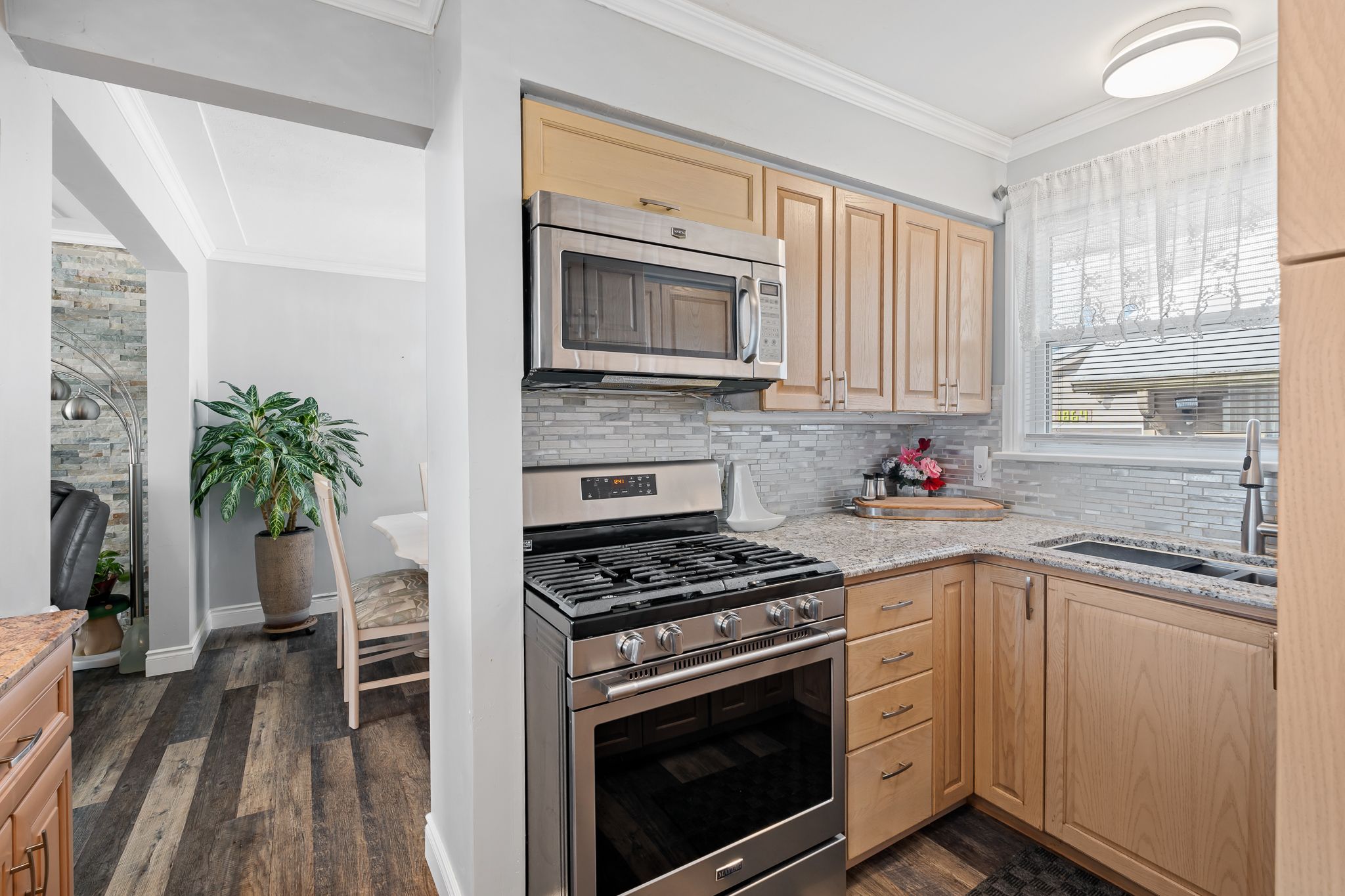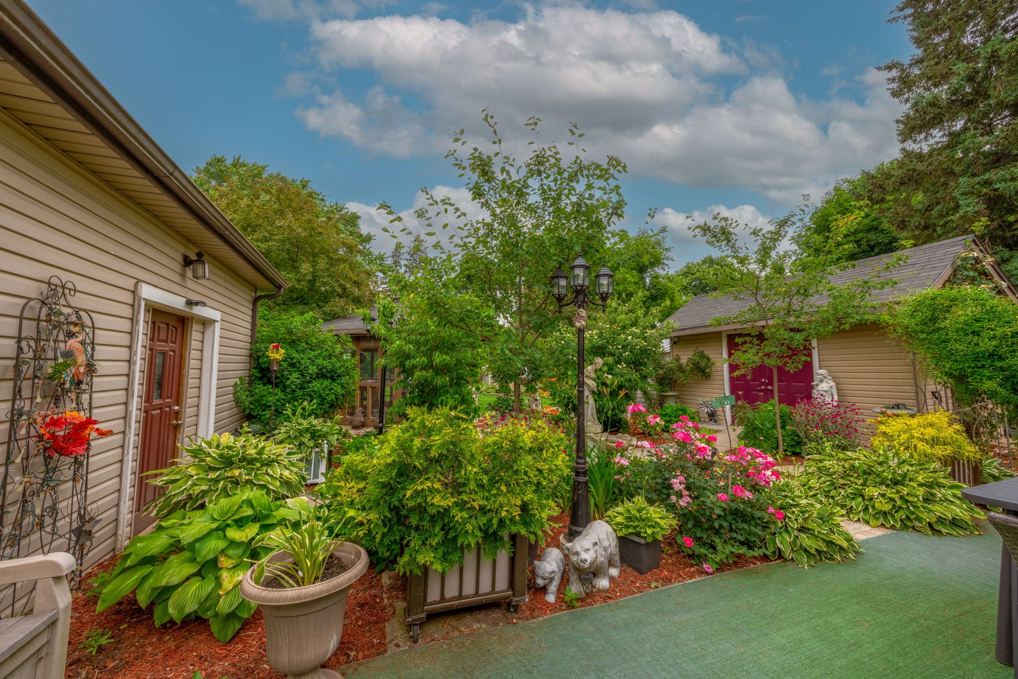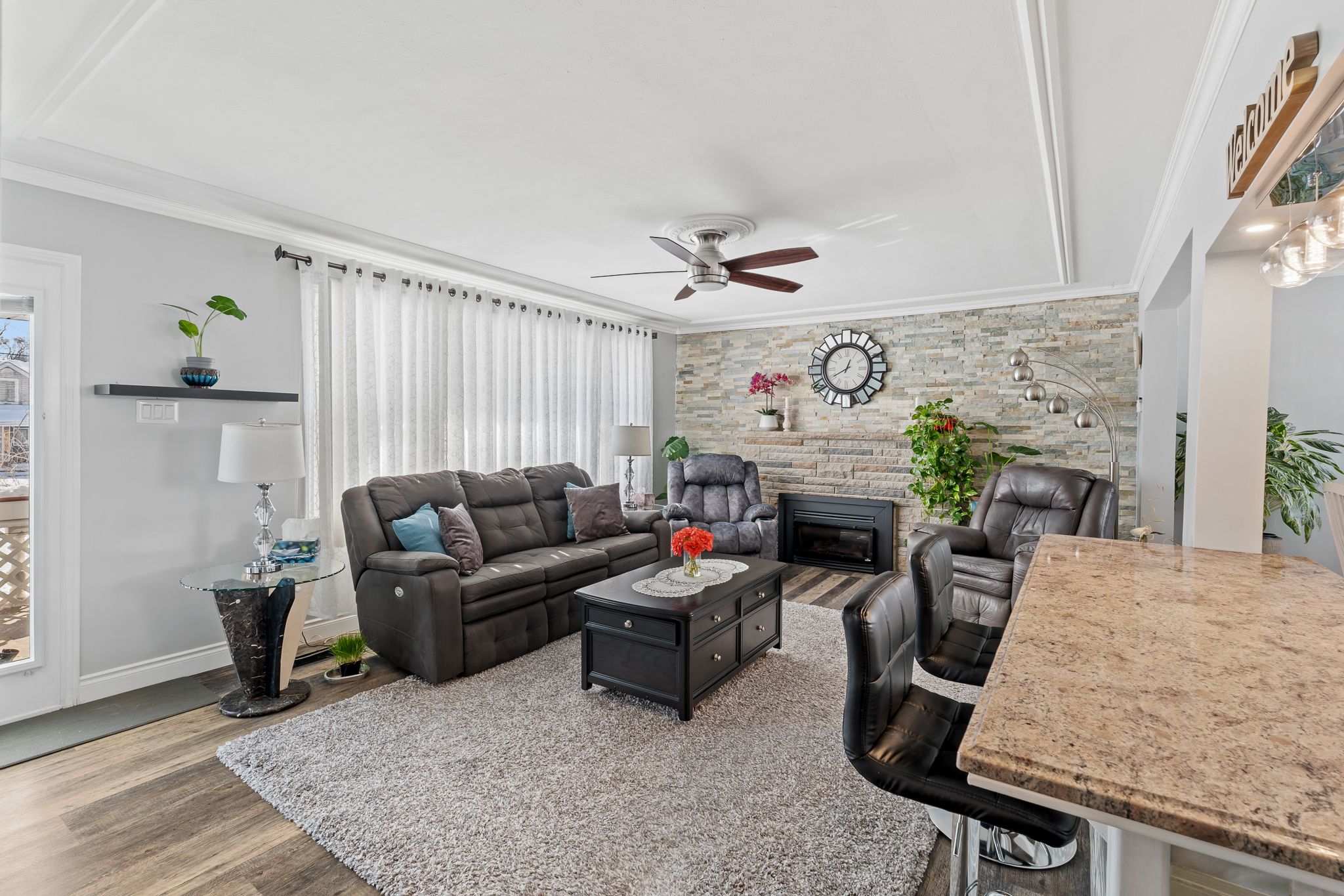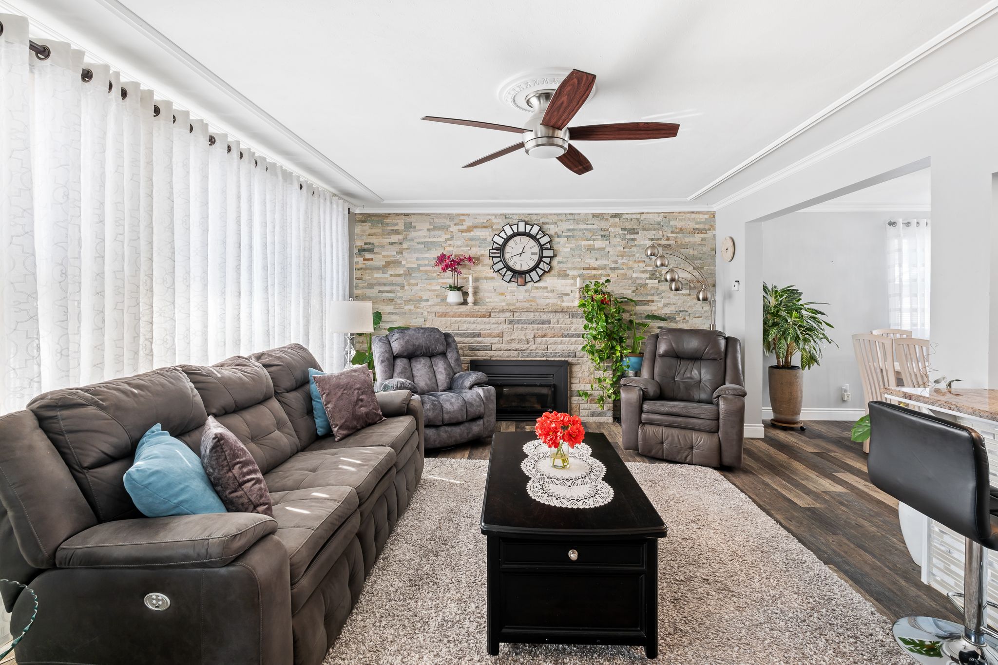 Pride of ownership shines in this beautiful bungalow. Tucked away on a quiet street, this versatile home features 3+2 bedrooms, 2 full bathrooms, and two separate kitchen areas - ideal for extended family or multi-generational living. The main level offers a bright welcoming living room complete with a natural gas fireplace. The kitchen is tastefully updated with granite countertops and matching backsplash. Downstairs, the finished lower level includes a private entrance to a self-contained 2-bedroom suite with its own kitchen, 4-piece bath, and laundry area. The property is equipped with 240-amp electrical service and an owned hot water heater. Outside, enjoy a stunning landscaped space featuring a large covered front porch, gazebo, two storage sheds, and a partially fenced 302-foot deep yard offering plenty of room to relax or entertain. The paved stone driveway fits up to six vehicles and is complemented by an attached double garage plus a detached single garage - perfect for extra storage, hobbies, or parking. Close to schools, parks, shopping, and everyday amenities, this well-maintained home offers space, flexibility, and long-term value in a peaceful setting.