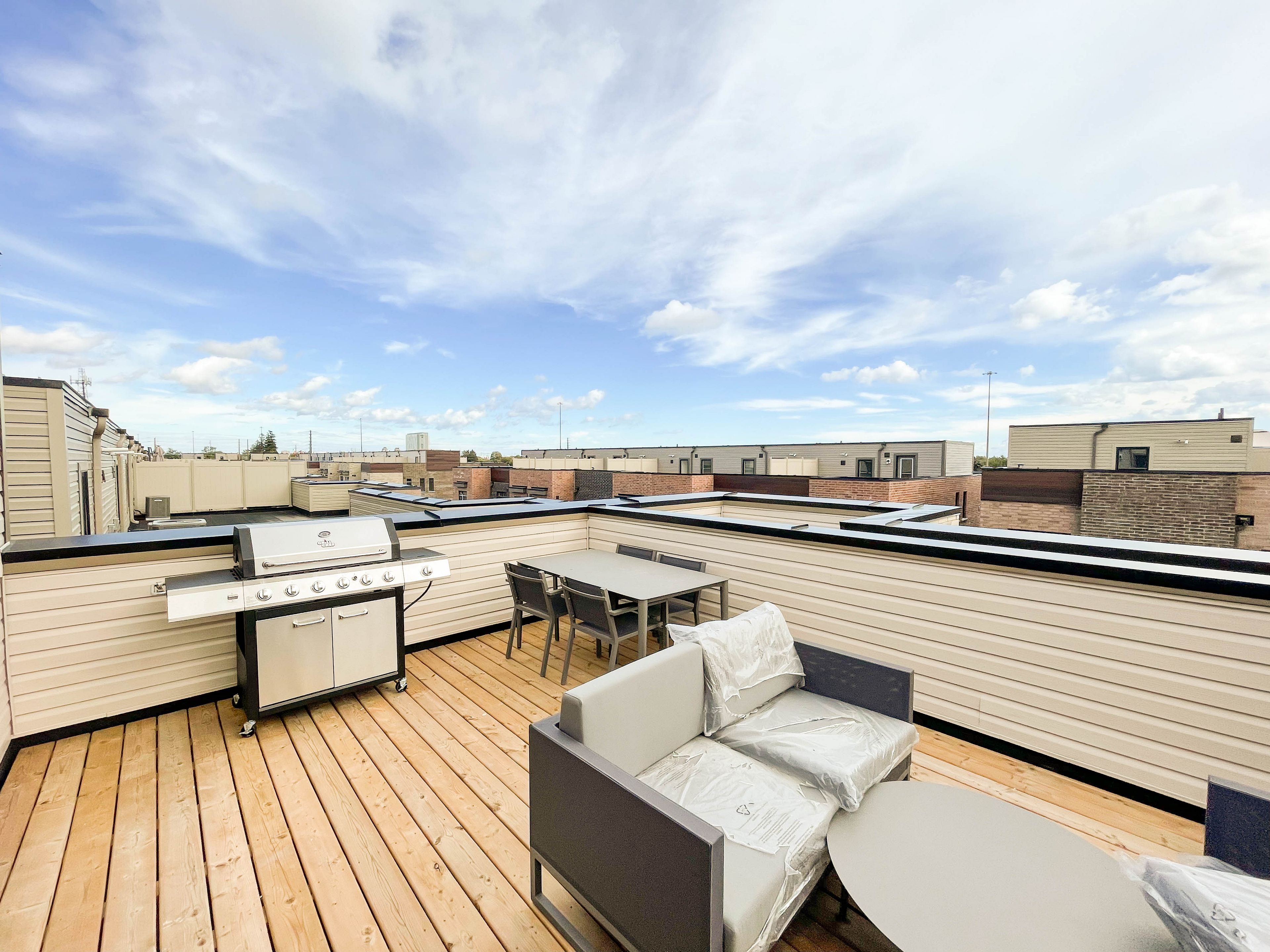 For rent: this town house is with a roof-top terrace **** experience the perfect fusion of modern living and everyday convenience in this stunning, corner townhouse, offering approximately 1,600 sq ft of sun-filled space. Featuring 3 spacious bedrooms, a ground-floor den/office, and 3 elegant washrooms, this thoughtfully designed home boasts smooth ceilings, premium flooring, and oversized windows that bathe the interiors in natural light. The gourmet kitchen is a chefs delight, showcasing sleek stone countertops, a large island with breakfast bar, and high-end stainless steel appliances. The luxurious primary suite includes a 4-piece ensuite, while the additional bedrooms are bright and generously sized. Enjoy panoramic views and entertain with ease on the expansive rooftop terrace, complete with a bbq unit included in the sales price. Located in a walkable, vibrant pickering community just minutes from parks, top-rated schools, shops, restaurants, and transit, this exceptional home is a must-seeschedule your private viewing today!