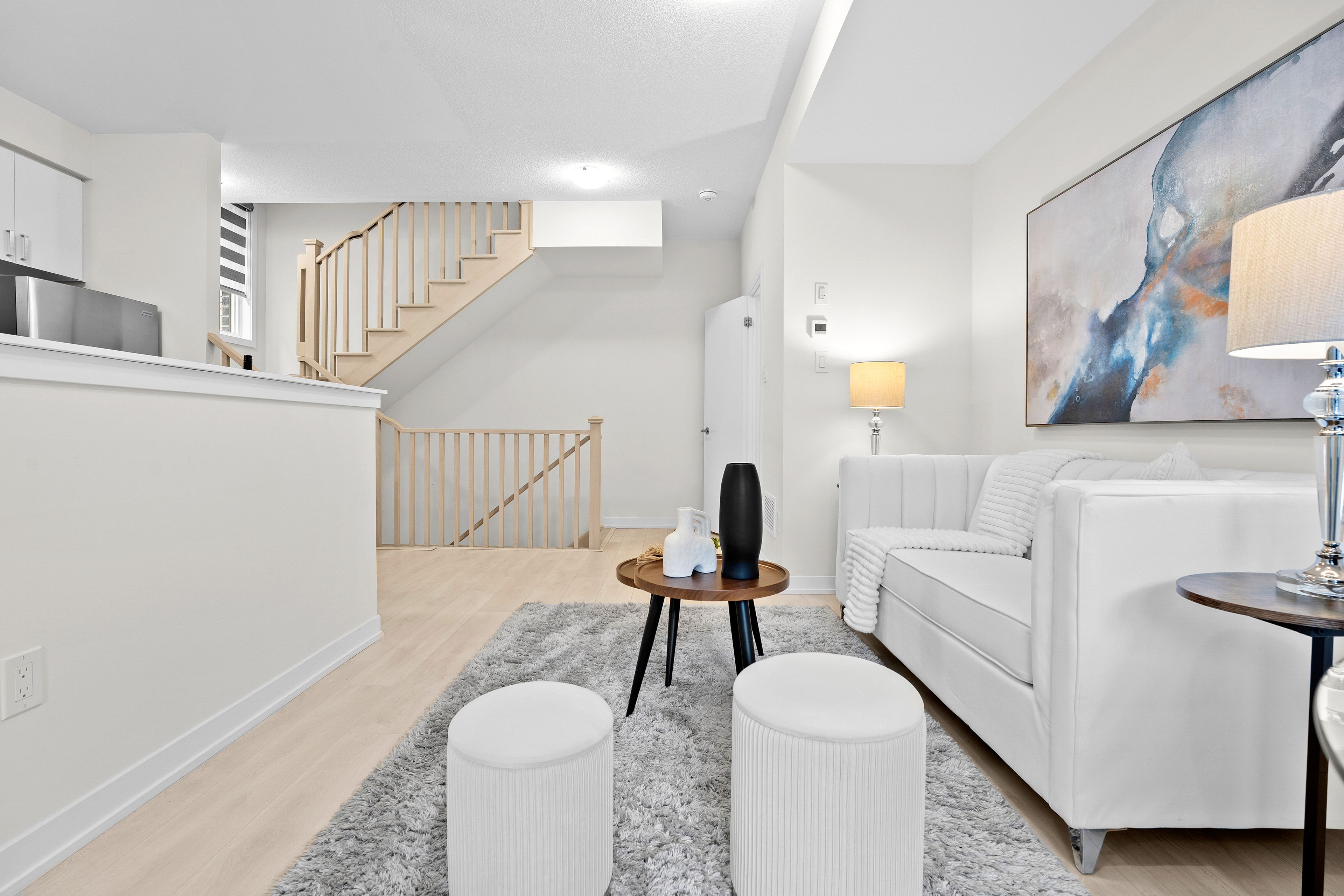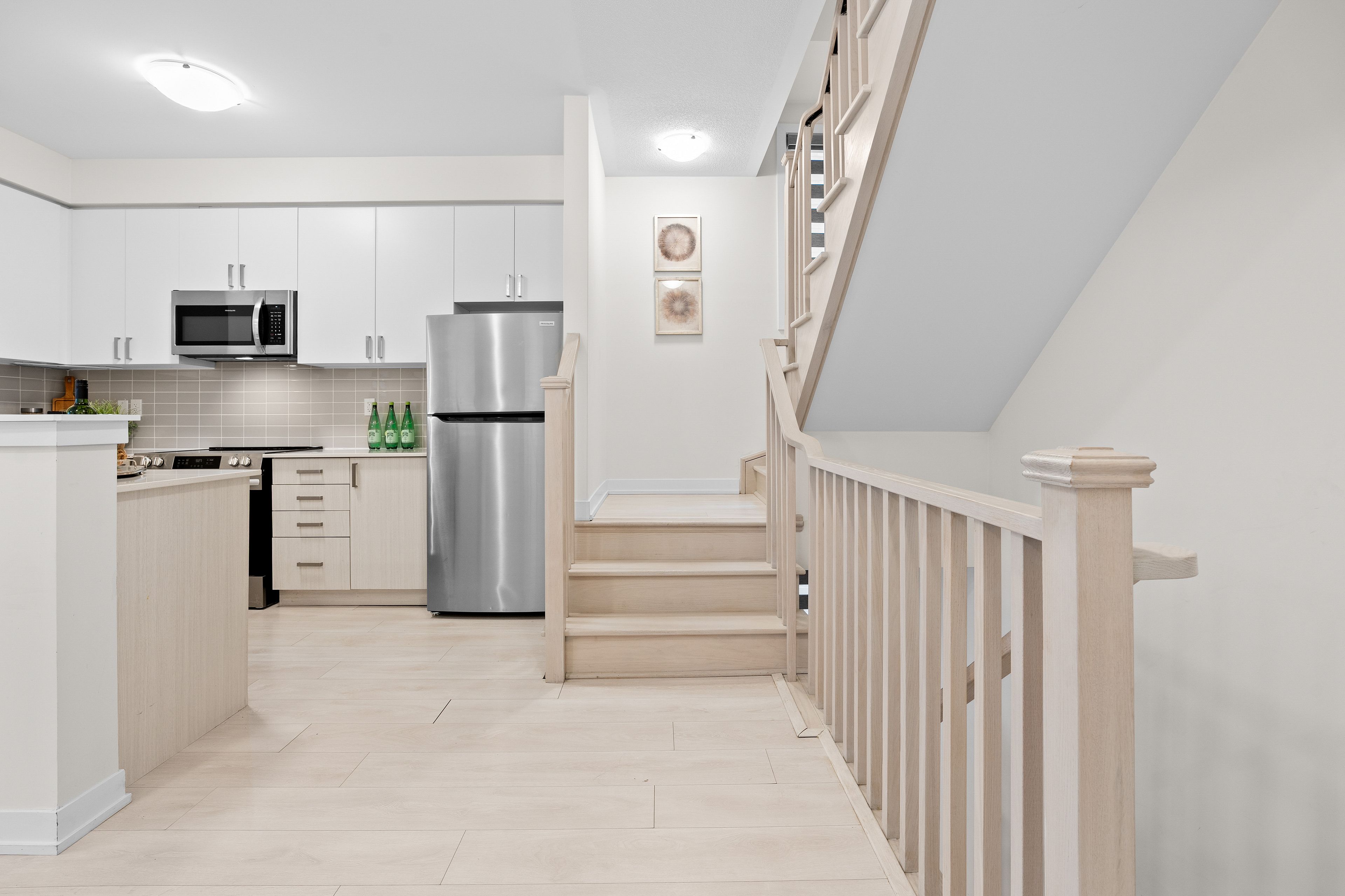 ** for lease **welcome to this cozy, modern end-unit townhouse located in the heart of pickering at brock road and highway 401. This well-designed 3-bedroom, 3-bathroom home offers the perfect blend of comfort, style, and convenience. Ideally situated close to all amenities, you'll enjoy easy access to grocery stores, shopping, restaurants, and everyday essentials. The elegant floorplan begins with a versatile main-level office, perfect for working from home or creating a quiet study space. The second level features a bright and functional open-concept layout with a modern kitchen, living, and dining area-ideal for both daily living and entertaining. Step out onto the covered balcony and enjoy your morning coffee or unwind in the evening. The kitchen is equipped with stainless steel appliances, a stylish backsplash, quartz countertops, an undermount sink, a space-saving over-the-range microwave, and trendy cabinetry. This level also includes a second bedroom and a convenient 2-piece bathroom. On the third level, the spacious primary bedroom offers a walk-in closet and a private ensuite. You'll also find a third bedroom, a full bathroom, and a dedicated laundry room, providing both comfort and practicality. Zebra blinds throughout the entire house! Additional highlights include two parking spaces, including a garage. Commuters will love the unbeatable location-just 2 minutes to highway 401, 10 minutes to pickering go station, and 7minutes to pickering town centre. This is a fantastic opportunity to own a stylish townhouse in a prime location-don't miss it!