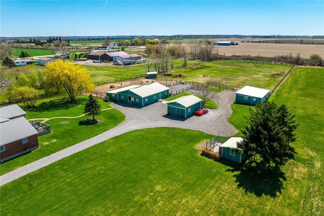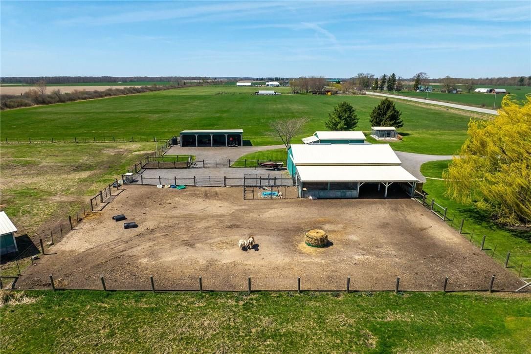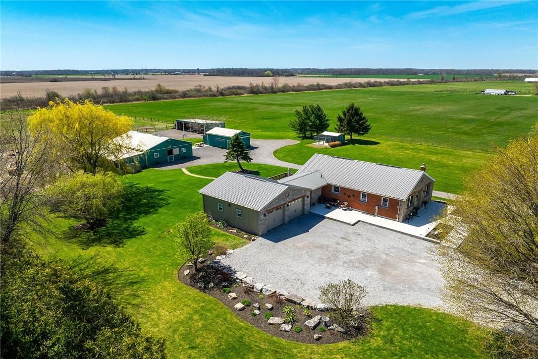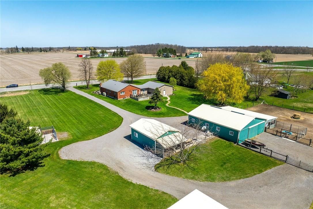 Immaculate 14. 34ac hobby farm located on eastern outskirts of norfolk cnty near haldimand county border central to hagersville & waterford. Incredible package begins at extensively renovated brick/stone/sided bungalow introducing over 2000sf of flawless living area (both levels), 680sf htd/ins. Attached garage w/10ft ceilings, new stamped conc floor, 2 new ins. Doors & p/g heater - complimented w/over 800sf of recently poured conc. Front/side patio + 360sf tiered rear deck. Livestock lovers will appreciate metal clad 30x42 barn (bit in 2000) incs 5 hardwood box stalls, hydro, water & 16x42 lean-to w/separate road entrance. Additional buildings inc metal clad 24x16 garage (bit in 2000), versatile 3 bay open-end building att. To 22x40 sea-container, 20x14 dog kennel on conc. Slab & multiple paddocks - majority of land is workable capable of supplying self sufficient feed livestock needs. Pristine home ftrs grand foyer incs 2 closets, rear & garage entry - leads to stylish kitchen'22 sporting dark cabinetry, tile back-splash, ss p/g stove, comm. Style side/side ss fridge/freezer topped off w/granite counters - segues to dinette boasting garden door deck wo. Gorgeous travertine tile flooring compliment these rooms w/upscale flair. Continues to luxurious living room augmented w/hardwood flooring & picture window - on to primary bedroom ftrs wi closet & en-suite privilege to chicly appointed remodeled bath in 2022 - completed w/guest bedroom. Custom wood staircase descends to lower level family room - perfect for large family gatherings or simply to relax - additional rooms inc 2 bedrooms, modern 4pc bath, office/den or poss. 5th bedroom (no window), laundry room & utility room. Extras -metal roof, new ceilings, 200 hydro, vinyl windows, recent facia/soffit/eaves/siding, 4 ext. Doors'23, int. Doors/hardware/trim/baseboards'13, ex. Well w/purification system, p/gas aqua-therm furnace-2025, ac, c/vac & more. Experience rural living - rooted in sustainability & satisfaction.