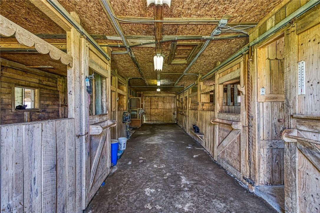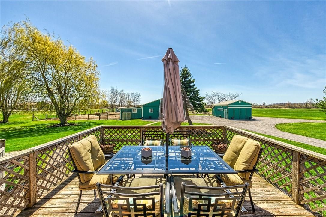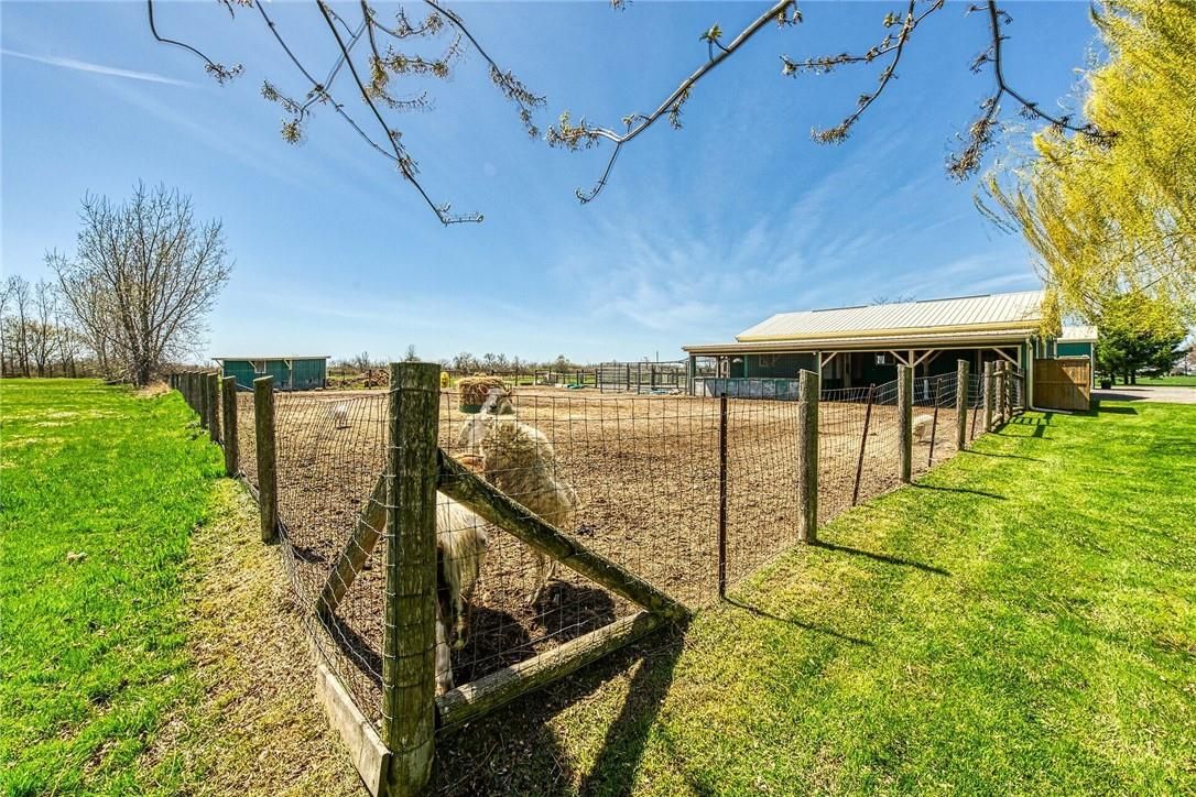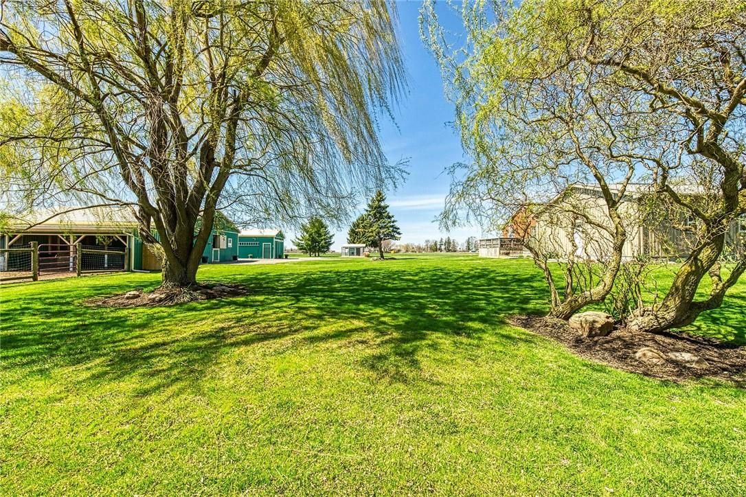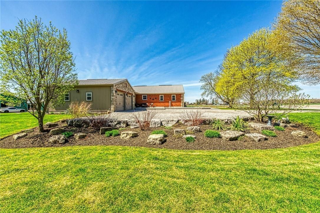 Immaculate 14. 34ac hobby farm located on eastern outskirts of norfolk cnty near haldimand county border central to hagersville & waterford. Incredible package begins at extensively renovated brick/stone/sided bungalow introducing over 2000sf of flawless living area (both levels), 680sf htd/ins. Attached garage w/10ft ceilings, new stamped conc floor, 2 new ins. Doors & p/g heater - complimented w/over 800sf of recently poured conc. Front/side patio + 360sf tiered rear deck. Livestock lovers will appreciate metal clad 30x42 barn (bit in 2000) incs 5 hardwood box stalls, hydro, water & 16x42 lean-to w/separate road entrance. Additional buildings inc metal clad 24x16 garage (bit in 2000), versatile 3 bay open-end building att. To 22x40 sea-container, 20x14 dog kennel on conc. Slab & multiple paddocks - majority of land is workable capable of supplying self sufficient feed livestock needs. Pristine home ftrs grand foyer incs 2 closets, rear & garage entry - leads to stylish kitchen'22 sporting dark cabinetry, tile back-splash, ss p/g stove, comm. Style side/side ss fridge/freezer topped off w/granite counters - segues to dinette boasting garden door deck wo. Gorgeous travertine tile flooring compliment these rooms w/upscale flair. Continues to luxurious living room augmented w/hardwood flooring & picture window - on to primary bedroom ftrs wi closet & en-suite privilege to chicly appointed remodeled bath in 2022 - completed w/guest bedroom. Custom wood staircase descends to lower level family room - perfect for large family gatherings or simply to relax - additional rooms inc 2 bedrooms, modern 4pc bath, office/den or poss. 5th bedroom (no window), laundry room & utility room. Extras -metal roof, new ceilings, 200 hydro, vinyl windows, recent facia/soffit/eaves/siding, 4 ext. Doors'23, int. Doors/hardware/trim/baseboards'13, ex. Well w/purification system, p/gas aqua-therm furnace-2025, ac, c/vac & more. Experience rural living - rooted in sustainability & satisfaction.
