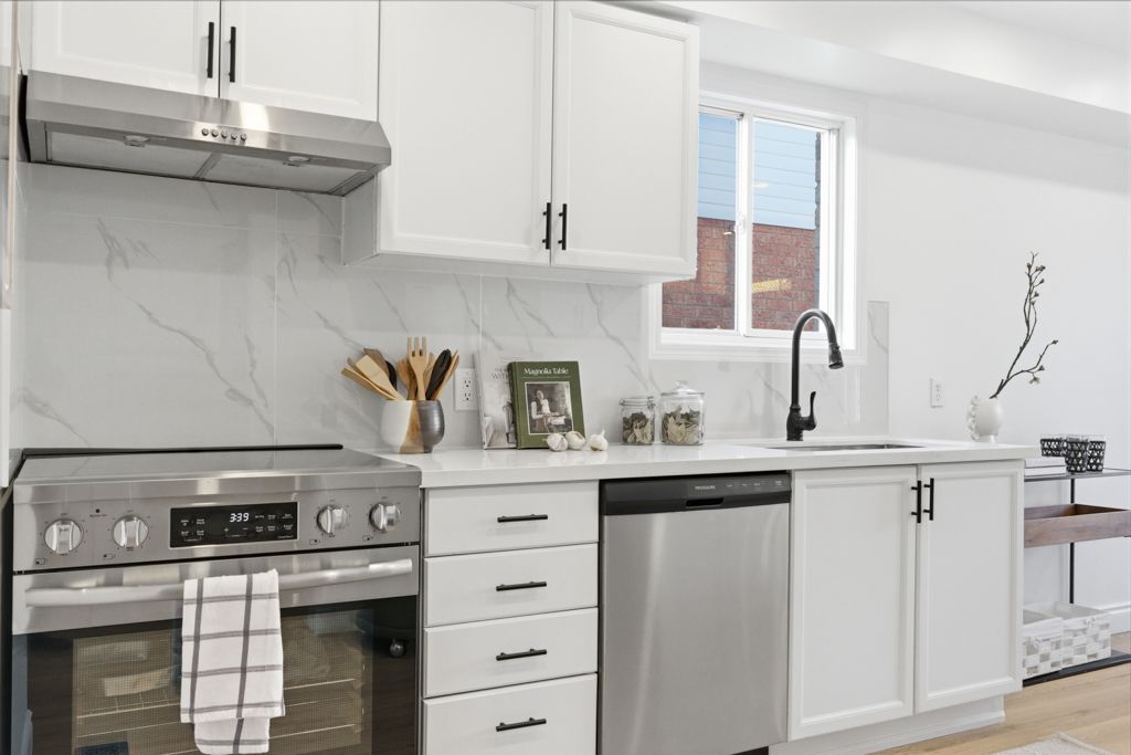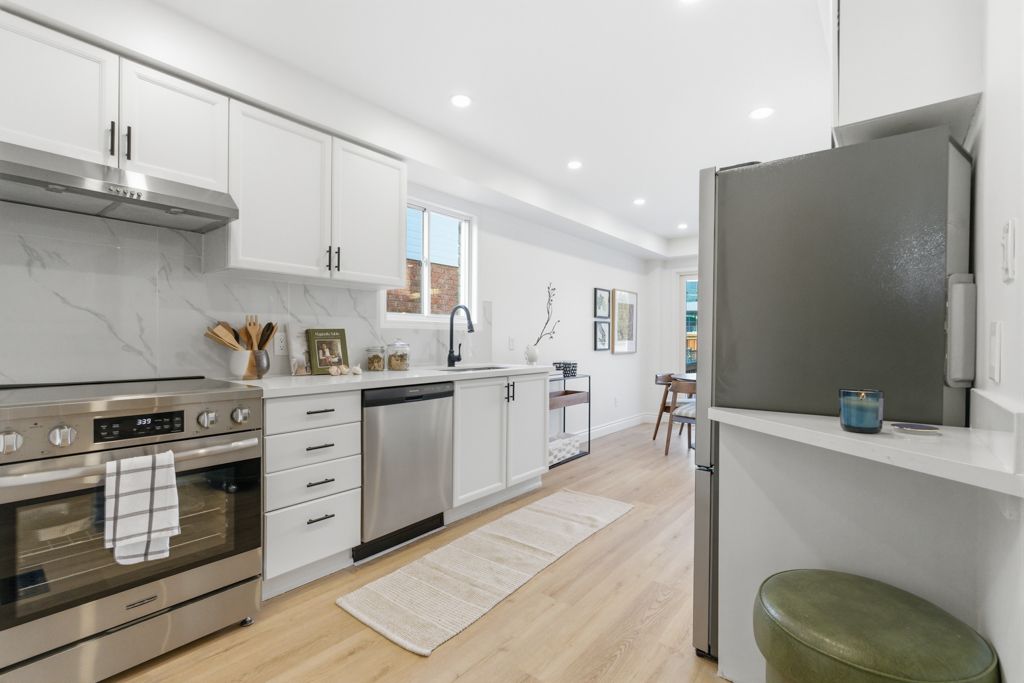 • Spacious kitchen with quartz countertops and new appliances.