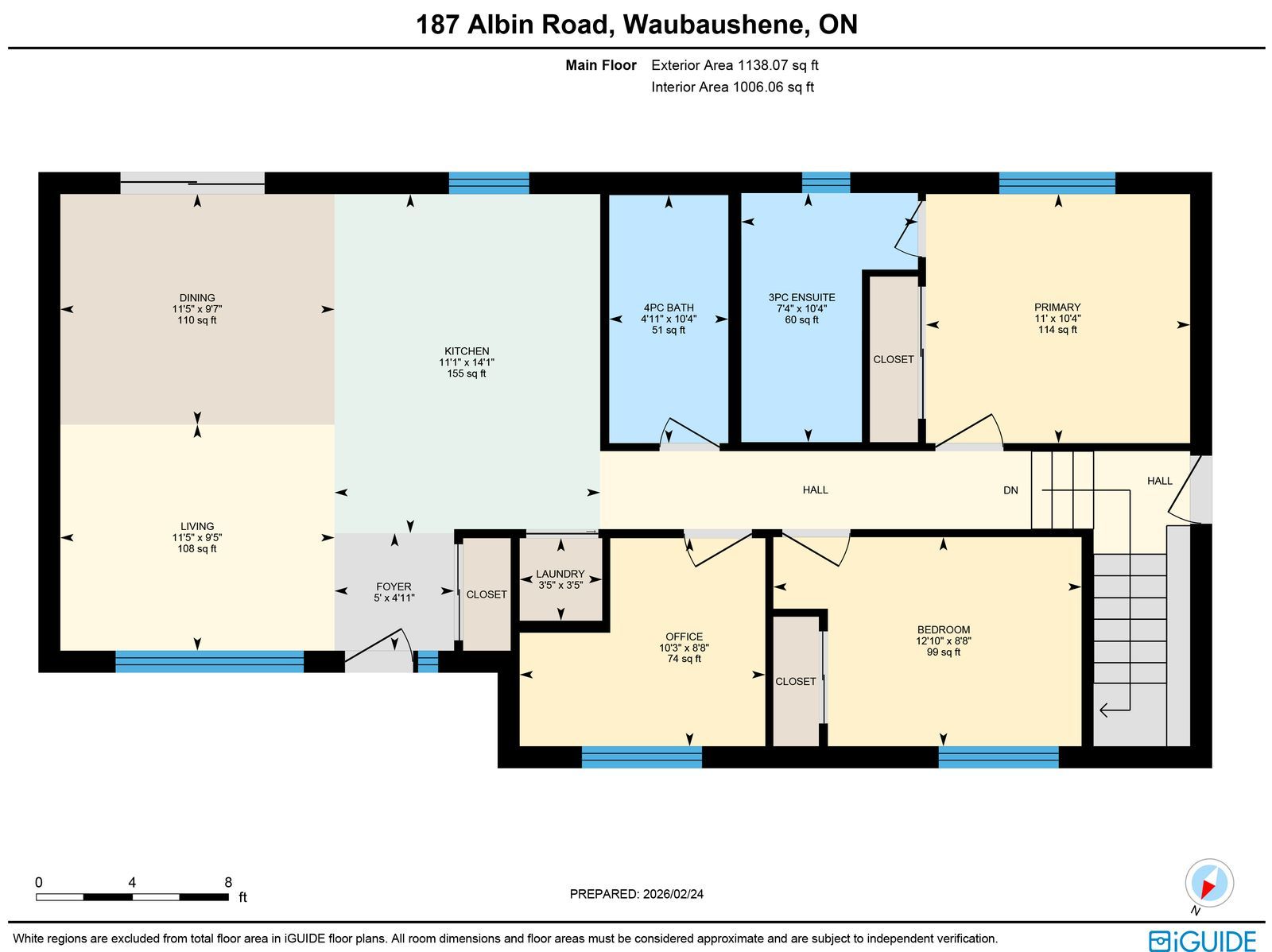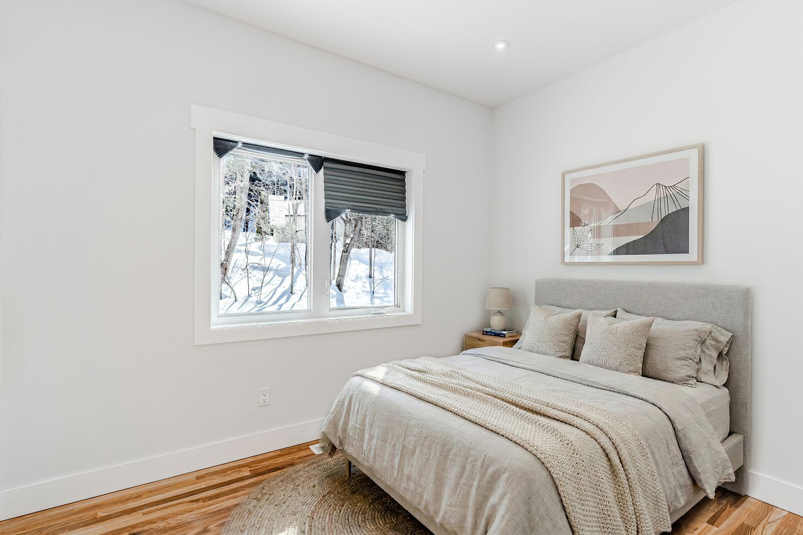 Newly constructed bungalow with elevated finishes on a quiet cul-de-sac, within walking distance to waubaushene beach! Walk in, pause, look around, and you'll know why people say you'll feel it when it's the one. Vaulted ceilings, a sun-filled open layout, and an inviting kitchen pull you in instantly. Set on a landscaped 129 x 107 ft lot on a quiet cul-de-sac, with parking for seven, this home features vertical board-and-batten siding, black-trimmed windows, a large front window, and a front porch with soffit lighting, plus a front door with a sidelight. Oak hardwood flooring and pot lights carry through the main living space, and the dining area opens to the backyard for easy everyday flow. The kitchen brings serious style with quartz countertops, white shaker cabinetry, brass hardware, under-cabinet lighting, a double sink, and a generous island centred beneath a sleek three-light linear pendant. A sliding barn door reveals a dedicated office that doubles as a hobby room, playroom, or a flexible third bedroom. Both bedrooms offer double closets and large bedside windows, including a primary suite with a 3-piece ensuite hosting a quartz-topped vanity and a glass-walled walk-in shower, while the main 4-piece bath features a grey vanity with a quartz countertop and a tub-shower combo. The full-height unfinished basement with in-law capability offers a separate entrance, rough-in plumbing, and egress windows. Efficient mechanicals, including a heat pump, gas furnace, and central air, provide year-round comfort. Walk to waubaushene beach, waubaushene beaches provincial park, the tay trail, the library, food mart, and the park and playground, with quick access to highway 400 and minutes to marinas, fishing, snowmobile routes, and four-season outdoor fun.