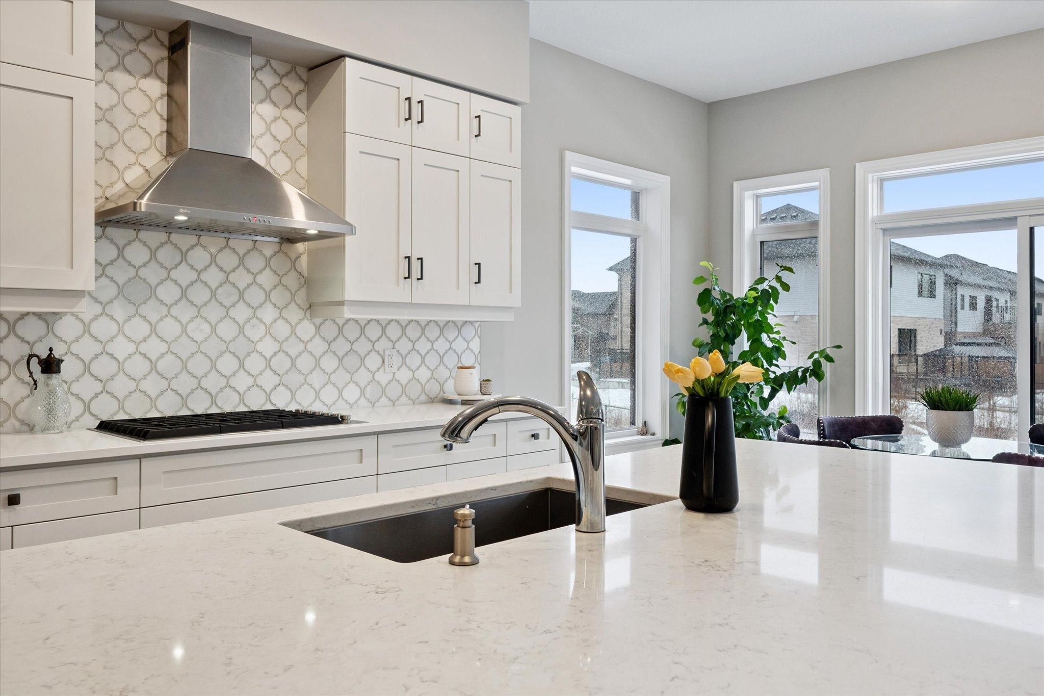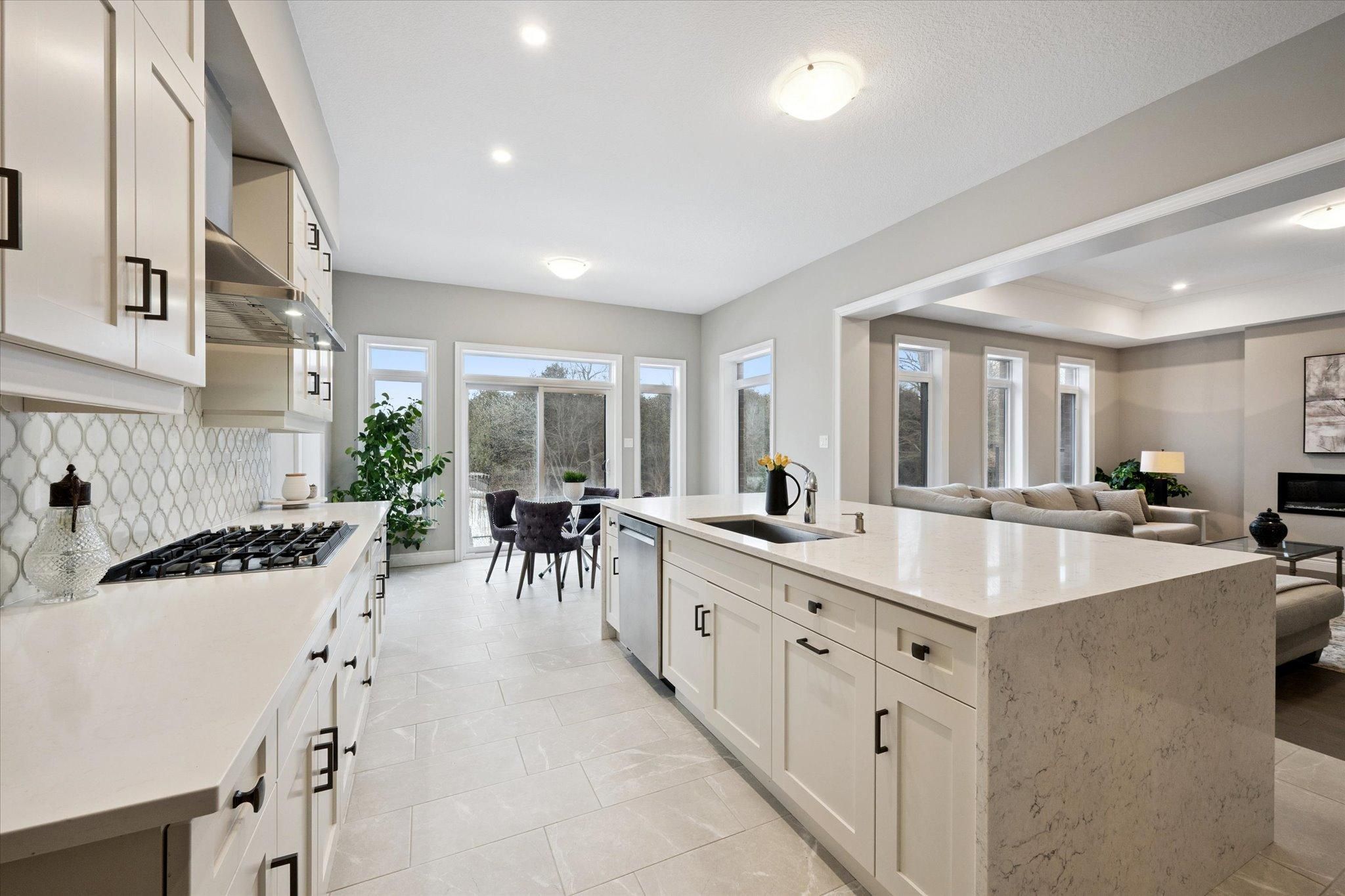 Exquisite 6-bdrm home w/2-bdrm in-law suite w/sep ent backing onto greenspace on quiet crescent in sought-after kortright east neighbourhood! Exceptional space, luxury finishes & versatility for modern family living. You're welcomed by foyer, 10ft ceilings & sitting room perfect for playroom, family area or secondary office. Kitchen w/white cabinetry, backsplash & high-end b/i jennair appliances. Waterfall quartz island w/undermount sink & breakfast bar offers prep space. W/i pantry with b/i cabinetry & adjoining servery w/wine bar offers storage & convenience. Breakfast nook lined w/windows & 6ft sliding door provides backyard views. Living room w/coffered ceilings, rich hardwood & napoleon fireplace. Dining room w/hardwood & large windows for hosting dinners. Private office w/large window & 2pc bath w/floating vanity & quartz counters. Open staircase w/dark hardwood & black iron spindles create architectural feature while maintaining an open feel btwn levels. Upstairs primary bdrm with w/i closet & garden doors leading to balcony. Ensuite with w/i shower, bench seating & rainfall shower, his-&-hers floating vanities & freestanding tub. Off closet is 2nd-floor laundry room. Another bdrm has vaulted ceilings, w/i closet & 3pc ensuite w/quartz counters & w/i shower. 2 other bdrms share jack-&-jill bathroom w/dbl-sink vanity & sep room for toilet & tub/shower. Upper level has 9ft ceilings & upgraded carpet w/8lb memory foam under pad. Builder-completed 2-bdrm nanny suite w/sep ent, eat-in kitchen & living room. There is 4pc bath, laundry, 9ft ceilings & 3 large 56" x 32" egress windows. Upgrades: interior & exterior pot lights, enlarged transom windows, upgraded tile, 96-inch lincoln park interior doors, 200amp electrical, colony pro right-height elongated toilets & more! Backyard w/gas line & large yard for kids & pets to play. Steps from macalister trails, jubilee park & short walk to École arbour vista ps. Mins from amenities & easy access to 401 for quick commute