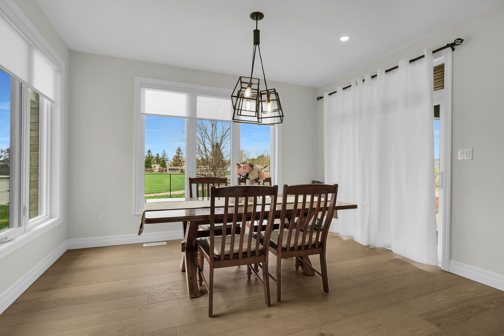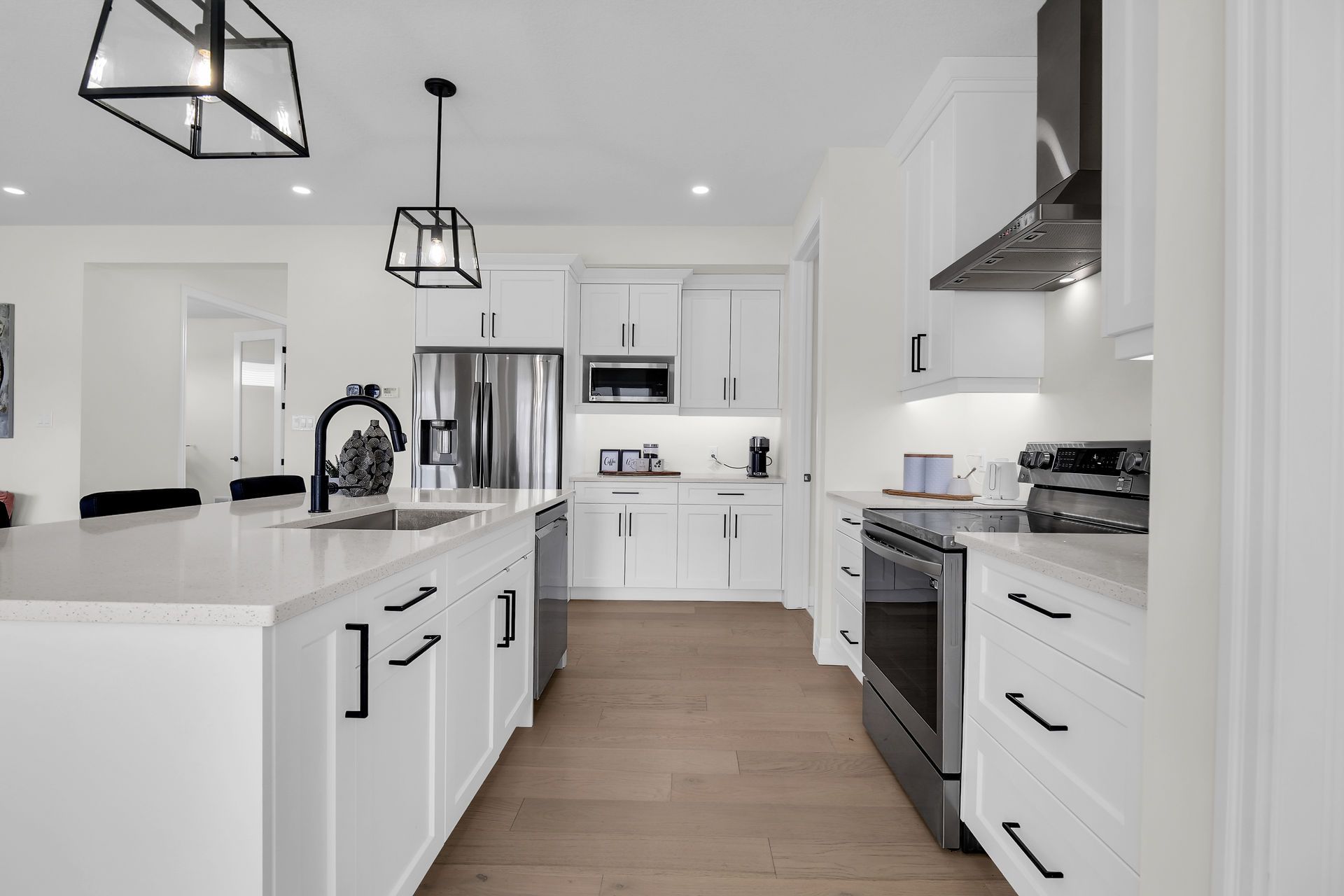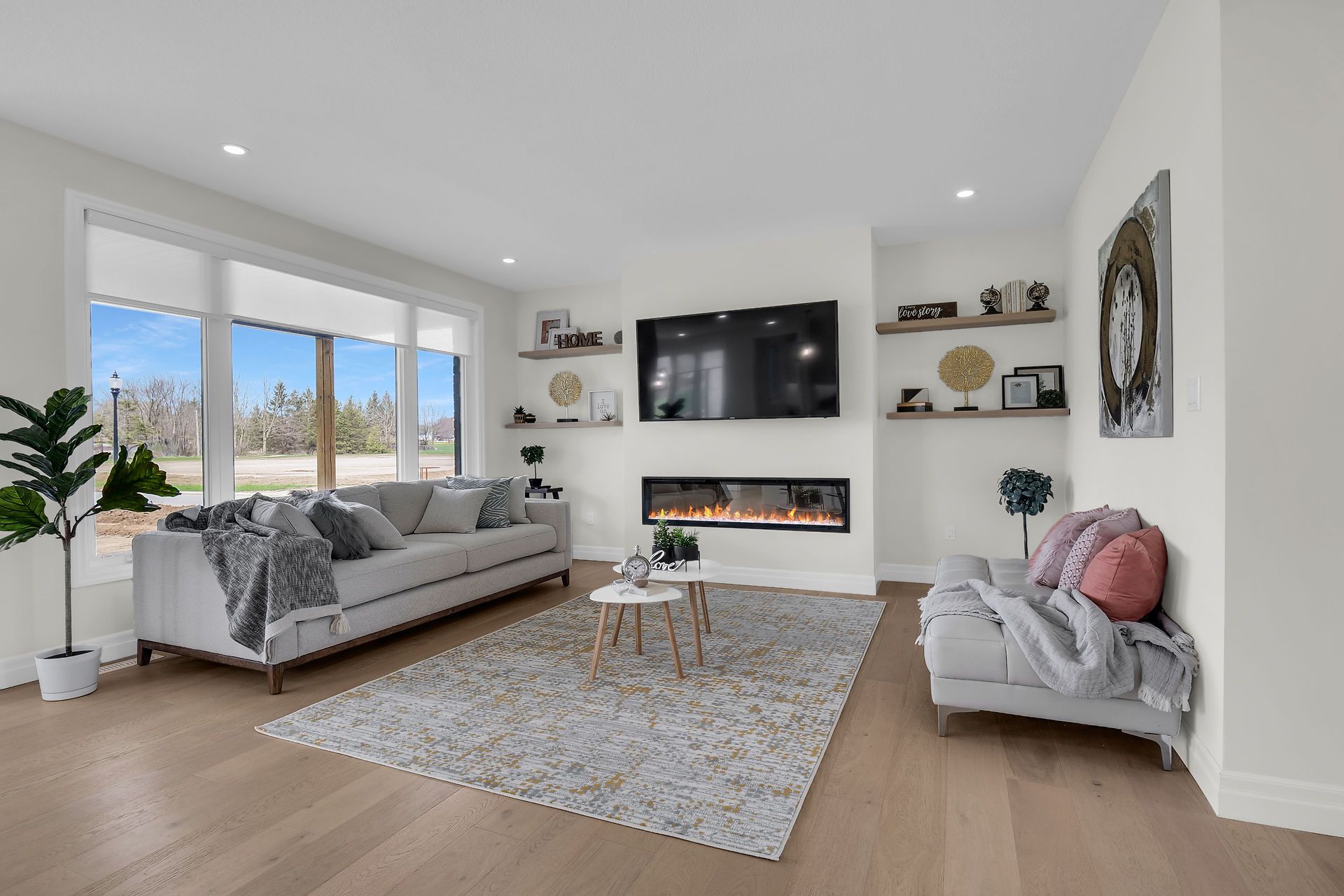 Experience modern living in the heart of thorndale's foxborough community at 187 foxborough place. This beautiful 3-bedroom, 2. 5-bathroom, 2-storey home is the manhattan model built by royal oak homes. The striking stone front entrance opens to a bright and airy foyer that leads into a spacious open-concept main floor. The kitchen features quartz countertops, a walk-in pantry, and an additional separate pantry room with extensive cabinetry for storage. Upstairs, the primary bedroom offers a luxurious 5-piece ensuite, complete with a standalone soaker tub and a glass-enclosed shower. Additional features include a double-car garage with extra gas heating, an insulated garage door with glass panels, and separate heating controls for the main and second floors. This home sits on a premium corner lot and includes a covered porch with a beautiful, unobstructed park view. Upgrades throughout include hardwood flooring on the main level and bedrooms, a striking 74" wide fireplace, stone exterior accents, and enhanced mechanical features. A stunning, upgraded home in one of thorndale's most sought-after communities-move-in ready and sure to impress.