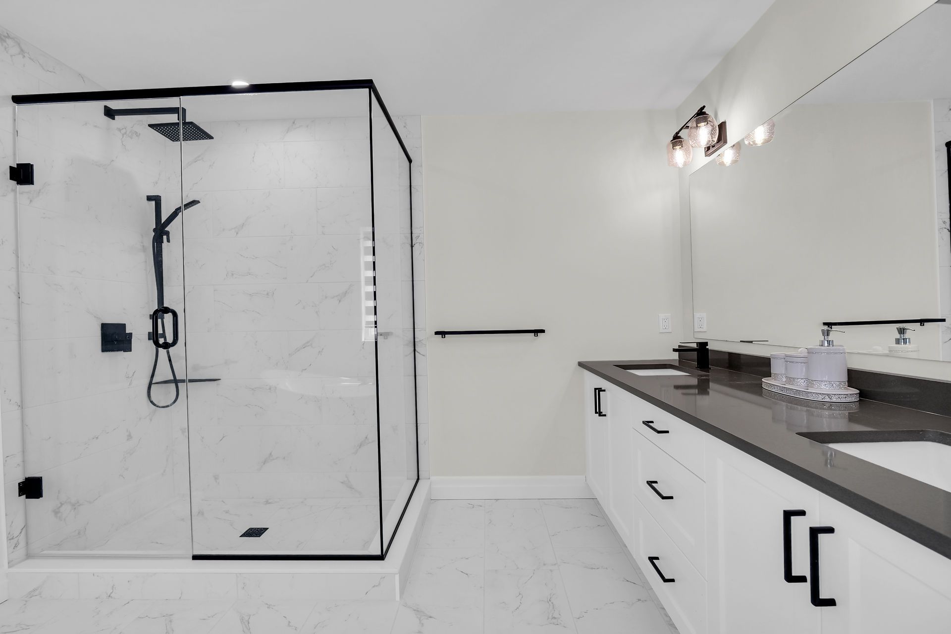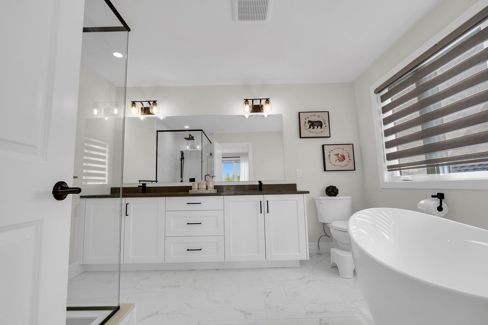 • Luxurious primary ensuite with soaker tub and glass shower.