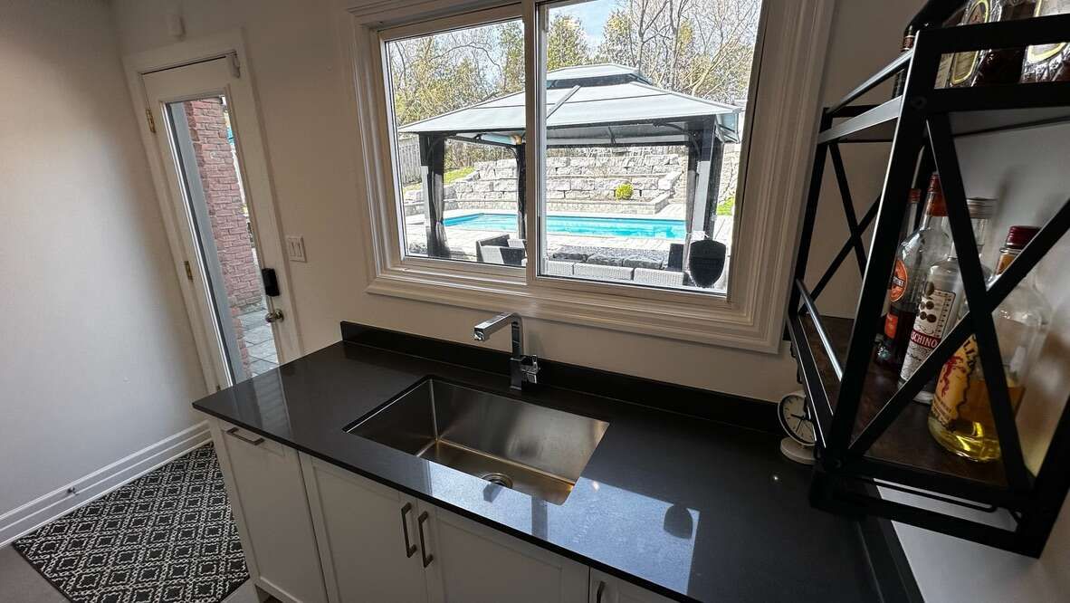 187 hickman street in bolton. 1500 sqft of above-grade living space, nestled on a quiet court, in the exclusive "valley" neighbourhood. Stunning raised bungalow on a premium deep ravine lot, backing onto protected conservation land. Breathtaking humber river valley views from virtually every room. Spacious open-concept main-level layout has large picture windows, smooth ceilings/pot lights throughout, and all-new 'prima lighting' fixtures. Freshly painted in chantilly lace (4 coats). Upgraded kitchen with counter and fridge dispensers connected to the home's premium water softener and full filtration system. Central air-conditioner, central vacuum (with all attachments), and a comprehensive smart security system. Walk out to a brand-new deck overlooking your private backyard oasis. 3 bedrooms with new built-in storage. All 3 bathrooms were fully renovated in 2025 with premium tile and schluter drains. Fully finished walk-out basement with a new kitchenette and laundry (premium appliances) and french door walk-out to the resort-style backyard, a 4th bedroom, 4-piece bath, open-concept recreation space (ping-pong table included!), a massive mud room/garage with above-grade entrance to the home including a new custom wall-to-wall storage unit. Large rectangular saltwater inground pool with multicolour led lighting; iaqualink smart pool automation system; high-performance robotic pool cleaner; and new winter and solar covers. Professionally landscaped with thousands of pounds of armour stone, new front stone walkway! Short walk from the heritage downtown core and surrounded by river-side nature walking trails. $90,000 in recent upgrades. A true turn-key retreat - private, refined, and made for both entertaining and everyday living.