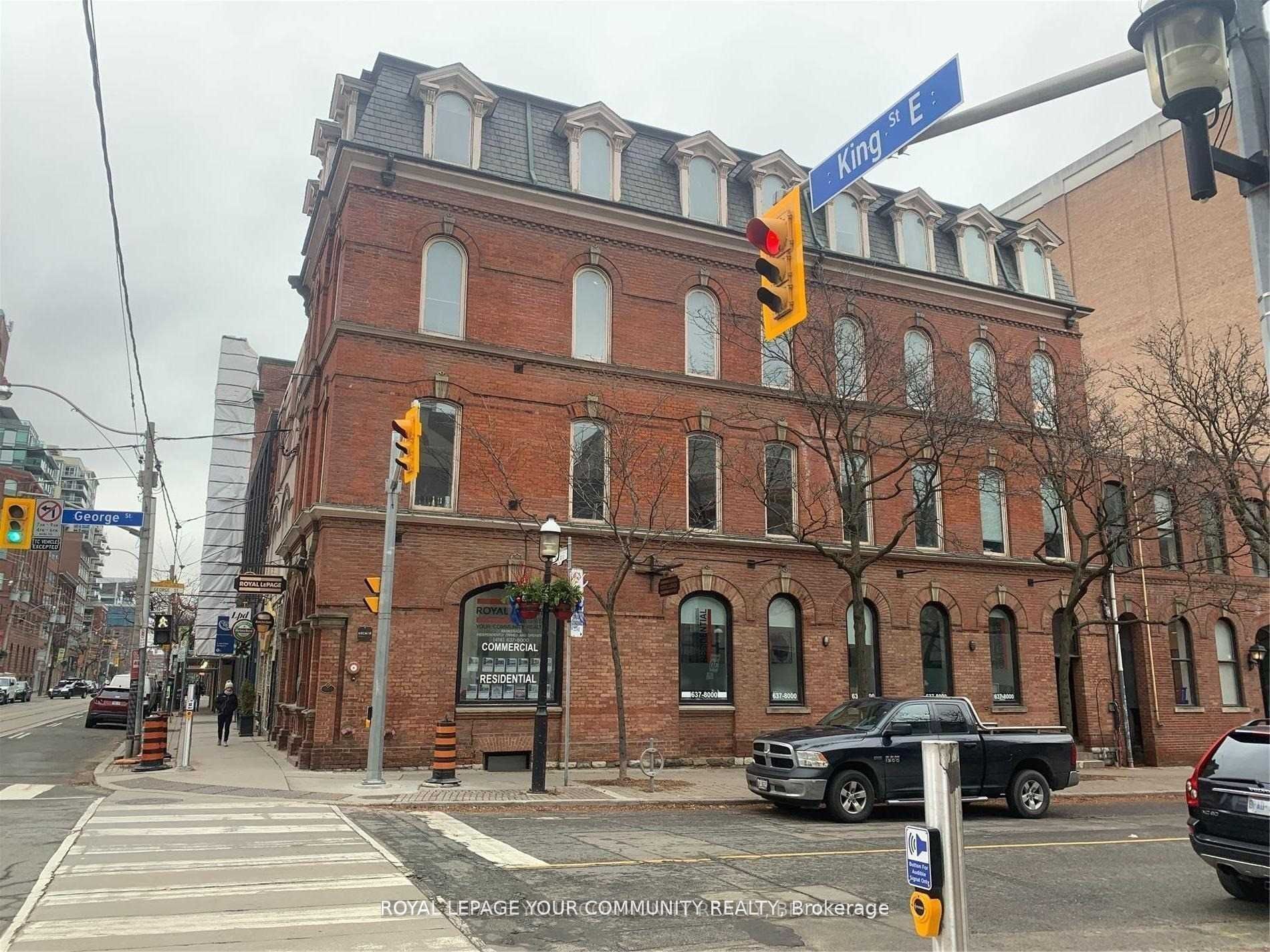 Offering first 6 months net rent free. Rustic and open concept fourth (top) floor office space with sweeping 270 degree skyline views. Multiple windows provide ample natural light. Gorgeous historically protected low rise building on king st streetcar line. Steps from st. Lawrence market, minutes to dvp/gardiner/lakeshore. 1850 sqft. Full kitchen + kitchenette, full bathroom+ shower. Very unique space. Could easily accommodate a variety of uses. Easy to show**extras** perfect professional office space, aaa location!!! Gross lease. Offering full bath, full kitchen and kitchenette. All lighting and window blinds remain.