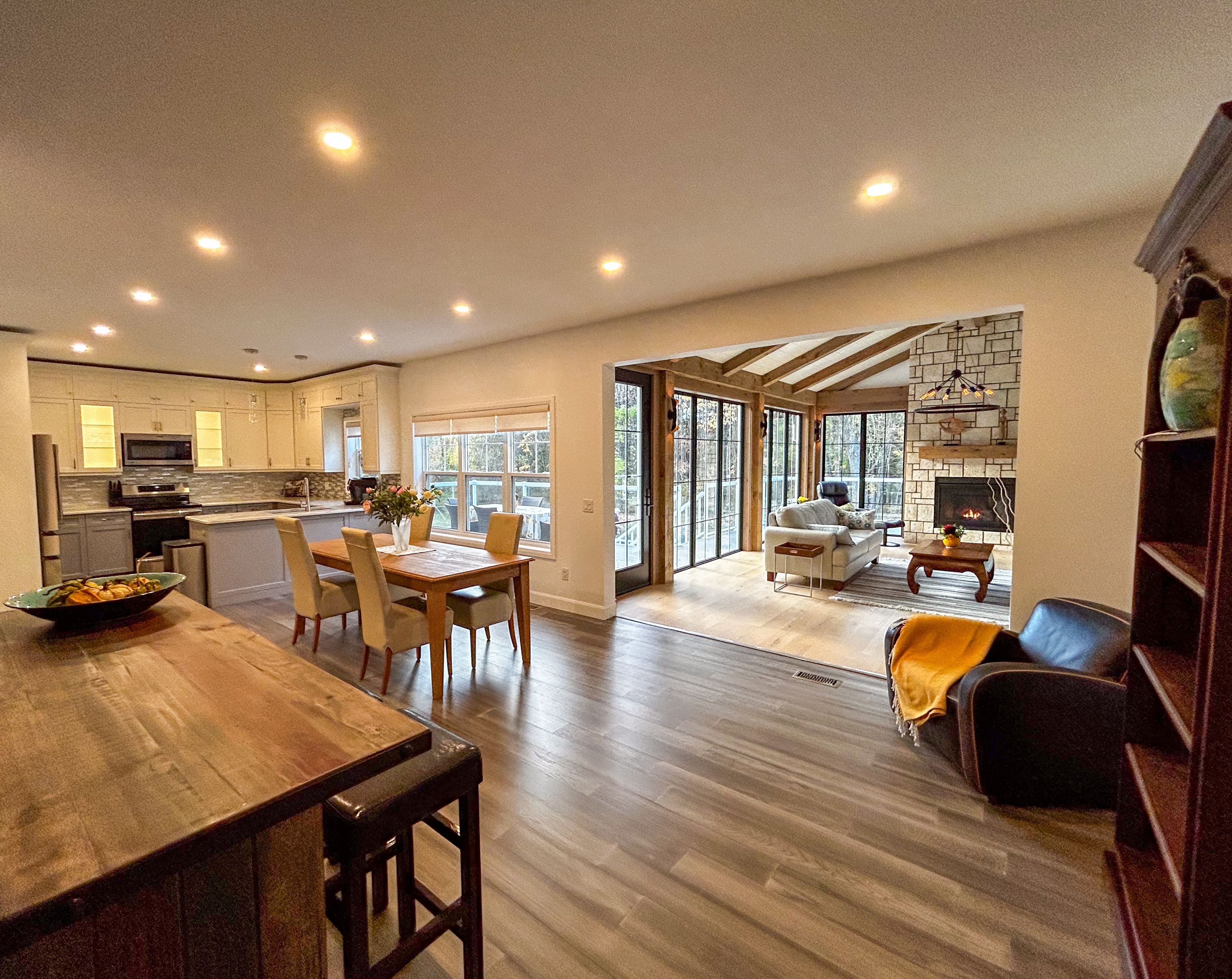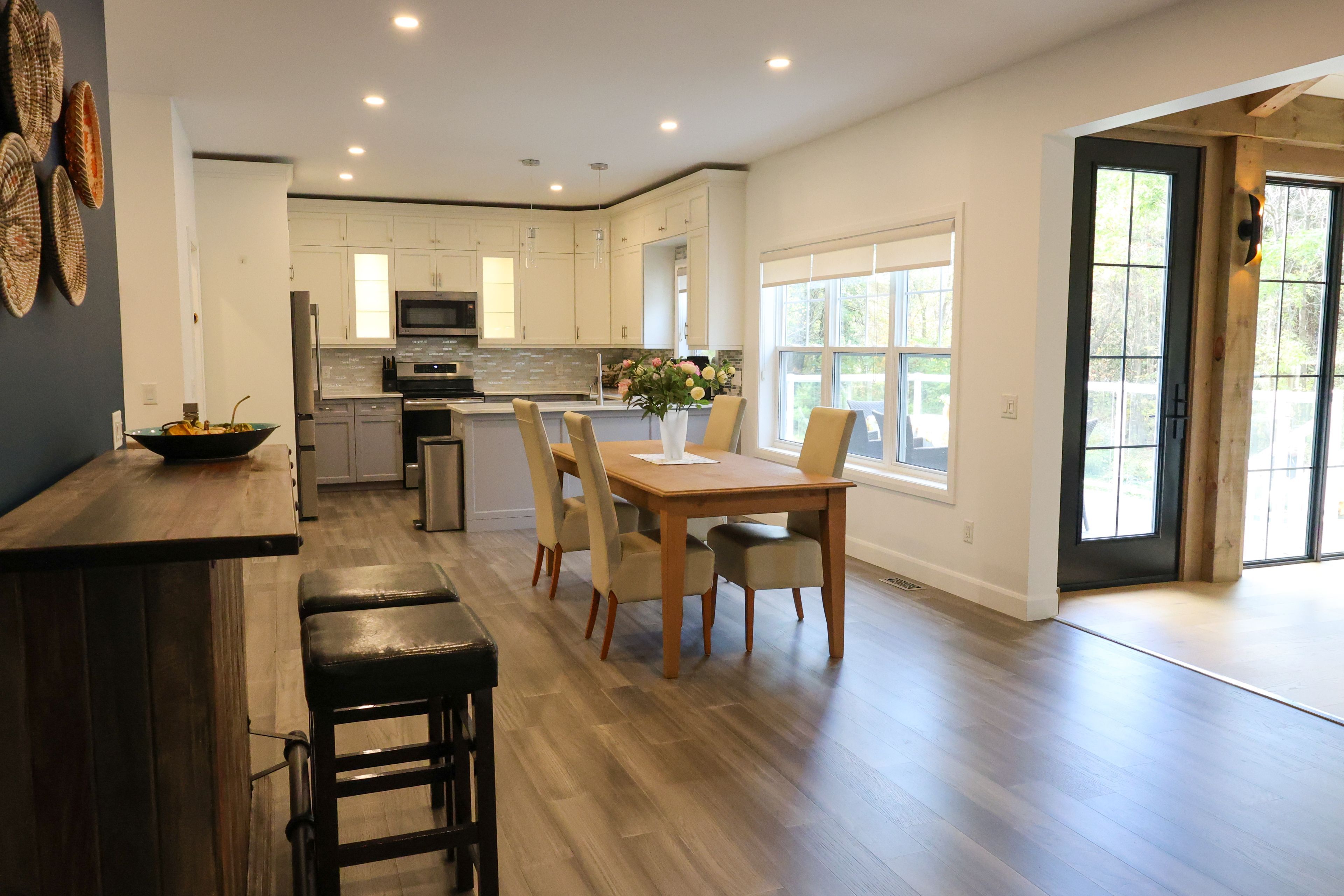 Located in the picturesque village of eugenia, this beautifully crafted bungalow offers the perfect blend of comfort, function, and location. With three bedrooms and three bathrooms spread over two levels, the home is ideal for families, weekenders, or those seeking a peaceful year-round retreat in one of grey county's most sought-after destinations. The main floor features two spacious bedrooms and two full bathrooms, including a bright, open-concept living space that invites both relaxation and entertaining. A cozy propane fireplace anchors the expansive open kitchen/ dining room which provides plenty of room to cook, gather, and enjoy meals together, perfect for hosting. Just off the kitchen/dining area is a stunning large living room with solid oak flooring which offers a beautiful space that can easily serve as a games area or home lounge. The walk-out basement, offers a third bedroom and another full bathroom perfect for guests or extended family. In-floor heating in both the basement and garage ensures year-round warmth and comfort. A large heated workshop with double doors in the basement provides the perfect space for tools, hobbies, or storage. There's also a cold storage room for preserving seasonal goods or wine. Outdoors, the home continues to impress. A concrete driveway and walkway add to the curb appeal and practicality, while the composite deck offers the ideal spot for outdoor dining or relaxing, complete with a propane barbecue hookup for easy grilling. From your doorstep, enjoy walking access to bothlake eugenia and the stunning eugenia falls. With beaver valley just a short drive away, the area offers endless opportunities for hiking, skiing, and exploring. This is more than a home, its a lifestyle. Whether you're seeking a full-time residence or a tranquil weekend escape, this eugenia bungalow delivers exceptional quality, comfort, and location in equal measure.