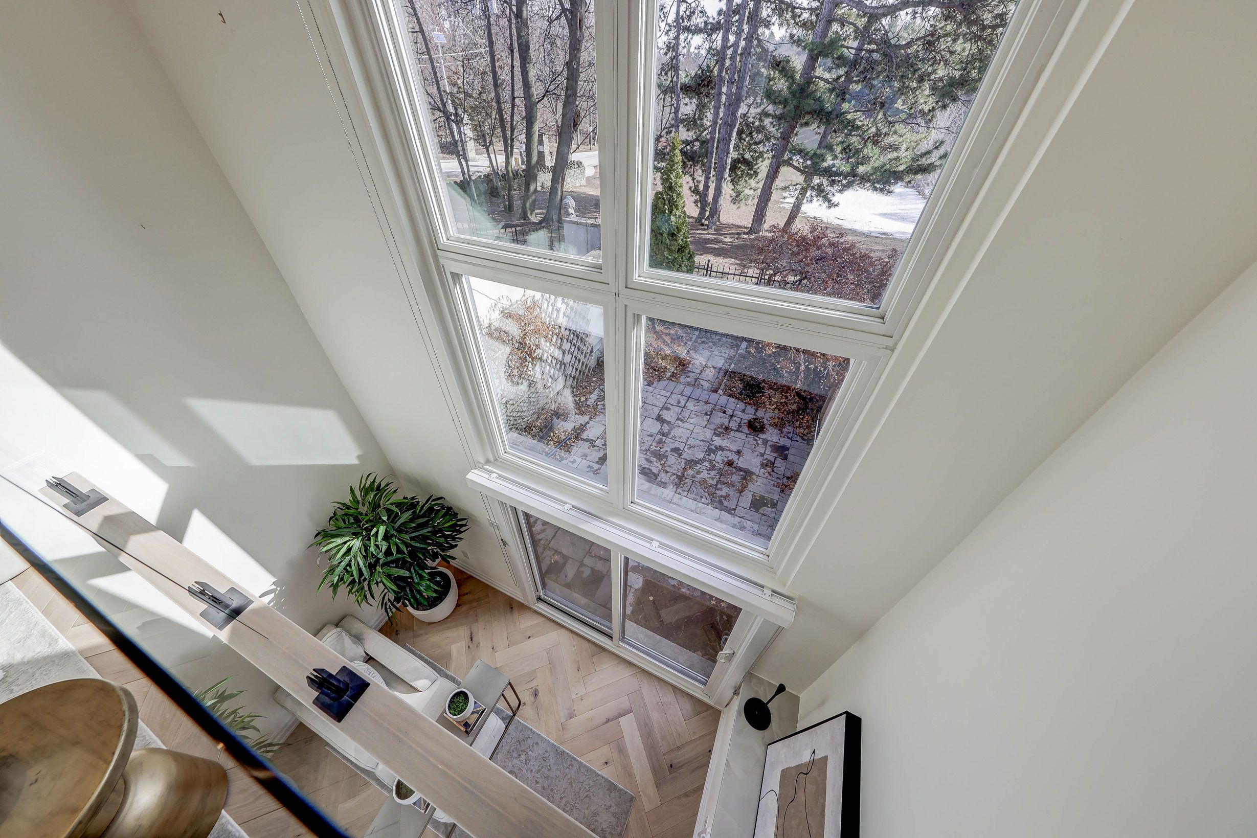 S-p-e-c-t-a-c-u-l-a-r views!! Two terraces & one patio all overlooking sherwood park. Truly "collingwood views" in the city! Rare find! Totally renovated, $$$ hundreds of thousands $$$ spent on upgrades throughout!!! Modern contemporary design with designer high quality finishes throughout! 2 +1 bedrooms (2nd bedroom is presently being used as a dressing room for primary - seller will convert back if buyer requests). Fabulous main floor with open-concept design, gorgeous hardwood wide plank flooring laid in superior herringbone pattern, kitchen features gorgeous porcelain counters and backsplash, upgraded cafe series appliances, custom cabinetry. Dining room features wall to wall custom storage cabinets. Living room overlooks ground level family room and amazing view of sherwood park with mature trees... Breath-taking view! **seller extended main floor - adding square footage** primary is a private suite with 5 pc spa-inspired bathroom, custom cabinetry in 2nd bedroom serves as a custom dressing room, walk up to private terrace overlooking amazing treetops and grounds. Ground level features large family room with gas fireplace and amazing custom feature wall - beautiful porcelain and stunning mantle, perfect office / exercise area, well thought out laundry area, 3rd bedroom is great. Heated floors in ground family room (not open-concept office) and 3 pc bathroom and ground bedroom. Direct interior walk down to underground very secured parking and locker... Locker is a walk-in room! Amazing storage space! Well designed living in safe well managed complex... Enjoy direct access to park and outdoor pool!!! Very private oasis! *other on upper floor is the 2nd outdoor terrace* aaa+ location offers fabulous living; sherwood park, walk to shops, restaurants, grocery stores, summerhill market, yonge st, walking trails, lrt. Great schools: blythwood ps, north toronto, tfs. Mins to sunnybrook hospital.