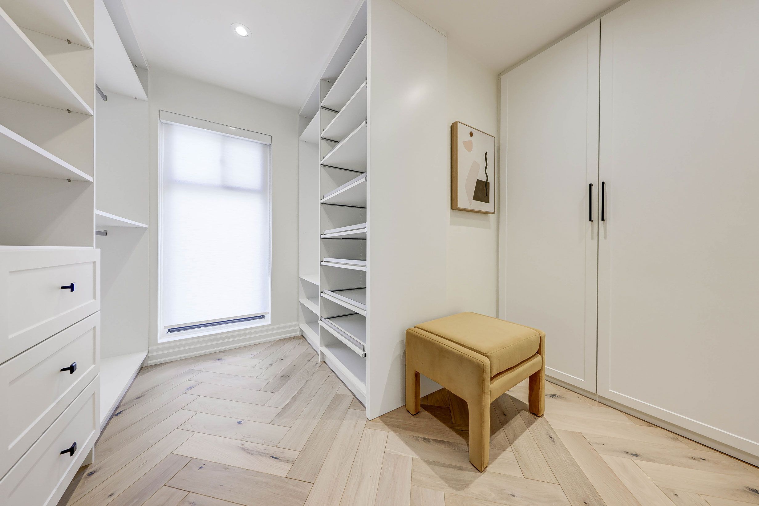 • Open-concept main floor with stunning herringbone hardwood flooring.