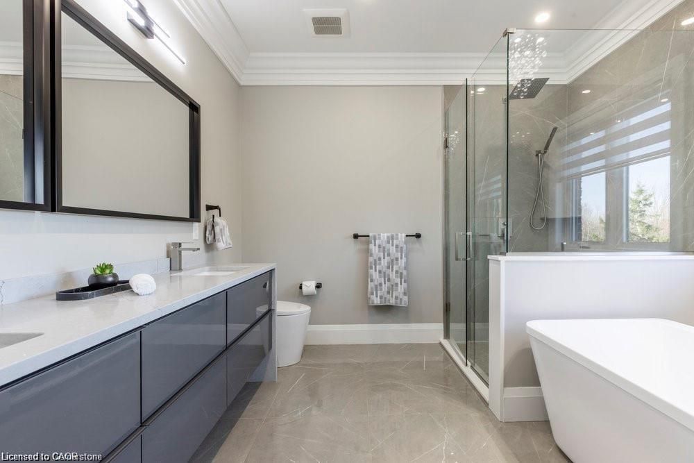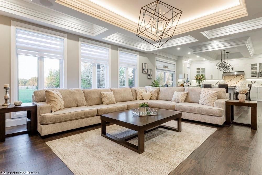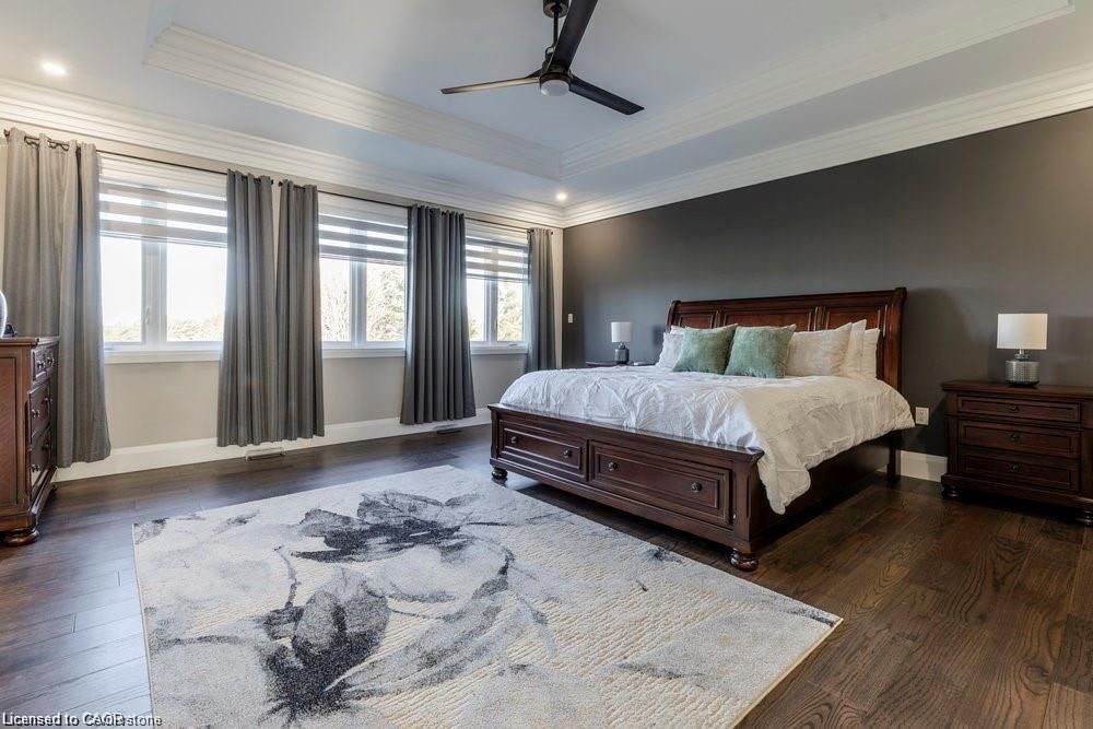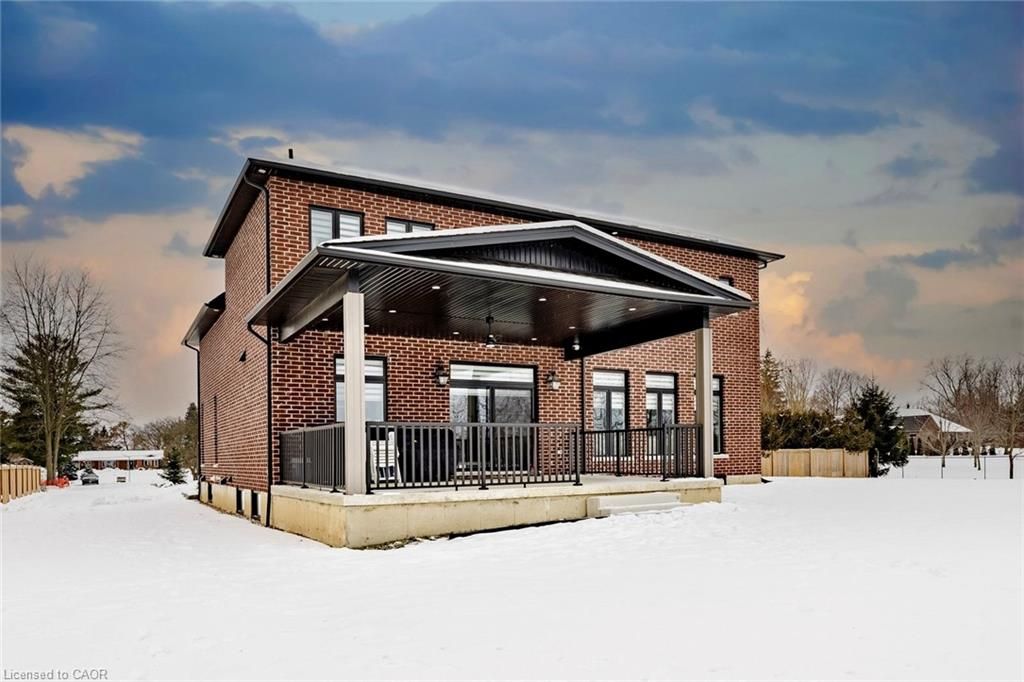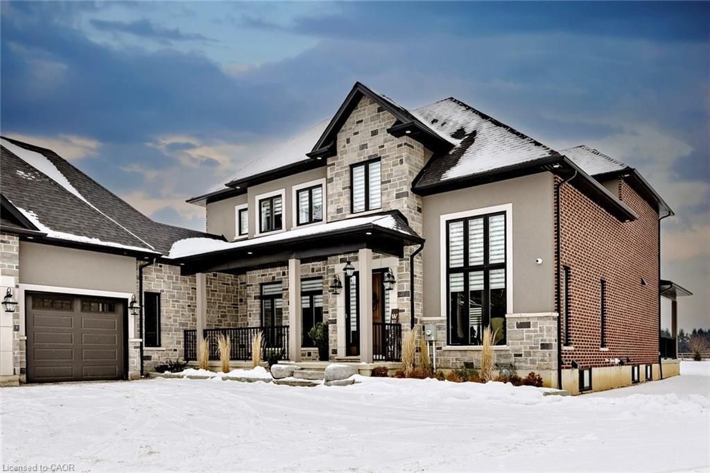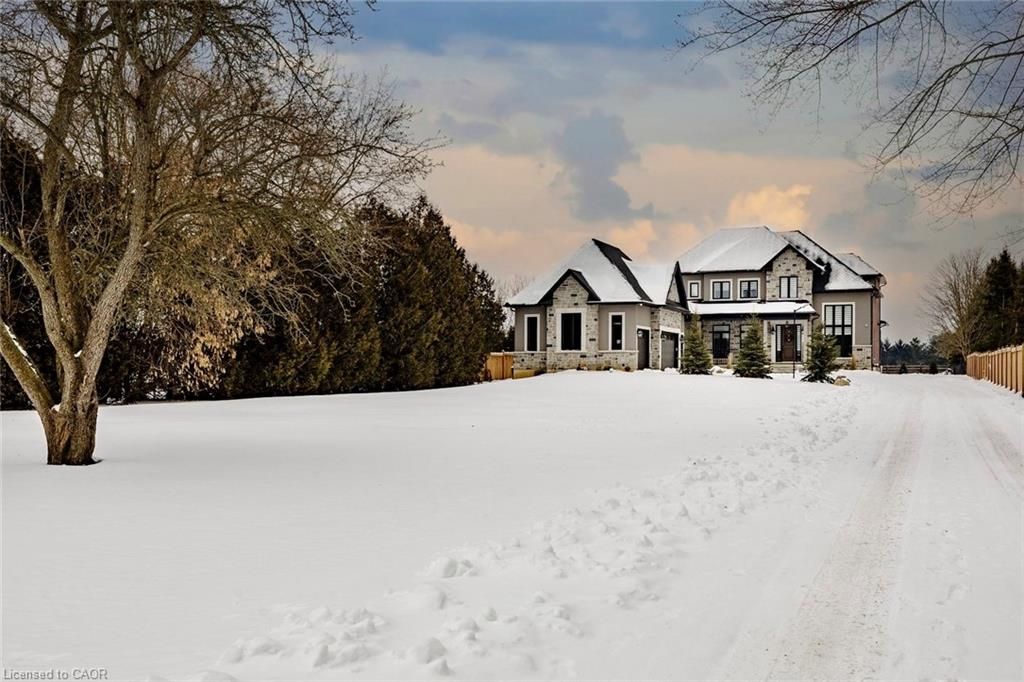 Enjoy refined country living in this custom-built 2-storey home, privately set 350' from the road on nearly 2 acres with sweeping pastoral views. Stunning custom build (2022) w/ nearly 5,500 sq. Ft. Of exquisite living space which includes the finished basement with in-law potential. A grand foyer with 20' ceilings introduces the quality and craftsmanship throughout. The chef's kitchen features quartz counters and backsplash, premium appliances, an 8-burner gas range, cappuccino bar, and walk-in butler's pantry, opening to a stunning great room with coffered ceilings, hardwood floors, gas fireplace, and built-in sound. Entertain with ease indoors or out on the expansive covered deck. Upstairs offers 9' ceilings, a serene primary suite with spa-inspired ensuite, a second bedroom with private bath, and two more bedrooms sharing a jack & jill. The finished lower level adds a large rec room (rough-in for kitchen/wet bar), gym, storage, and two additional bedrooms-each with its own bath-ideal for in-law or multi-generational living. Enjoy 5 full bathrooms + 2 pce powder room ( extras include a 4. 5-car garage with inside entry, a well-designed mudroom and laundry, and mostly fenced backyard ready for your dream oasis. A perfect blend of privacy, space, and versatility. A rare blend of space, sophistication, and versatility-your private country retreat awaits.