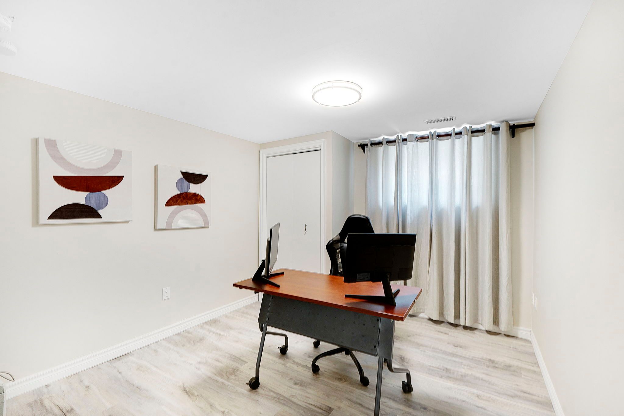 • Lower level offers flexible spaces, including a family room and office.