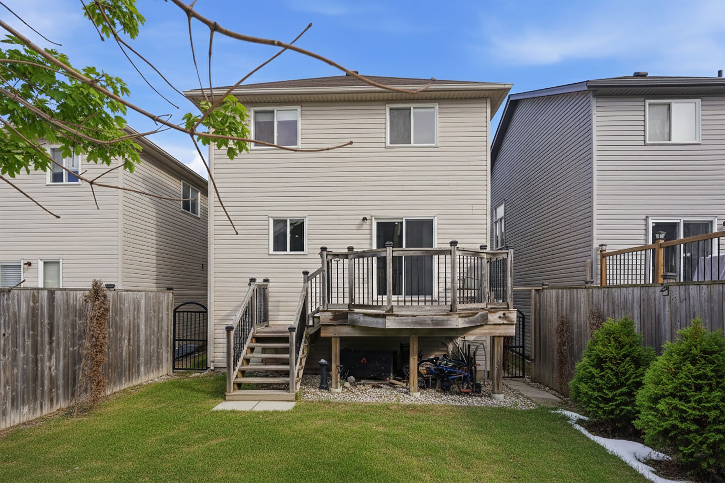 Welcome to 187 woodbine avenue, kitchener, an exceptional home nestled in the heart of the highly sought-after huron village community. Step inside the open-concept layout enhanced by soaring ceilings in the living room. Freshly painted throughout and enhanced with brand-new pot lights, this home radiates move-in-ready appeal. The spacious kitchen is offering abundant prep space, a functional island ideal for entertaining. A convenient powder room completes the main level. Upstairs, there are 4 generously sized bedrooms and 2 full bathrooms. The primary suite is thoughtfully designed with a luxurious ensuite bathroom and a walk-in closet. The fully finished basement expands your living space even further, featuring a large recreation room ideal for movie nights, a games area or a home gym. There is also unfinished space ready to be customized to suit your needs whether it's a workshop, additional bedroom or creative studio. The massive crawl space provides incredible storage capacity. Step outside through the sliding doors onto the finished deck. Perfect for year-round bbqs, summer gatherings, evening relaxation and hosting unforgettable celebrations, this backyard space is ready to create lasting memories. Located in the desirable huron village area, this home offers unmatched convenience. Enjoy quick access to highway 401, top-rated schools, parks, trails, shopping plazas, grocery stores, restaurants, public transit and community recreational facilities. Additional highlights: walkable distance to jean steckle public school and rbj schlegel park. Features a unique floor plan. This is the winterbourne model by eastforest homes, known for its distinctive and efficient layout. City permit approved for a legal duplex, providing outstanding future potential for rental income, multigenerational living or investment flexibility. With impressive layout, generous living space and unbeatable location, it's the place where your next chapter begins. Book your showing today!
