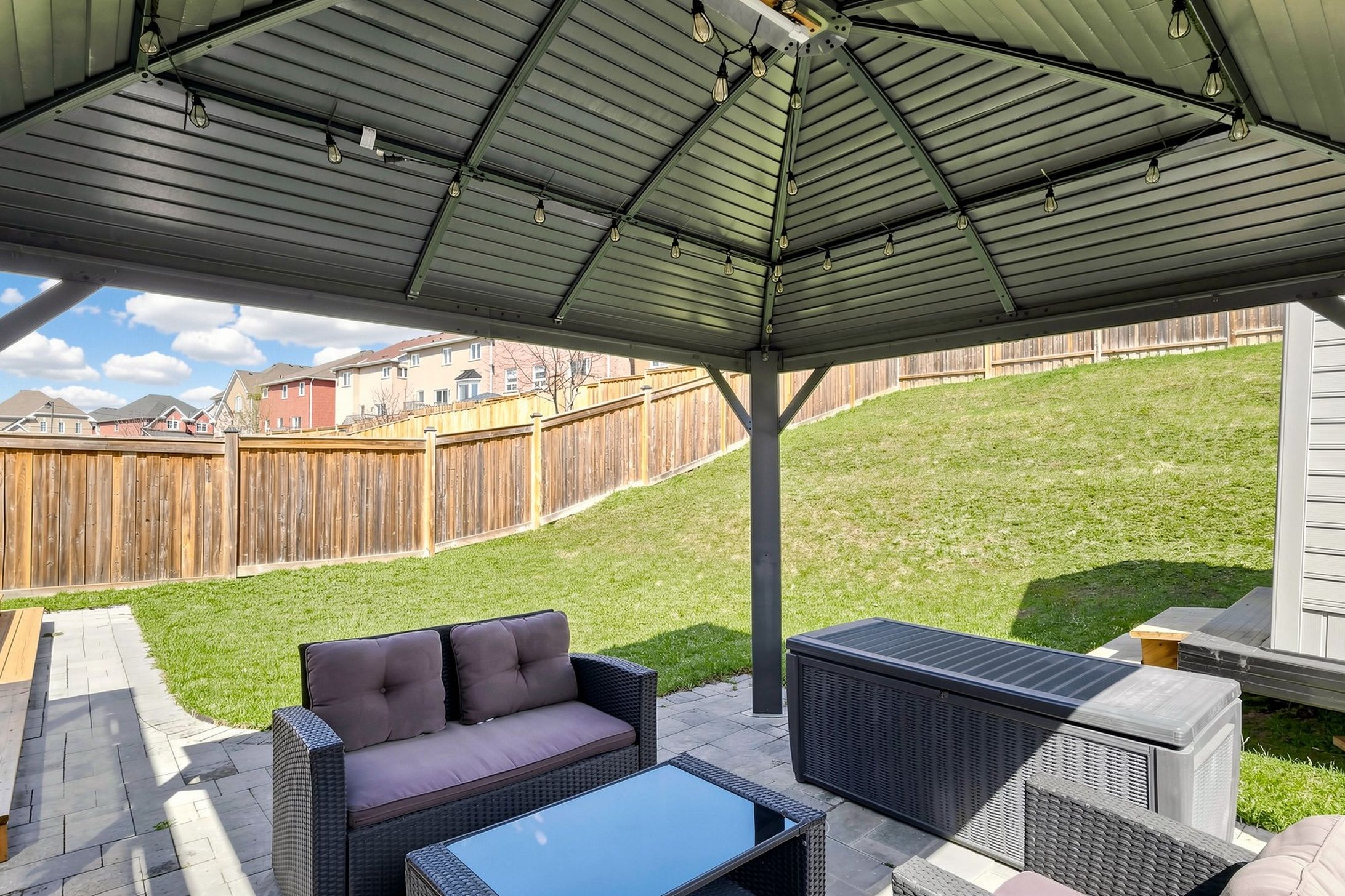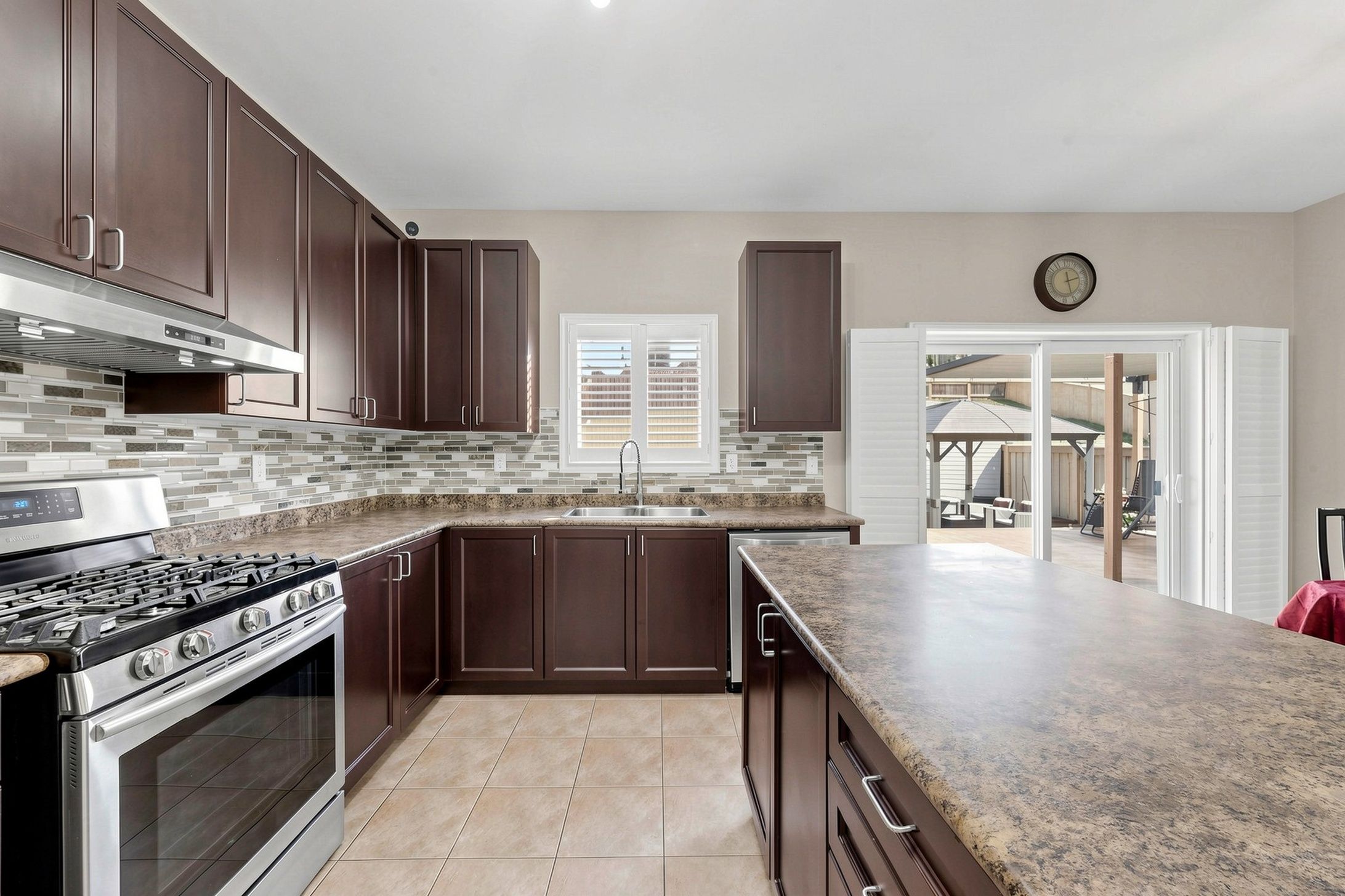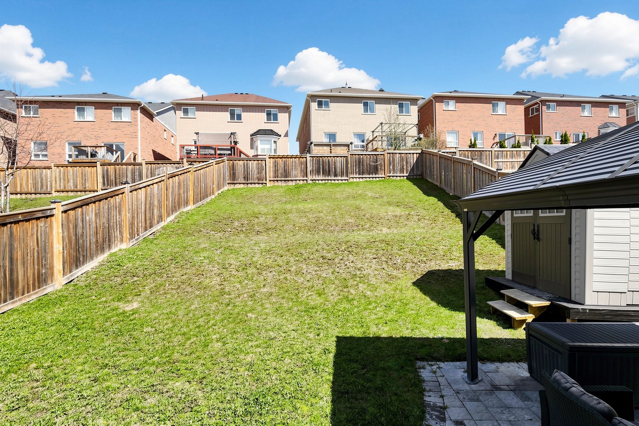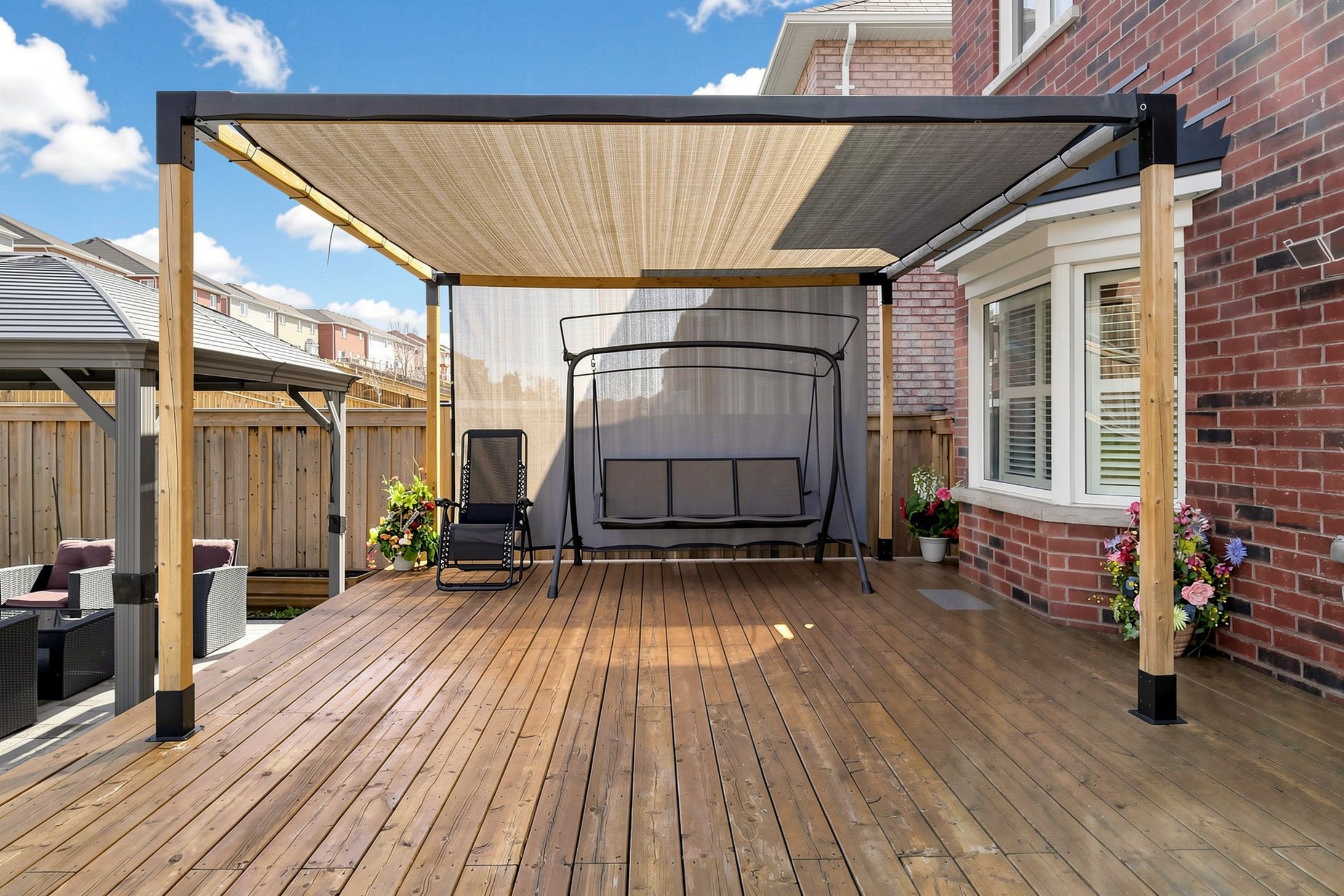 • Landscaped backyard with large deck, gazebo, and patio for outdoor gatherings.