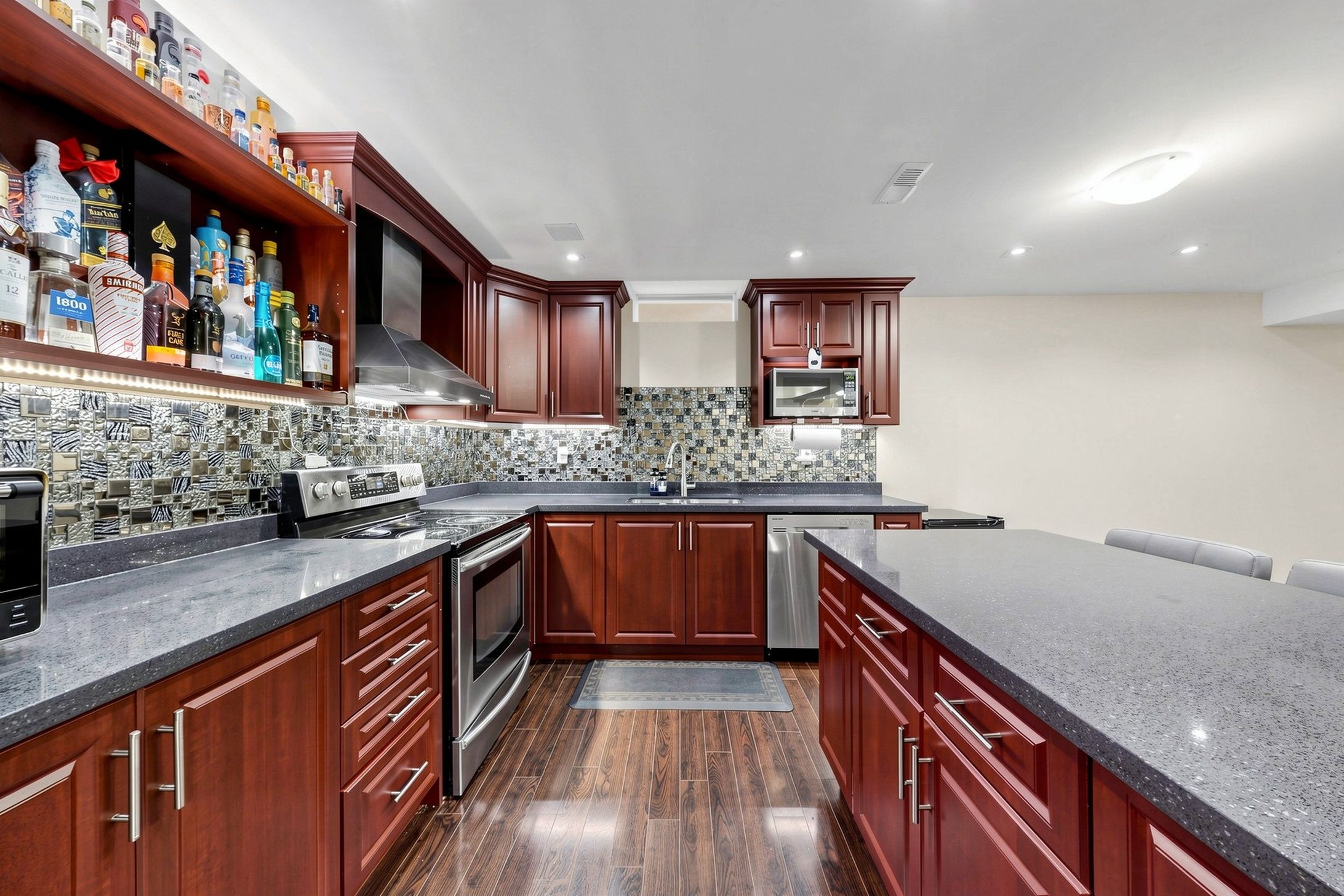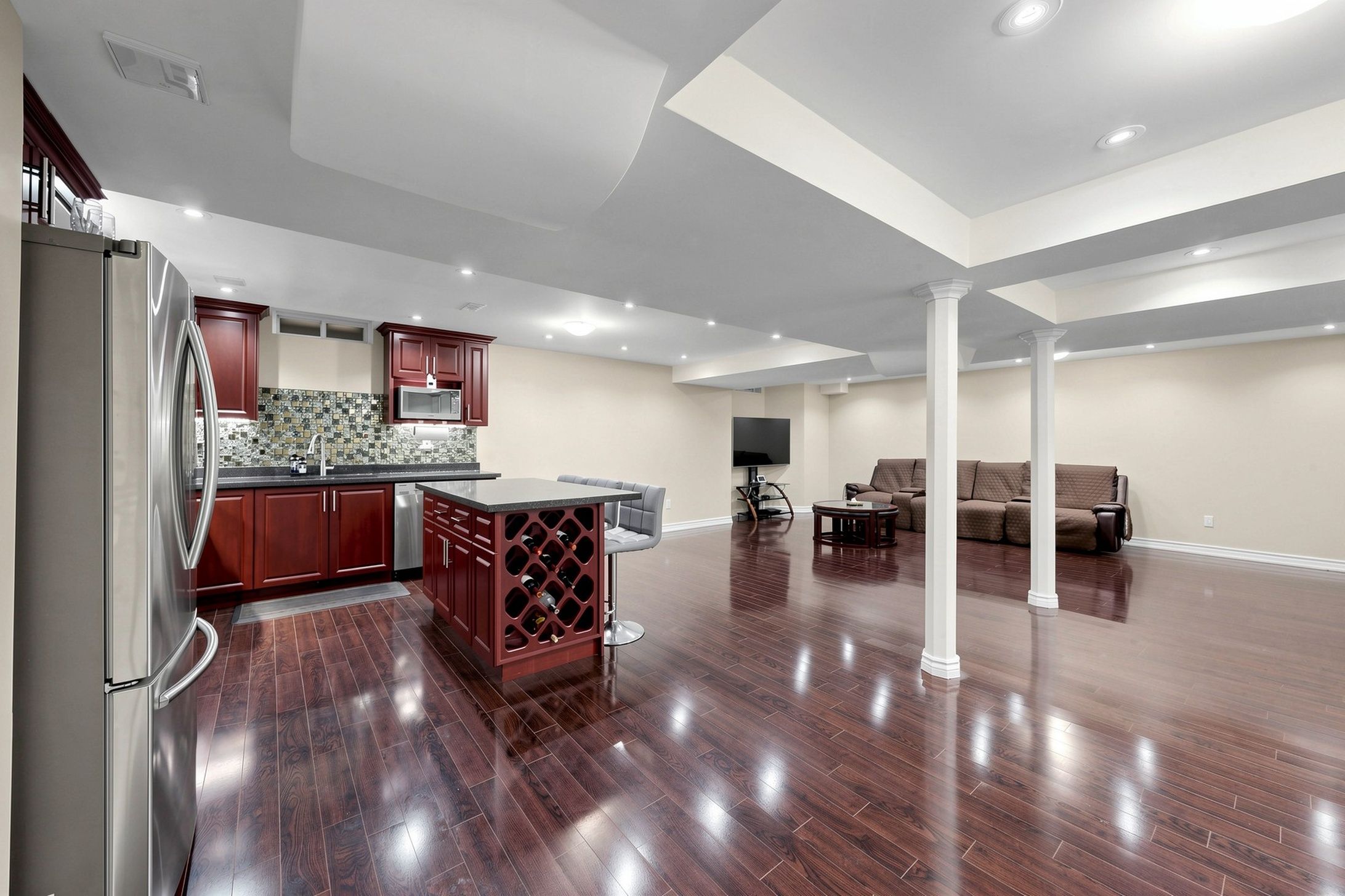• Renovated basement with 2 bedrooms, full kitchen, and entertaining space.