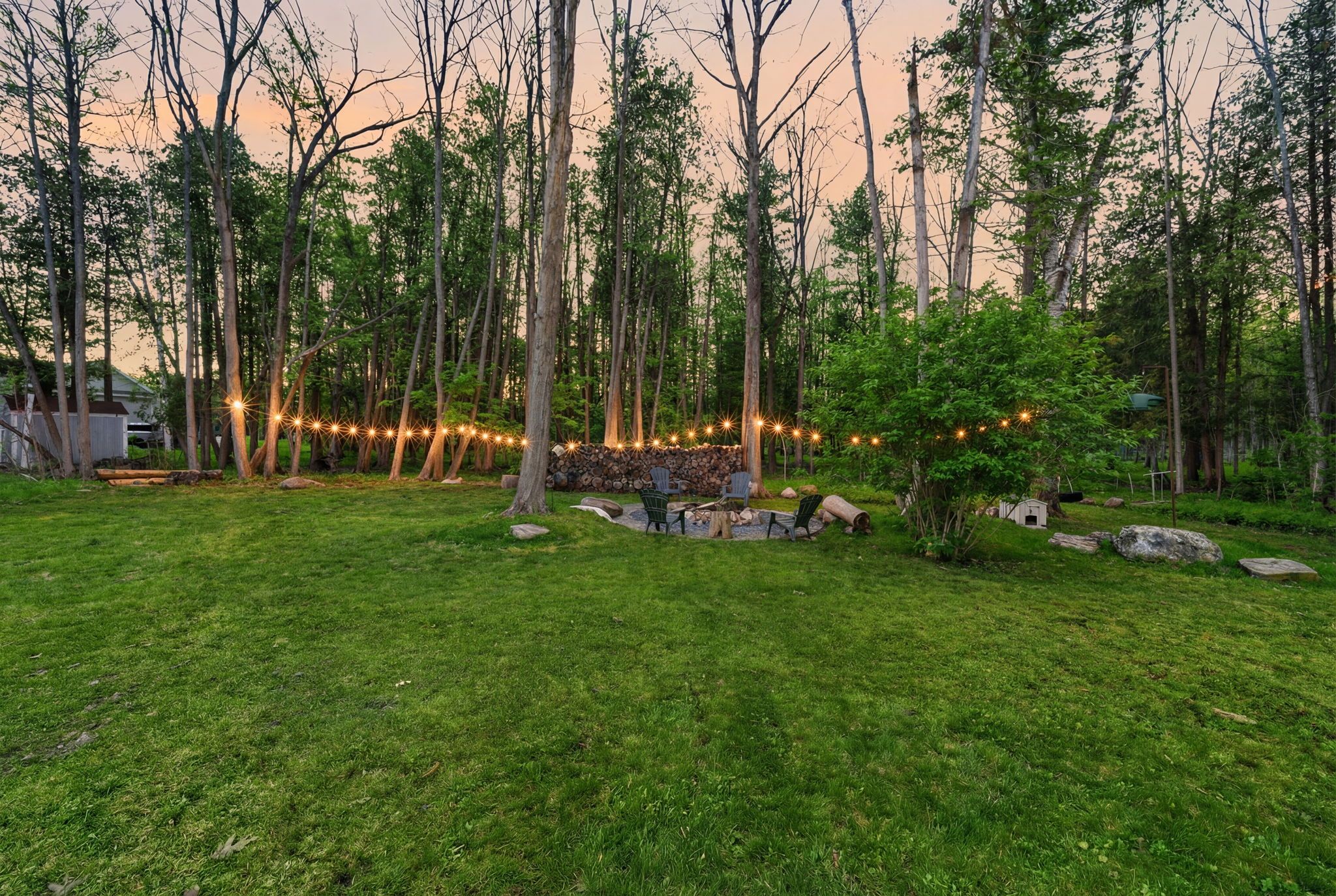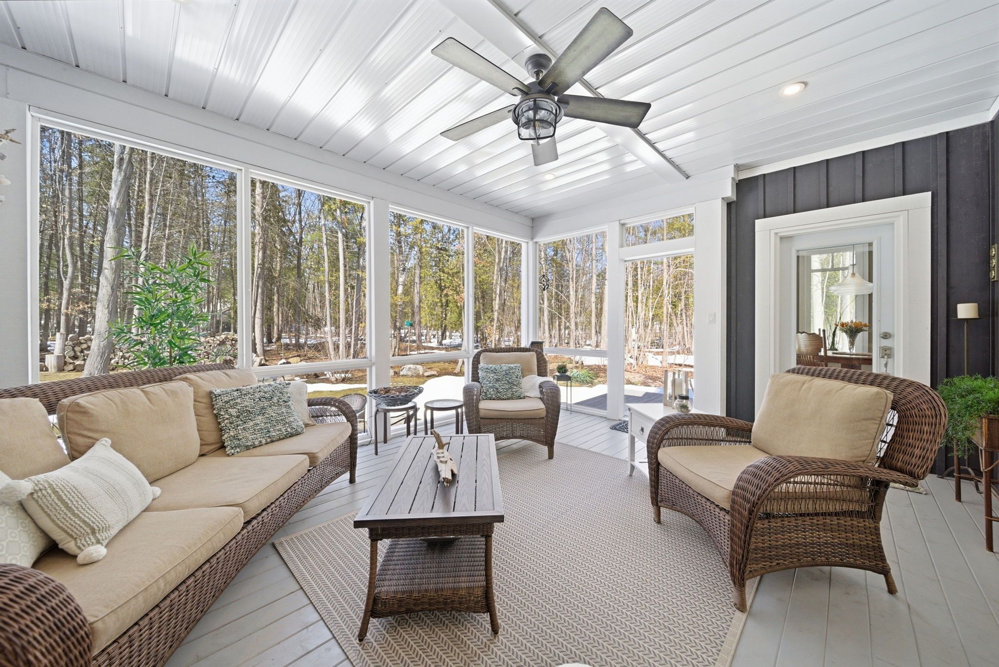 • Over half-acre lot with beautiful gardens, fire pit, and screened porch.