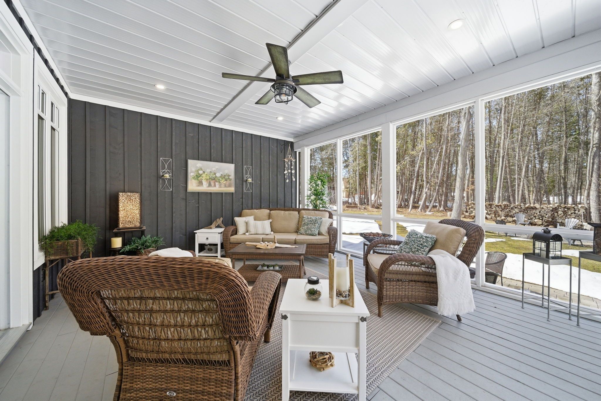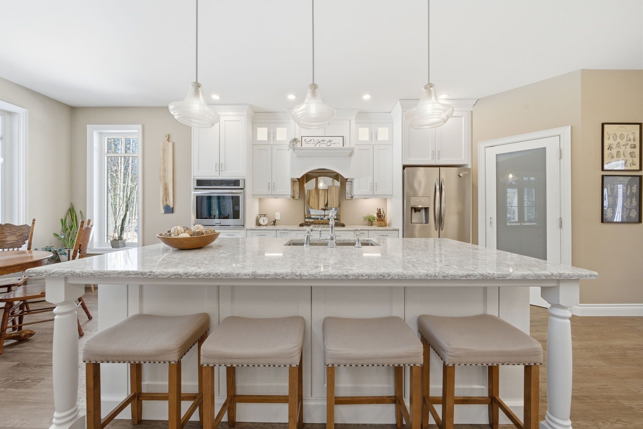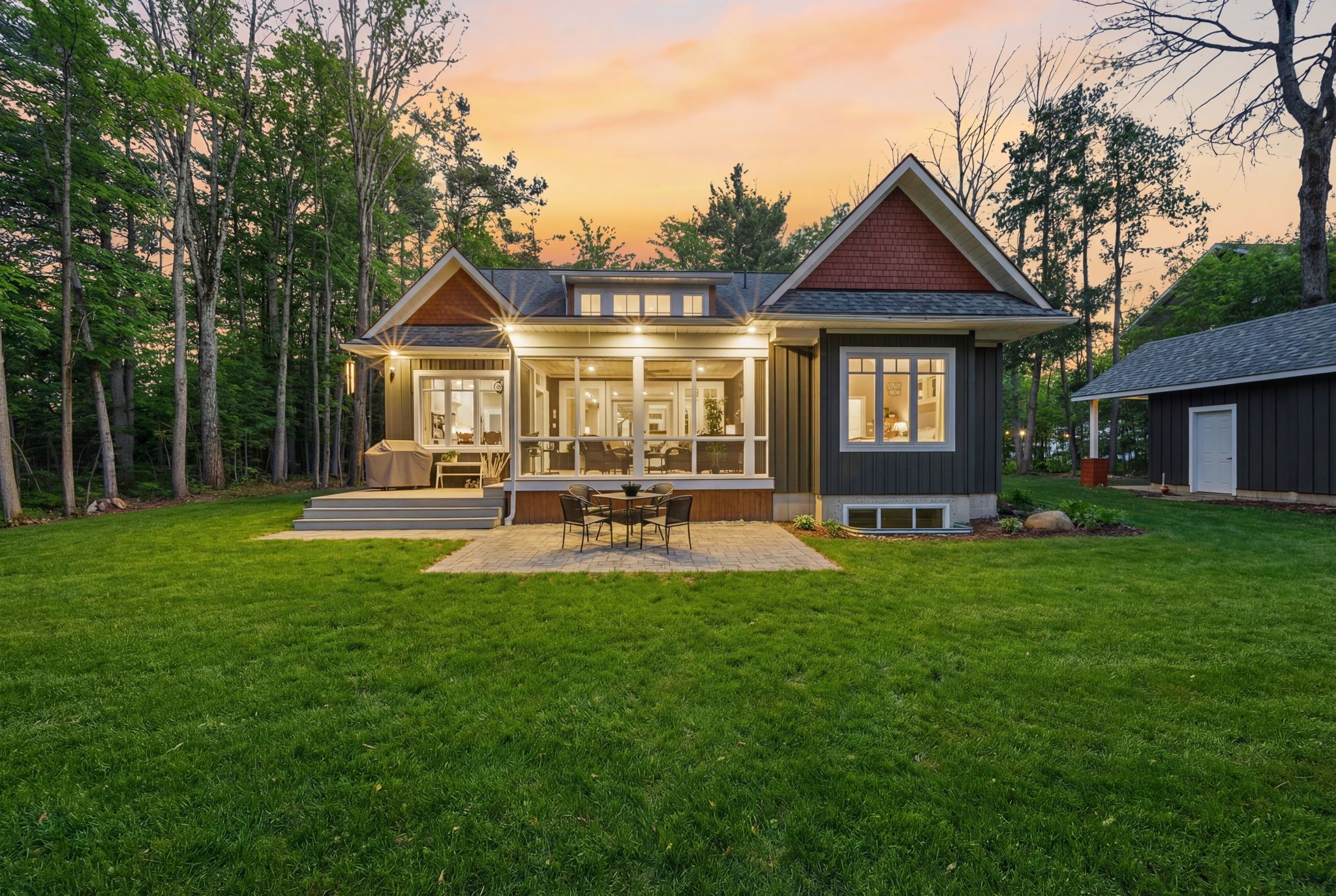 Walk through these doors and it just feels like home. With its unique curb appeal 1872 marchmont rd is a custom build like no other. Family and guests will be in awe of this spectacular great room with 18 foot ceilings and oversized windows allowing in so much natural light. This is your dream kitchen with gorgeous stone counters, an entertainers island and walk in pantry. There is a place for everything in this well thought out space. A breakfast nook that brings sunshine and light and a formal dining room for dinner parties and family gatherings. Main floor spacious primary bedroom with luxury ensuite and 13 foot ceilings. Kids or guests get their own wing with large walk in closets, washroom and oversized rooms. A large custom mudroom with side entrance or garage entry for all the things you want to tuck away. The basement is yours to design but the custom laundry room and washroom has already been taken care of. Garage entry stairs to the basement for in-law potential or teens. For those who love to putter or create a detached drive through 15' x 30' shop is the perfect spot. This over half acre treed sanctuary has gorgeous low maintenance perennial gardens, fire pit and you will watch the wild life from many quaint spots. Rock the night away on your front porch with custom pillars and hardie board siding or spend lazy days in your screened in porch reading, relaxing or morning coffees with a breeze. This gorgeous spot is nestled in the heart of one of the most sought-after neighborhoods of marchmont. One of the best country schools is a bike ride away, 10 minutes from shopping in orillia and the gateway to muskoka, lakes, ski, golf and outdoor activities.