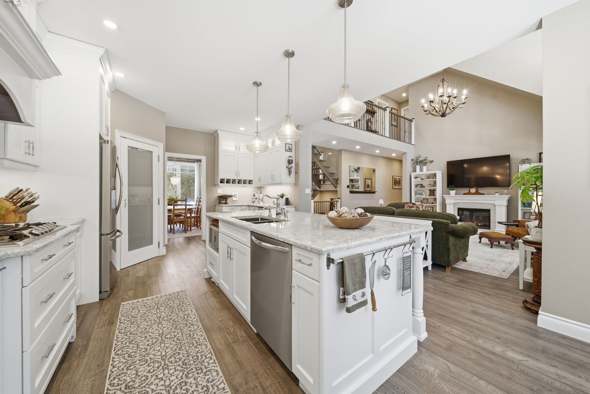 • Dream kitchen features stone counters, island, and walk-in pantry.