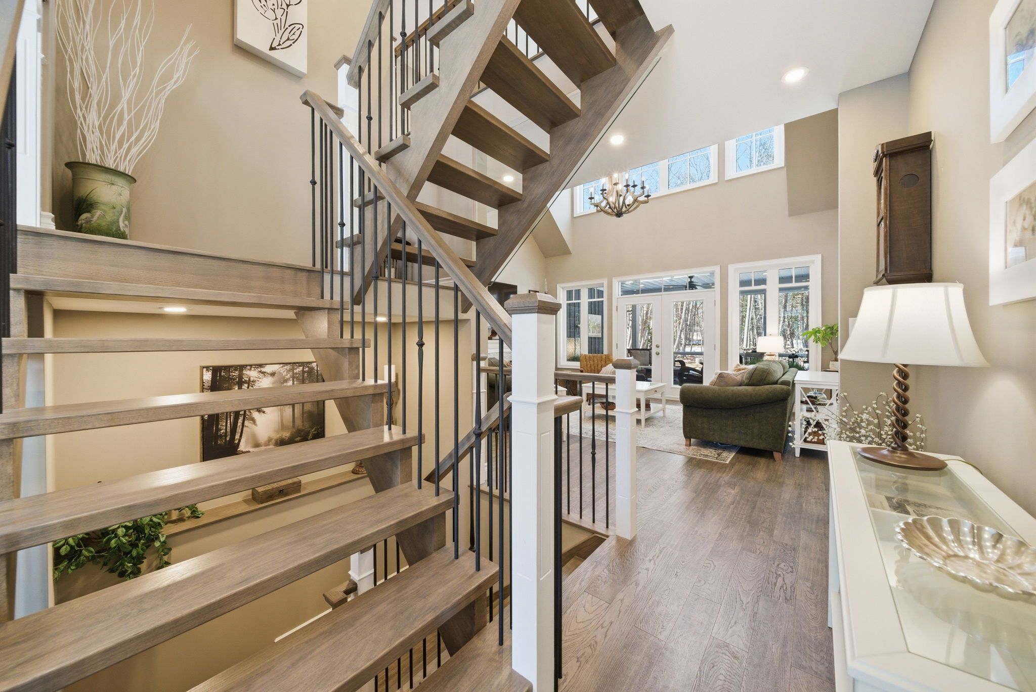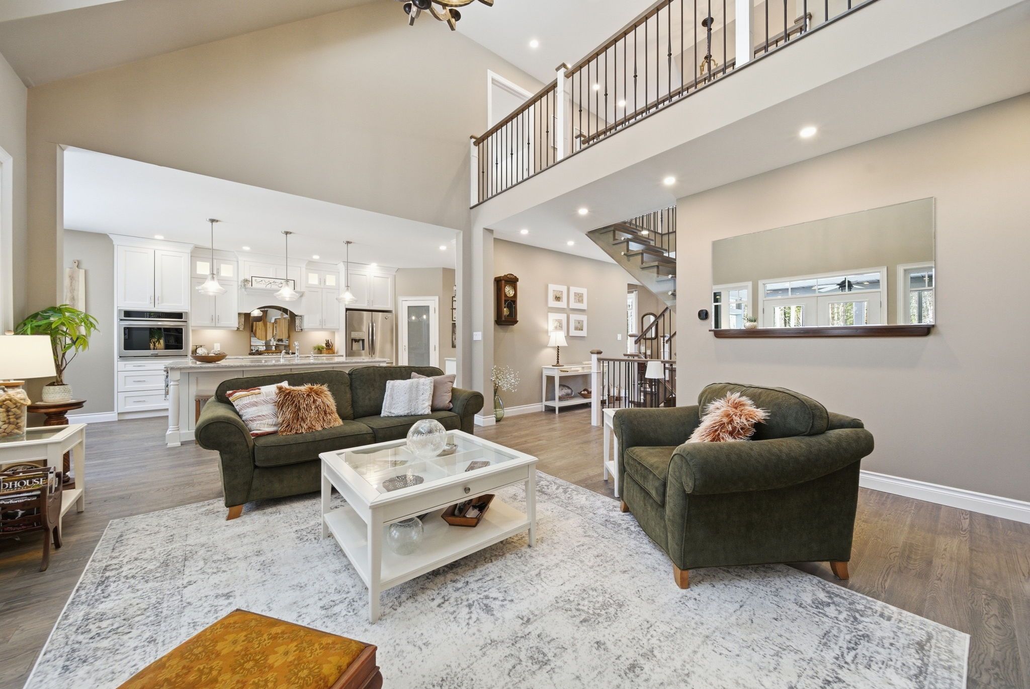 • Spacious great room with 18-foot ceilings and abundant natural light.