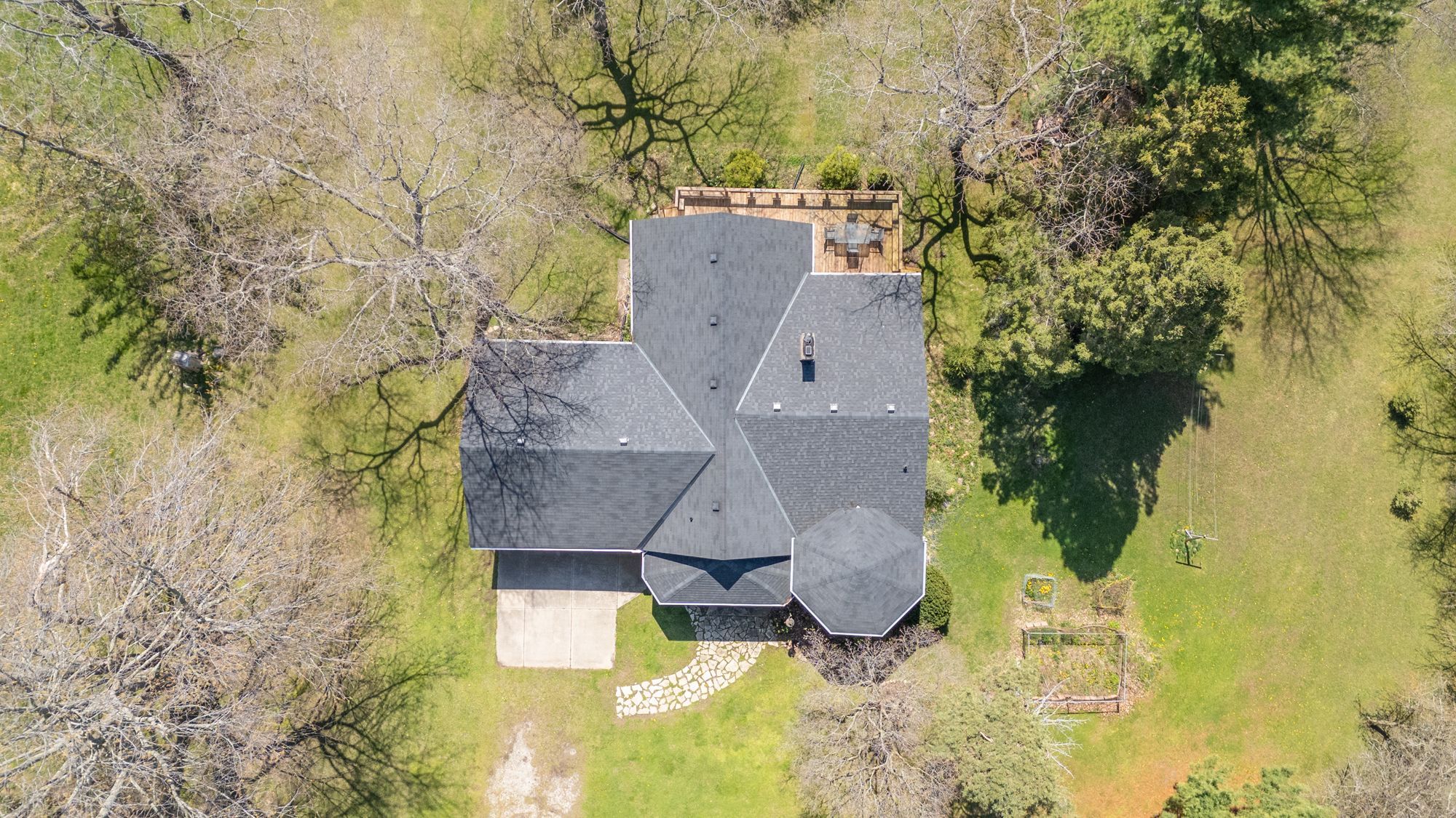 • Outdoor space features a private pond and mature fruit trees.
