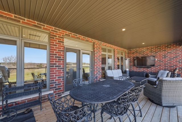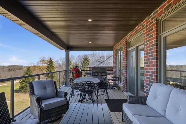 • Covered upper deck with BBQ gas line, TV hookup, and included furniture.