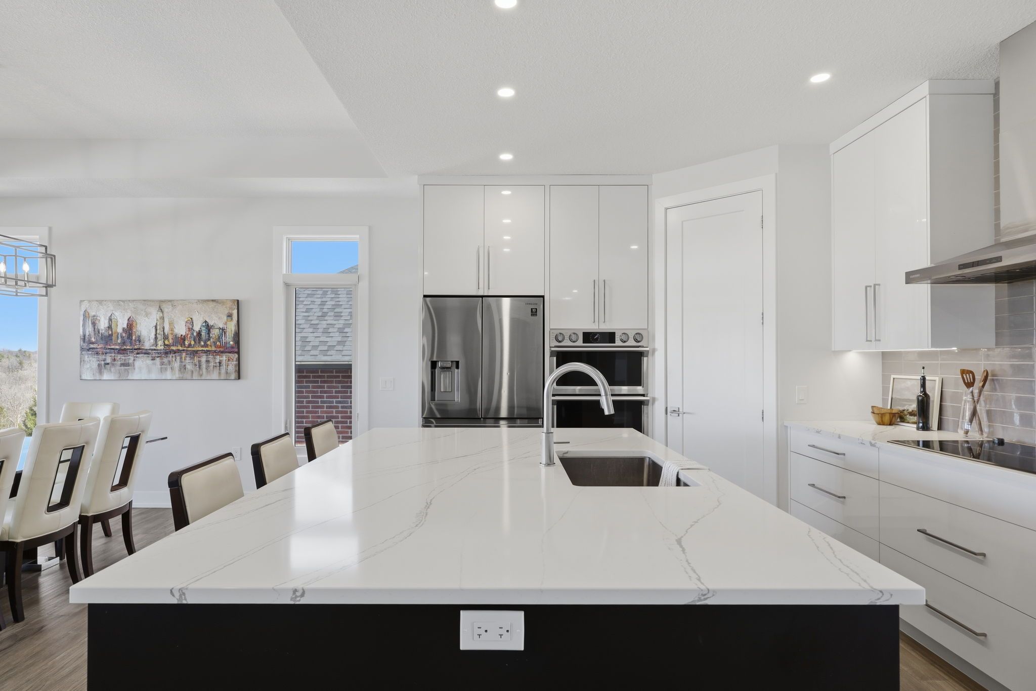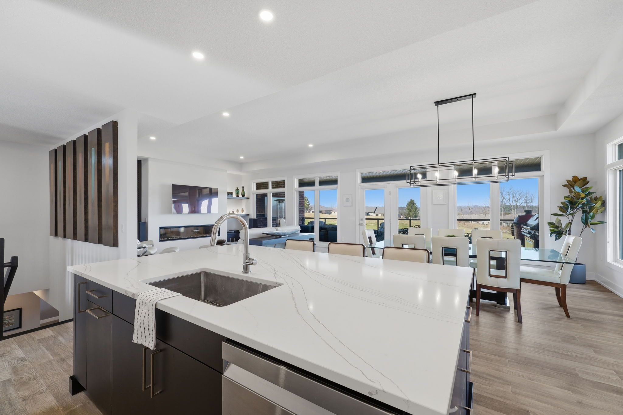 Welcome to life inside the prestigious, gated river bend golf community - one of the most sought-after pockets in the city. Known for its quiet streets, manicured surroundings, and unmatched golf course lifestyle, this is where people come for the views and stay for the lifestyle. Tucked away on a quiet dead-end street, 1873 sandy somerville lane offers a rare walkout design backing directly onto the course, with seamless indoor-outdoor living and stunning views from both levels. The great room is surrounded by expansive windows that flood the space with natural light and capture the course from every angle. The main level features a chef's kitchen, dedicated office, hardwood flooring, and high-end, sleek finishes throughout. Step out onto the covered upper deck - complete with glass railings, tv hookup, bbq gas line, and all outdoor furniture included - creating the perfect space to relax or entertain above the fairways. The primary suite enjoys incredible views from bed along with a beautifully appointed ensuite, while a guest bedroom with its own ensuite completes the main level. The fully finished walkout lower level features 9ft ceilings, two additional bedrooms, a 4-piece bath, spacious rec area, and direct access to the covered patio with outdoor kitchen and included furniture - ideal for entertaining or a little friendly heckling as golfers pass by. Loaded with upgrades and inclusions. Detailed list available upon request