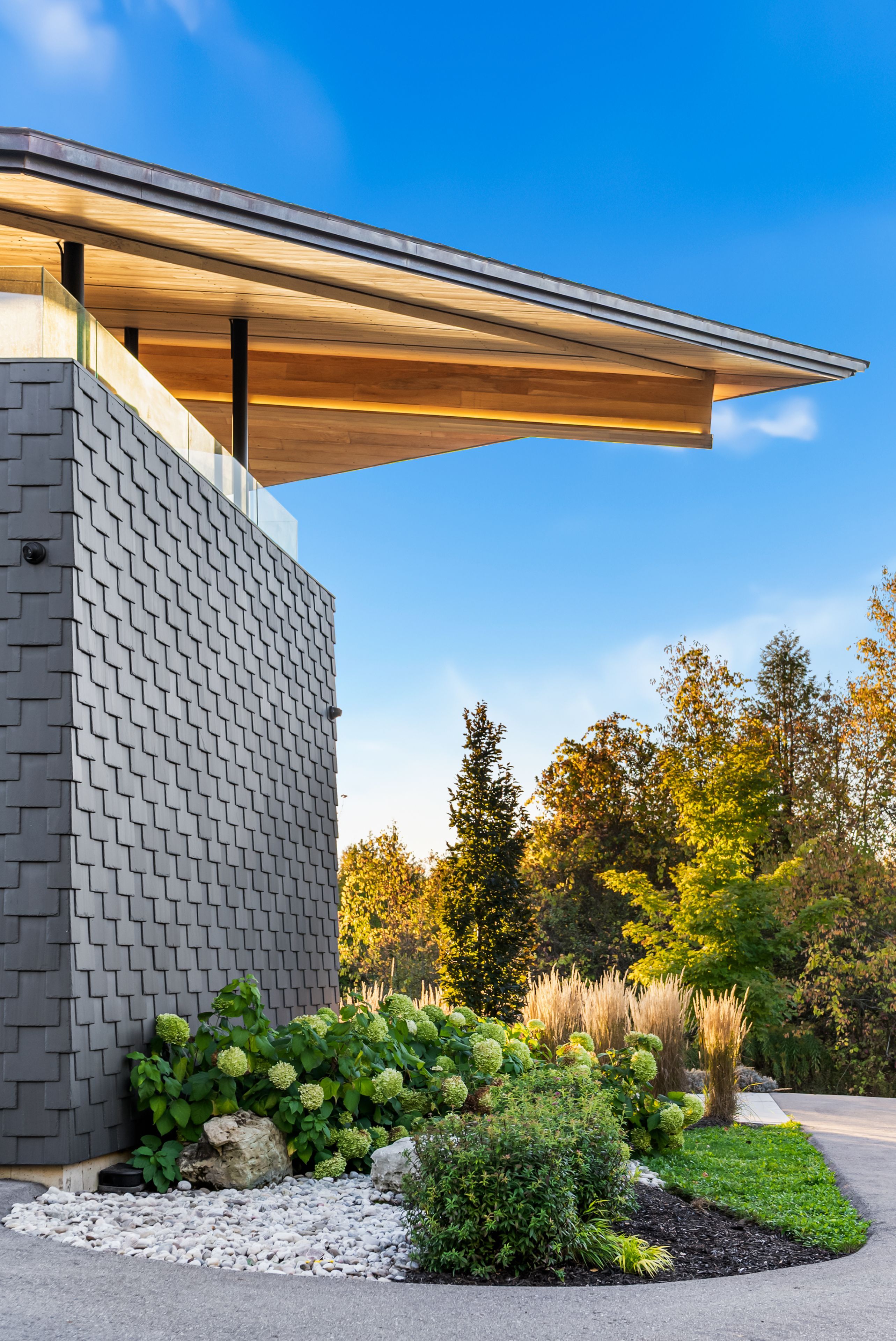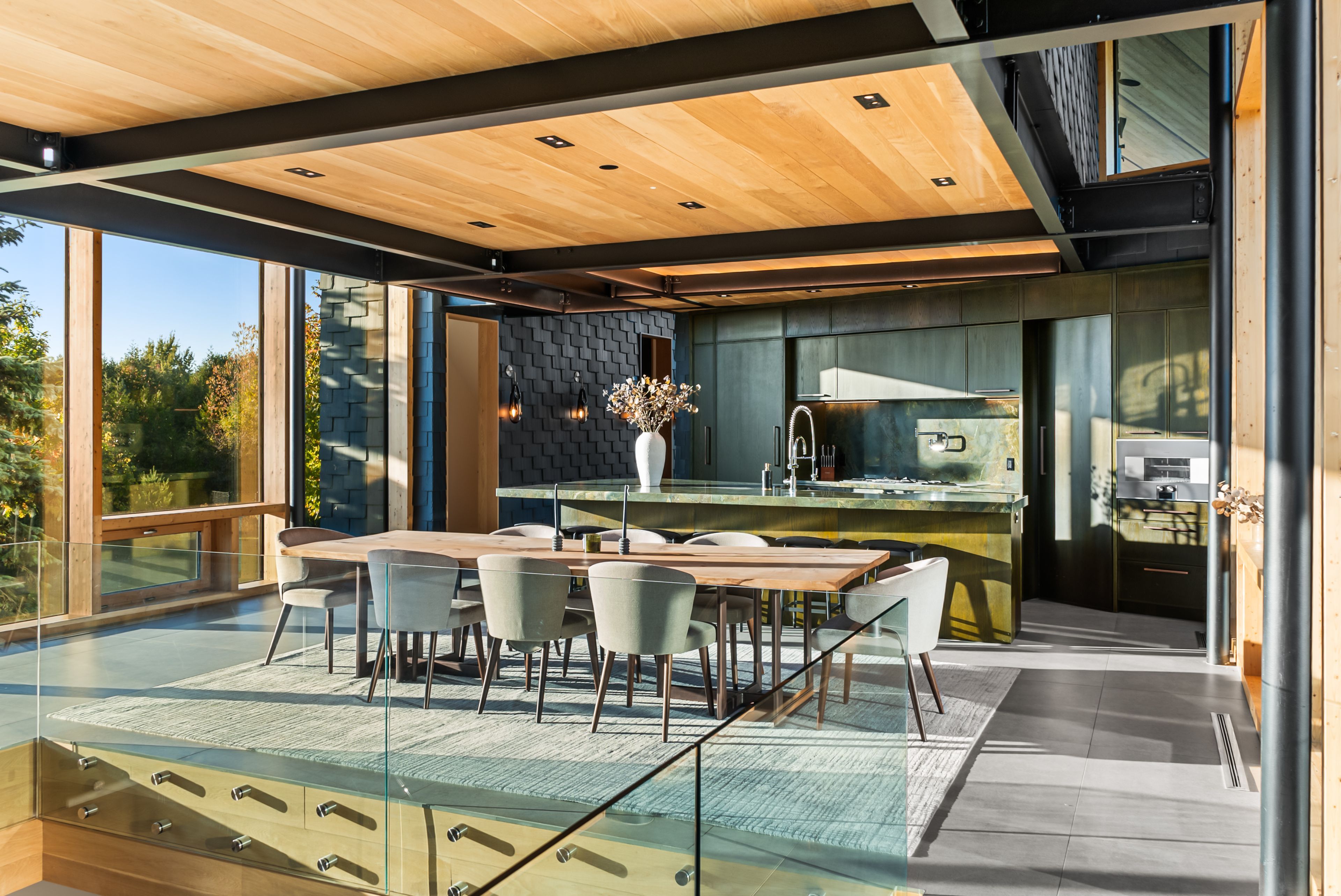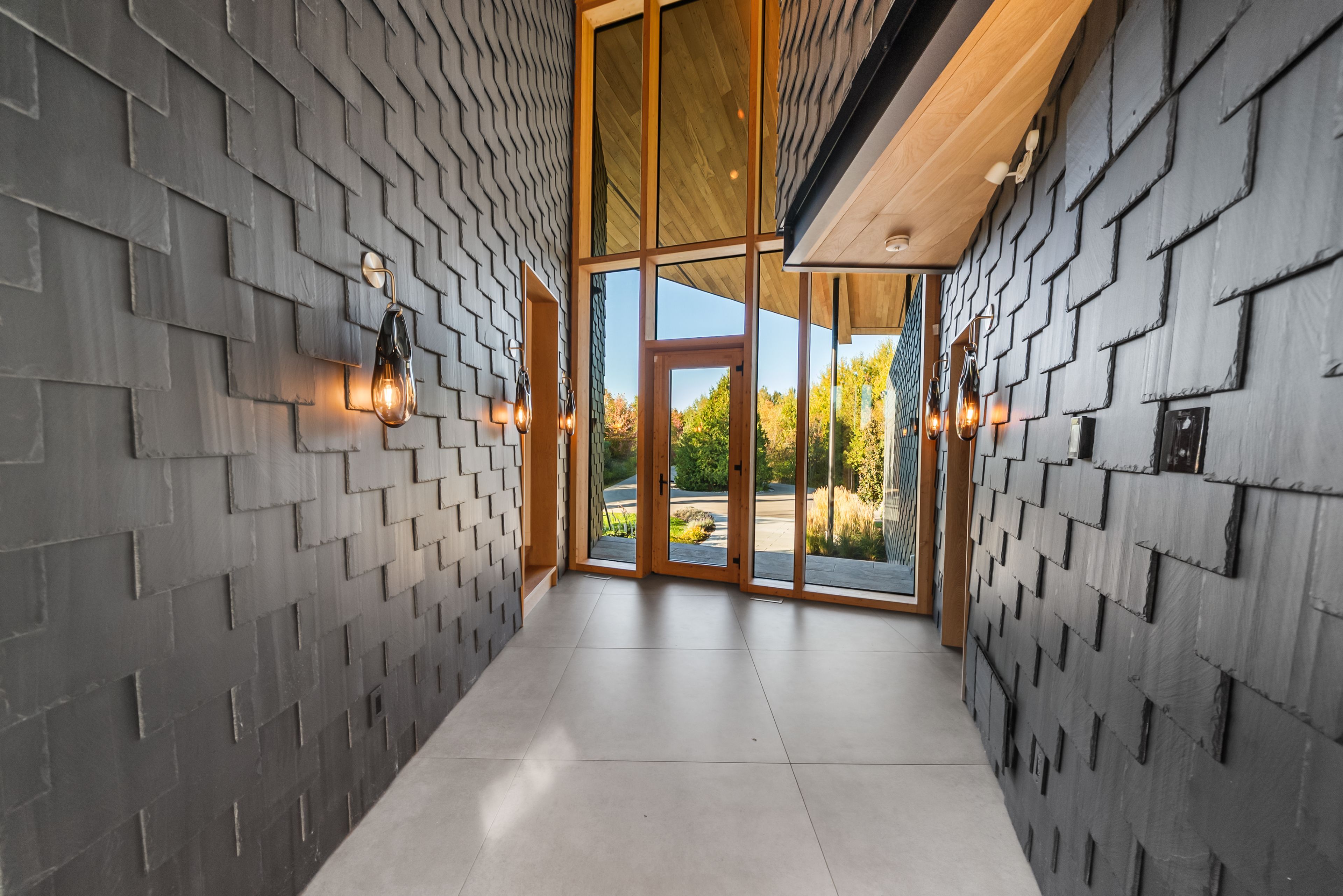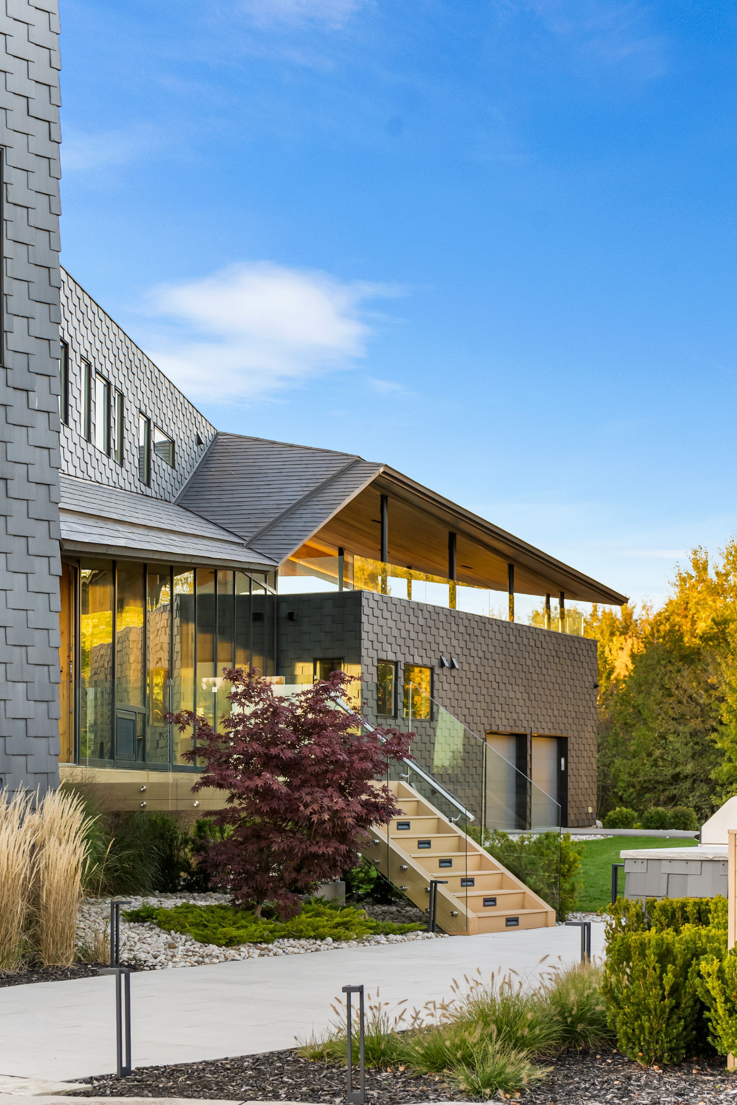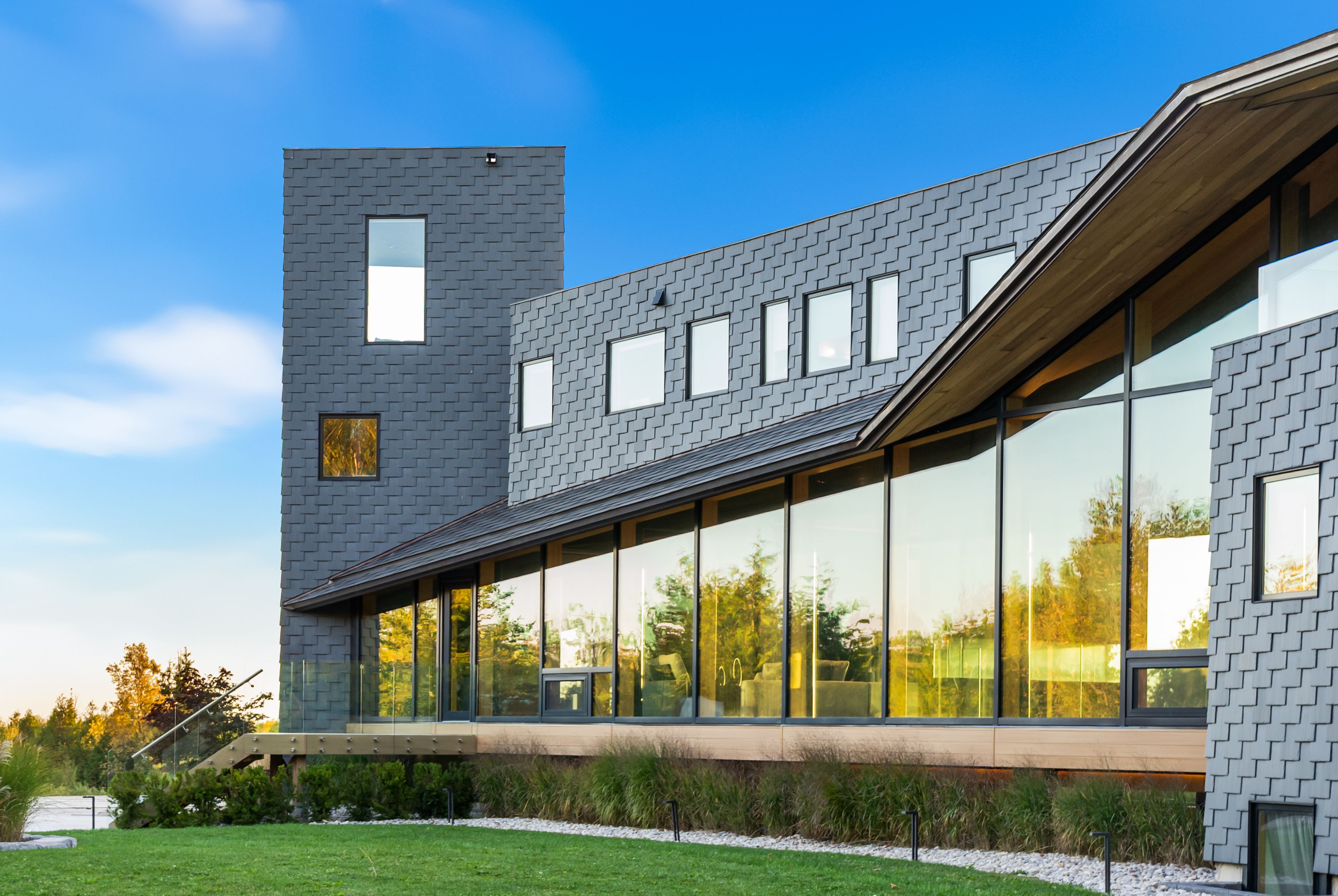 A jaw-dropping architectural statement in the heart of caledon! This one-of-a-kind residence blends world-class design, natural beauty & uncompromising craftsmanship across 10,300 square feet of living space. Designed by kariouk architects w/interiors curated by the renowned karin bohn, the home has been celebrated in films, fashion shoots, & multiple design awards, standing as a true icon of modern architecture in ontario. The exterior showcases a copper roof & natural slate stone siding wrapping both the façade & select interior feature walls-materials chosen for their rarity, permanence, & sculptural quality. Inside, the atmosphere is defined by floor-to-ceiling windows, dramatic lighting & solid white oak tongue-and-groove ceilings. The raised ground-floor design allows for continuous transom windows around the perimeter, filling the lower level w/natural light. A large central floor opening connects the two levels visually & spatially, framing the home's main fireplace & creating a dynamic double-height volume. Throughout the home, you'll find extensive custom millwork, steel beam & suspended walkways, & dramatic vaulted ceilings w/ambitious angles that celebrate the artistry of structure & form. The oak interior doors w/oil-rubbed bronze hardware add a warm, tactile contrast to the sleek architecture. The gourmet kitchen features gaggenau appliances & is complemented by a secondary prep kitchen/pantry designed for seamless entertaining. Beyond the interior, an impressive covered deck-integrated into the roof system with ipe floors & b/i speakers, oriented toward stunning elevated views. Outdoor living continues w/a fire pit, hot tub, & inground pool, all set against almost 100 acres of private, forested land-providing tranquility, privacy & notably reduced property taxes. This is not simply a home-it is a work of art, designed for those who value architecture, privacy & the seamless connection between design & nature.