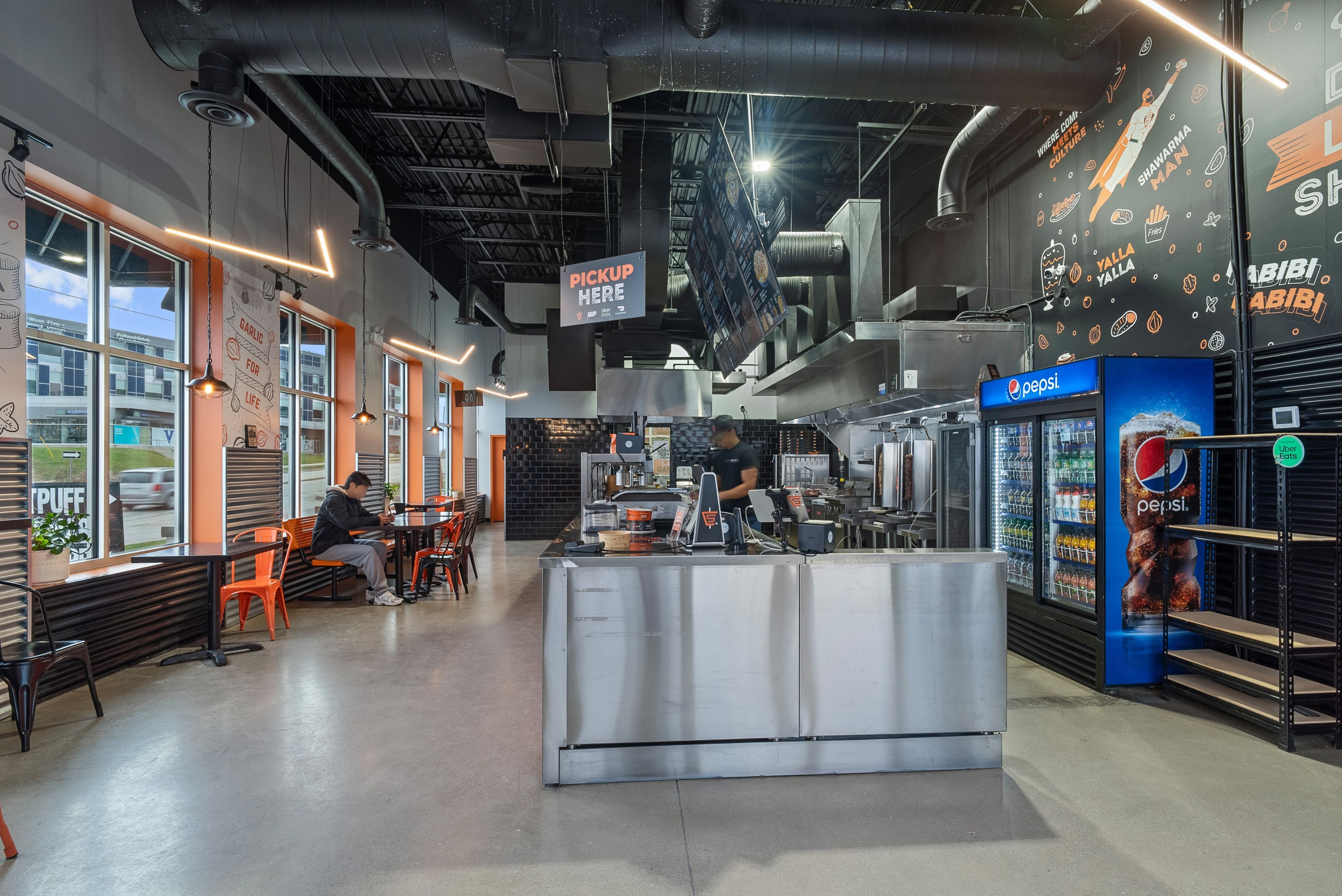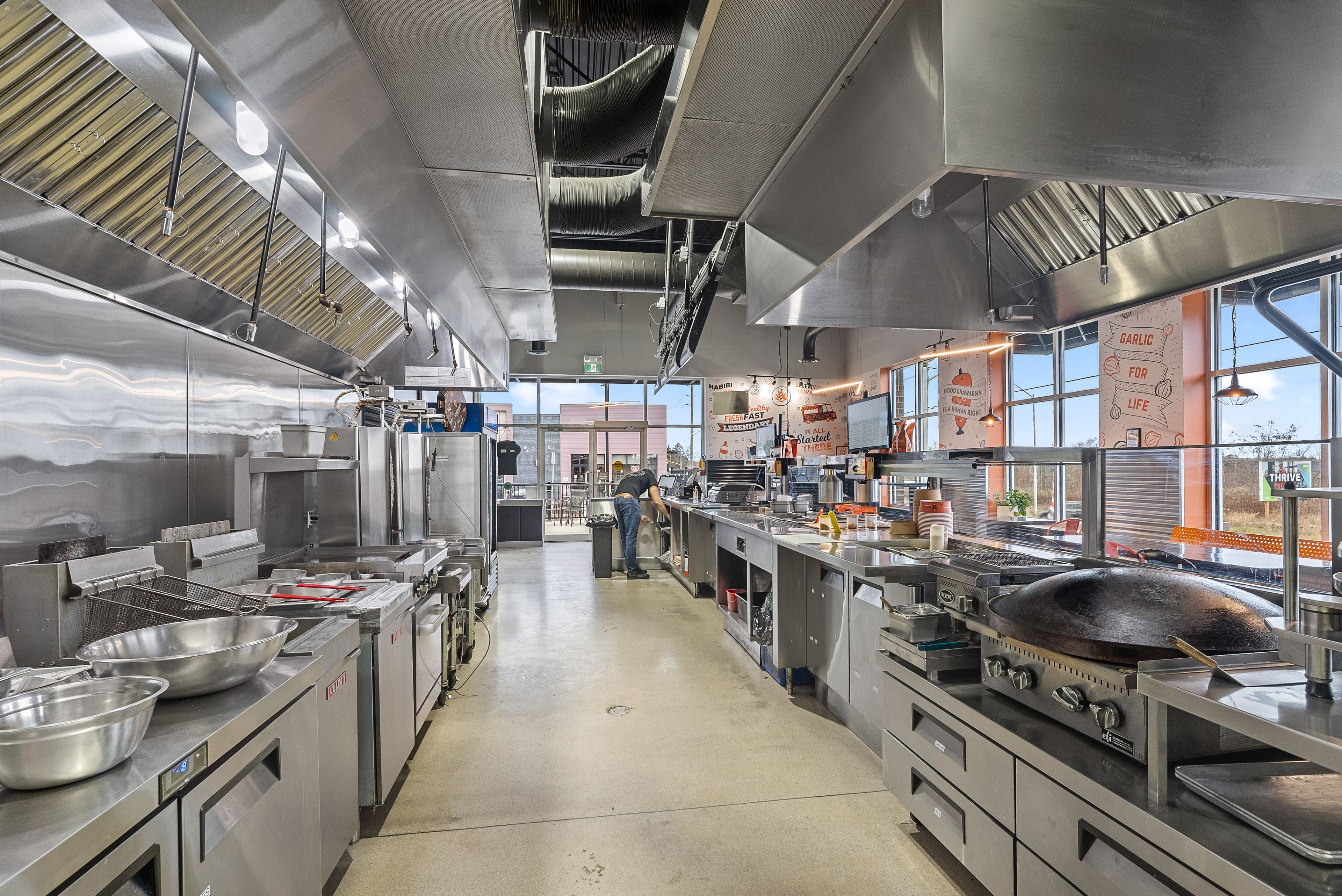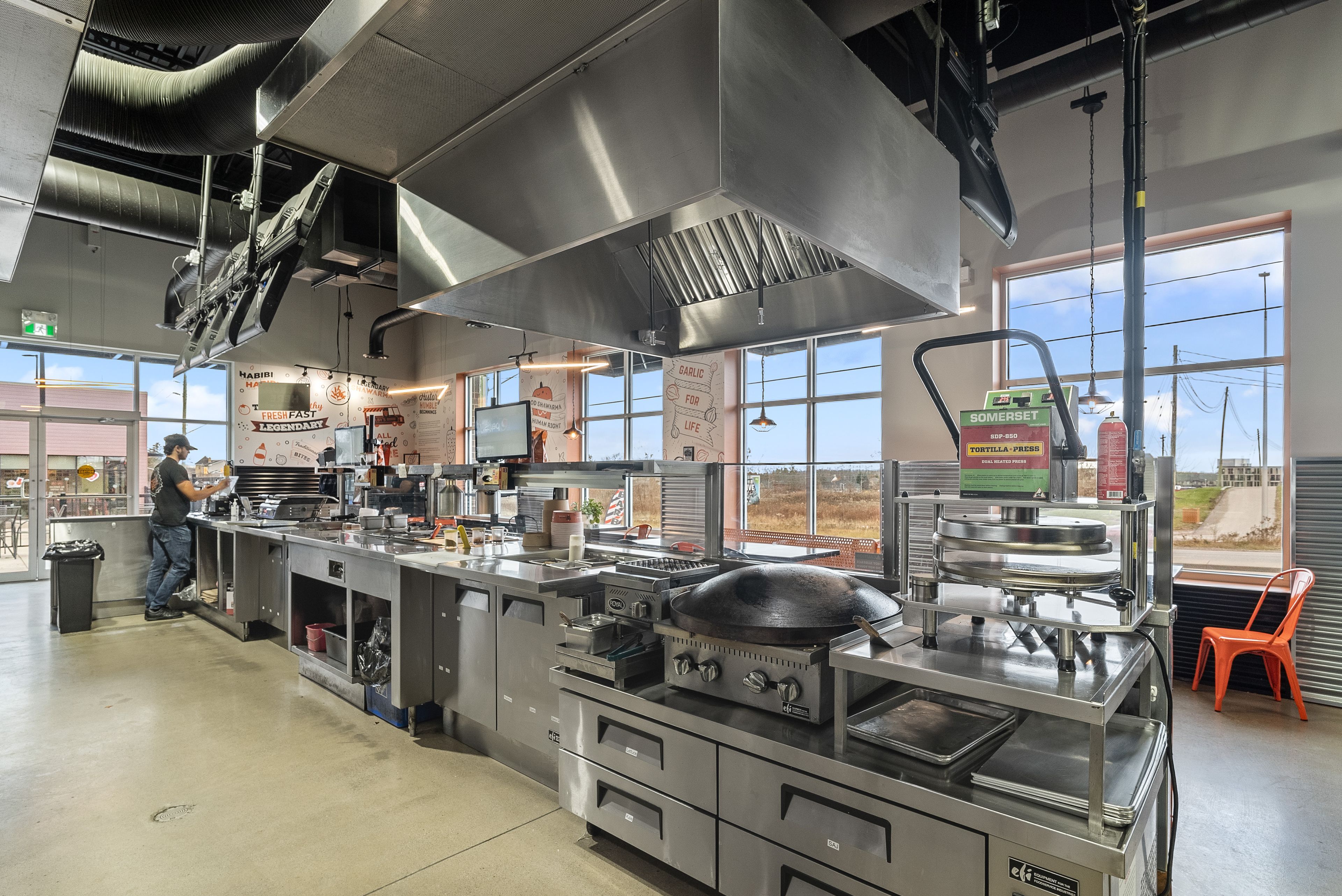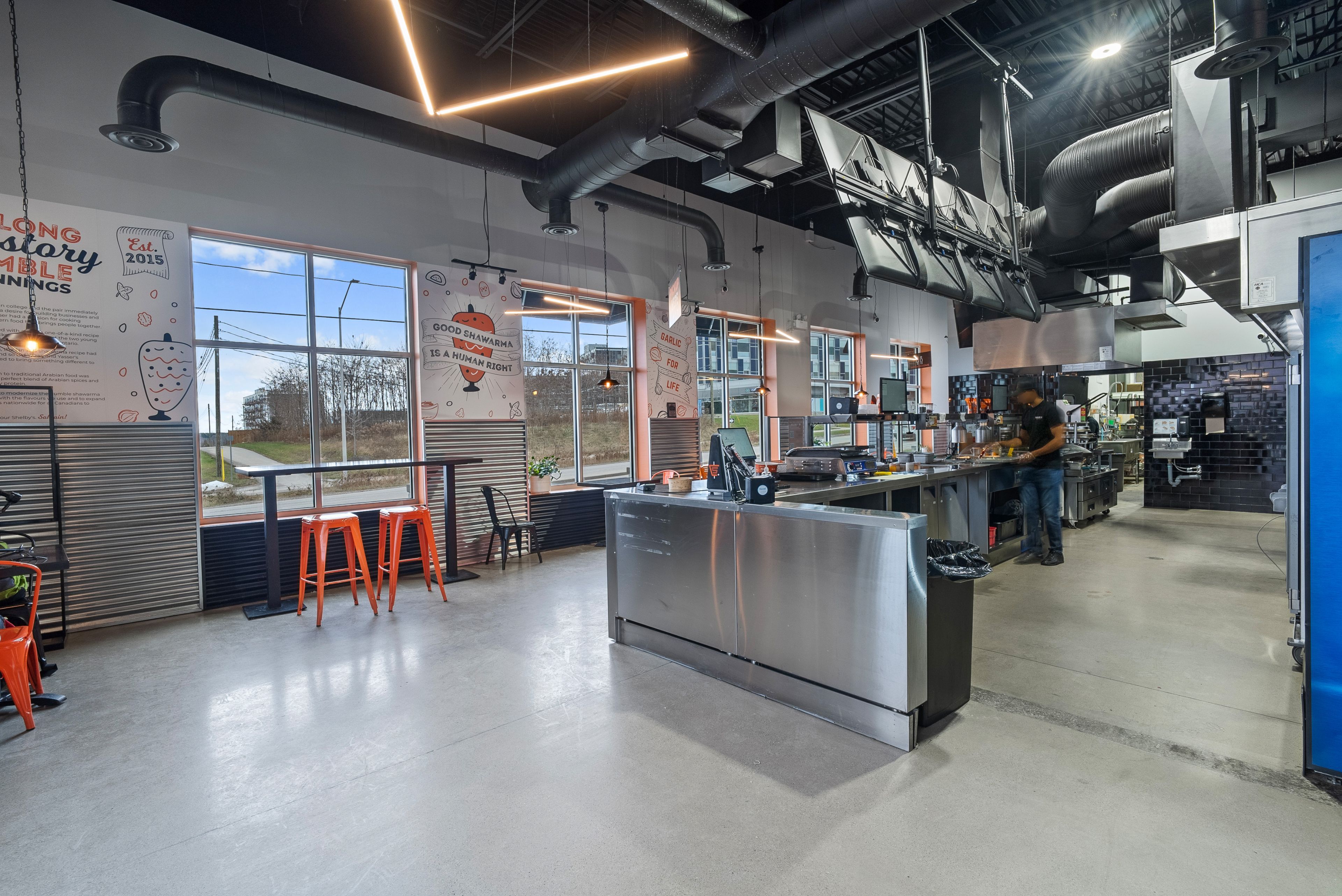 Turnkey qsr opportunity in a high-traffic west london plaza! Currently operating as a shawarma restaurant, this 1,603 sq. Ft. Space is perfectly primed for your own concept, cuisine, or franchise. The modern, fresh build features an efficient open-concept layout with a massive service counter, indoor seating for 16, and an inviting outdoor patio. A chef's dream, the kitchen boasts an impressive 21 ft. Of total ventilation (16 ft. + 5 ft. Commercial hoods), a walk-in fridge, a walk-in freezer, and extensive prep space. Incredible potential to elevate the existing business or launch a brand-new vision in a dynamic location. Please exercise discretion: do not go direct or speak to staff.