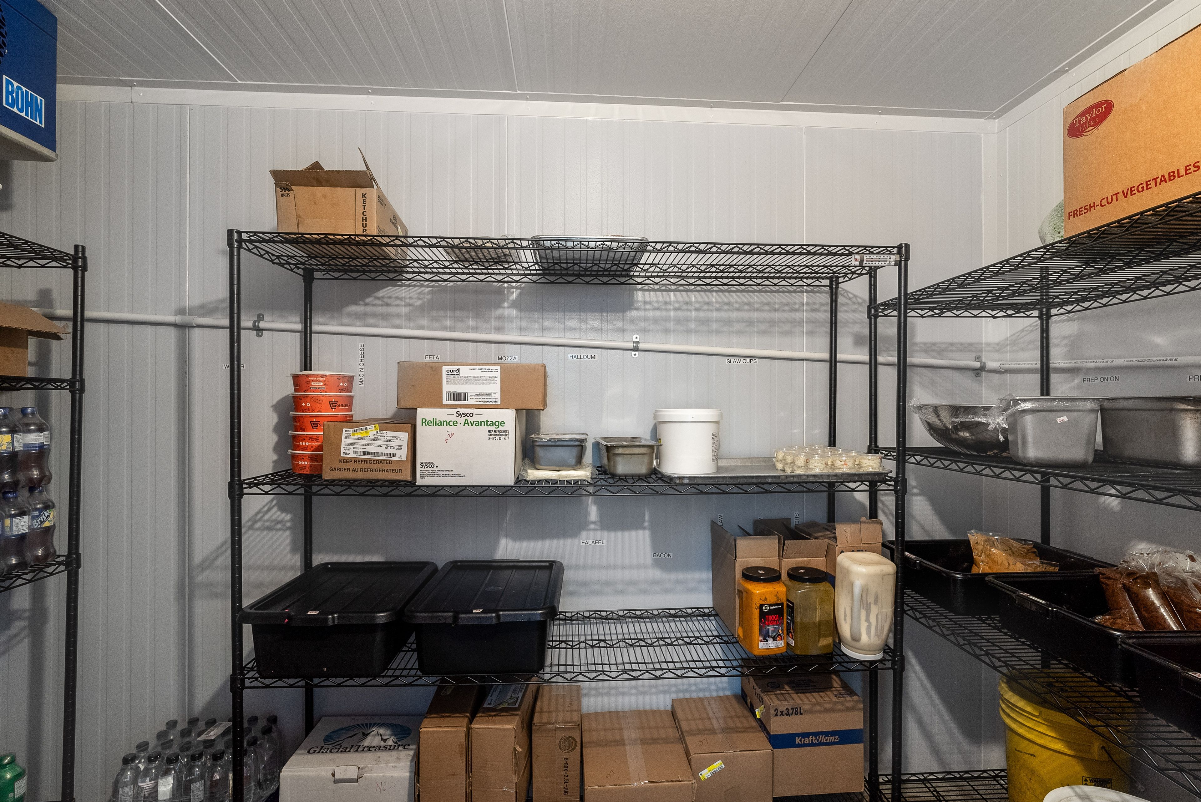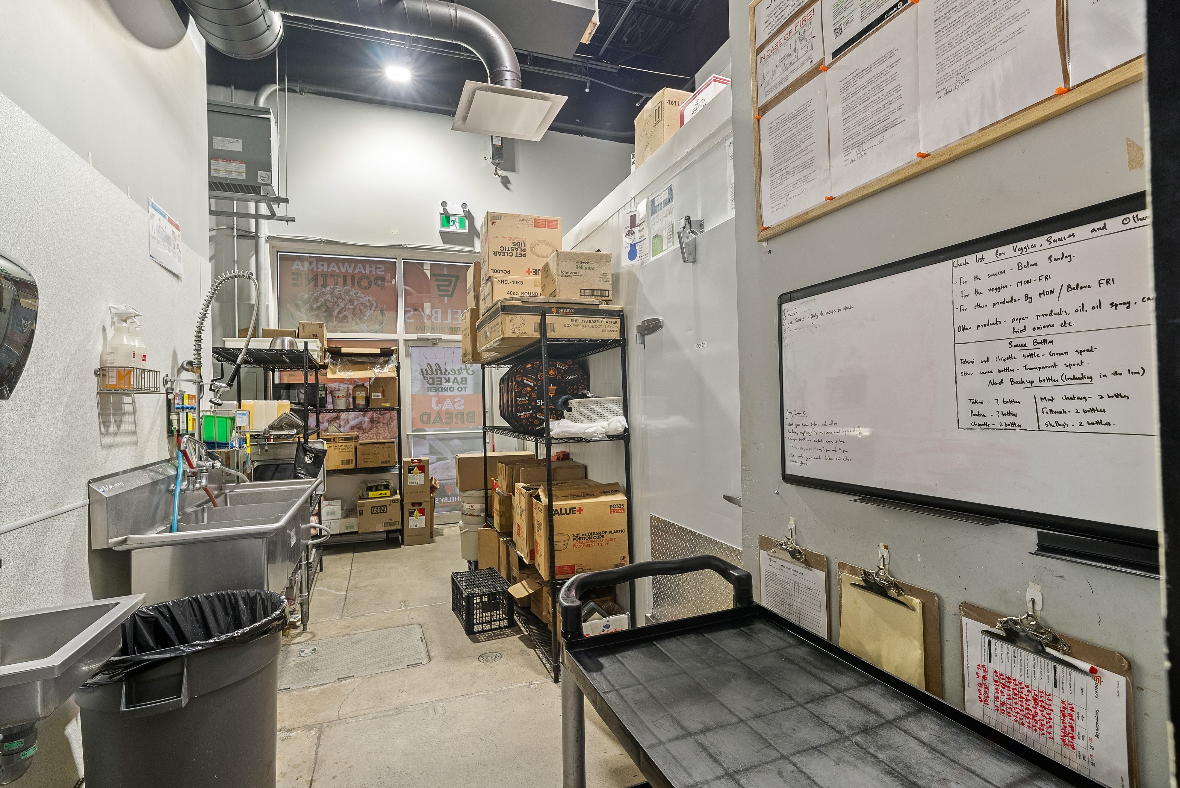 • Well-equipped kitchen with walk-in fridge, freezer, and ample prep space.