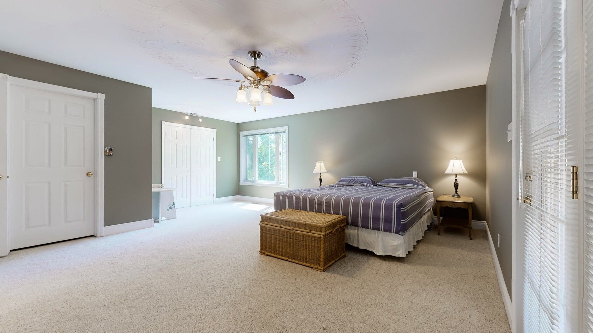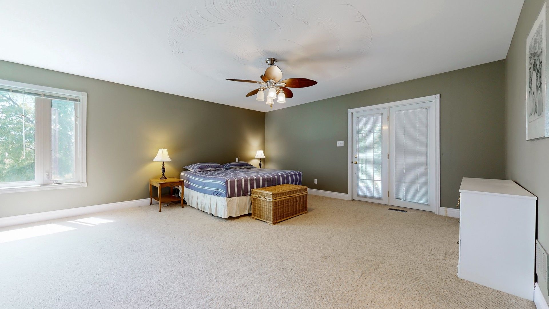 • Spacious main floor master bedroom with modern ensuite and walk-in closets.