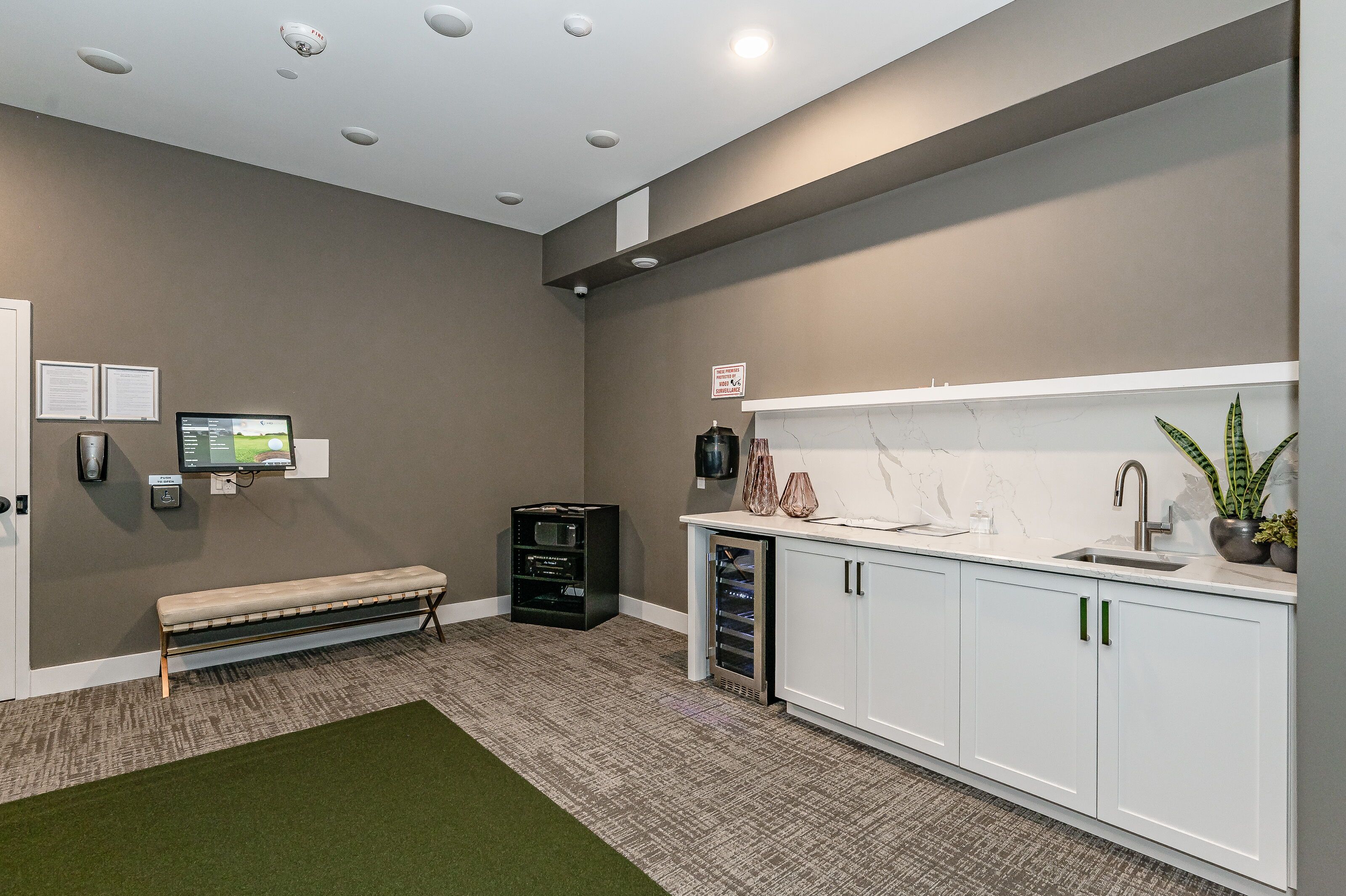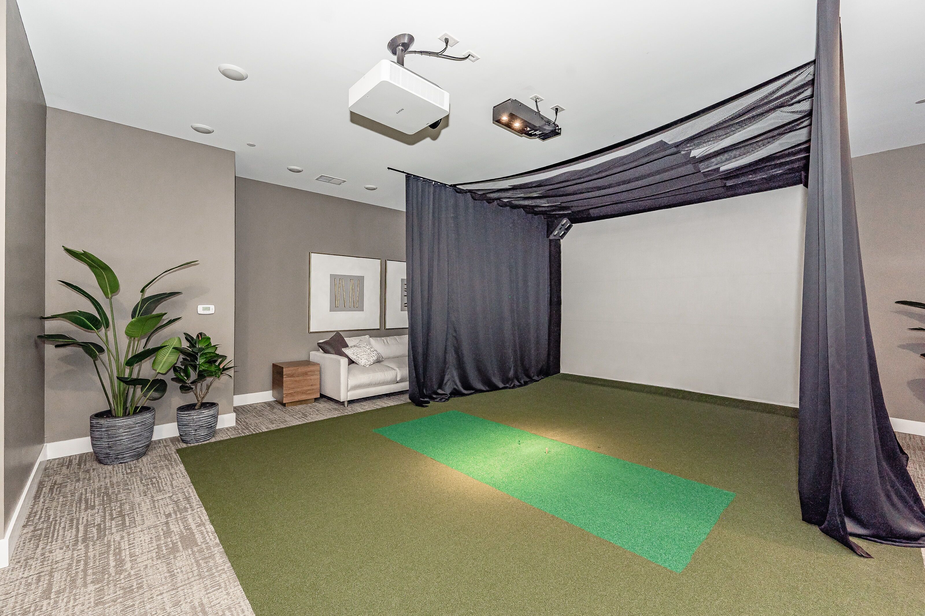 • Convenient amenities like a golf simulator and a fitness center.