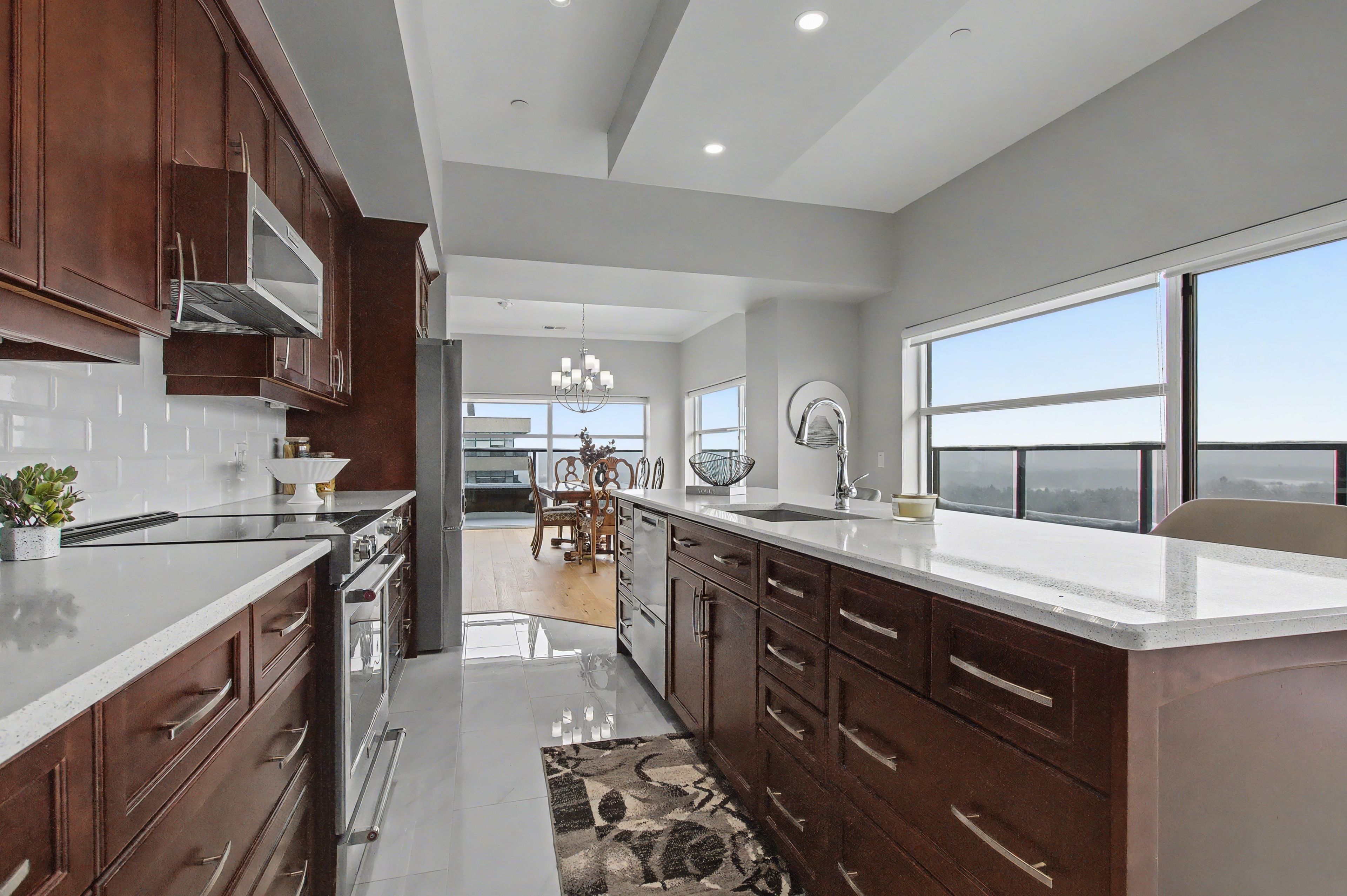 Welcome to luxury living in this penthouse unit at gordon square. This 3 bedroom unit is a rare find! From the moment you enter you'll enjoy a sun filled space. The kitchen offers plenty of cabinets, upgraded stainless steel appliances (fridge new in 2025), quartz counter tops and a spacious island. There are sliding doors out to the wrap around patio. The living and dining areas offer lots of room to accommodate family gatherings. The primary suite has his and hers walk in closets and a 5 piece ensuite featuring 2 sinks, a stand up shower, separate soaker tub and heated floors. There are also two additional bedrooms with spacious closets. The full laundry room has lots of space for storage and a folding table. The breathtaking panoramic views are some of best in the city with absolutely stunning sunsets. This suite comes with two side by side parking spaces and a large storage locker located on the second floor. Gordon square offers fantastic amenities including a 13th floor lounge with pool table, guest suite,golf simulator, full gym and underground parking. Just steps from shopping, banks, restaurants, lcbo, movie theatre, scenic trails, preservation park, and the new south end community centre. Just a short drive to the 401 for easy commuting. Don't miss your chance to call this condo your home.
