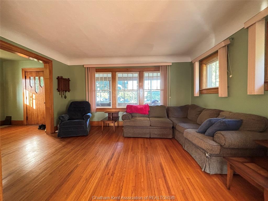 Country living at an affordable price! Just 6 minutes to erieau and 9 minutes to blenheim, this charming 3-bedroom, 1-bath home is full of character. Nearly a century old, it features hardwood floors, a beautiful wood staircase, and a welcoming screened-in front porch. All three bedrooms and the bathroom are thoughtfully located on the upper level. The dining room opens to the living room, creating a perfect space for hosting and entertaining. The dining room also features french doors that lead to a deck overlooking the backyard. A spacious unfinished basement provides plenty of storage. This home is set on a lovely lot with mature trees and includes a handy storage shed. This house needs some work but has potential to be the perfect family home.